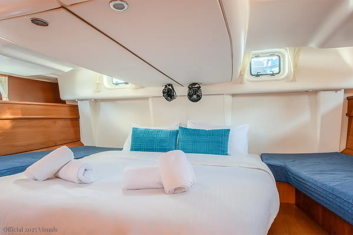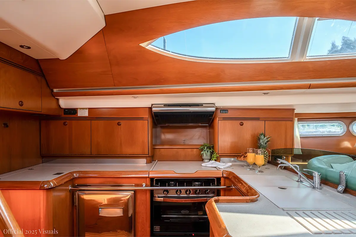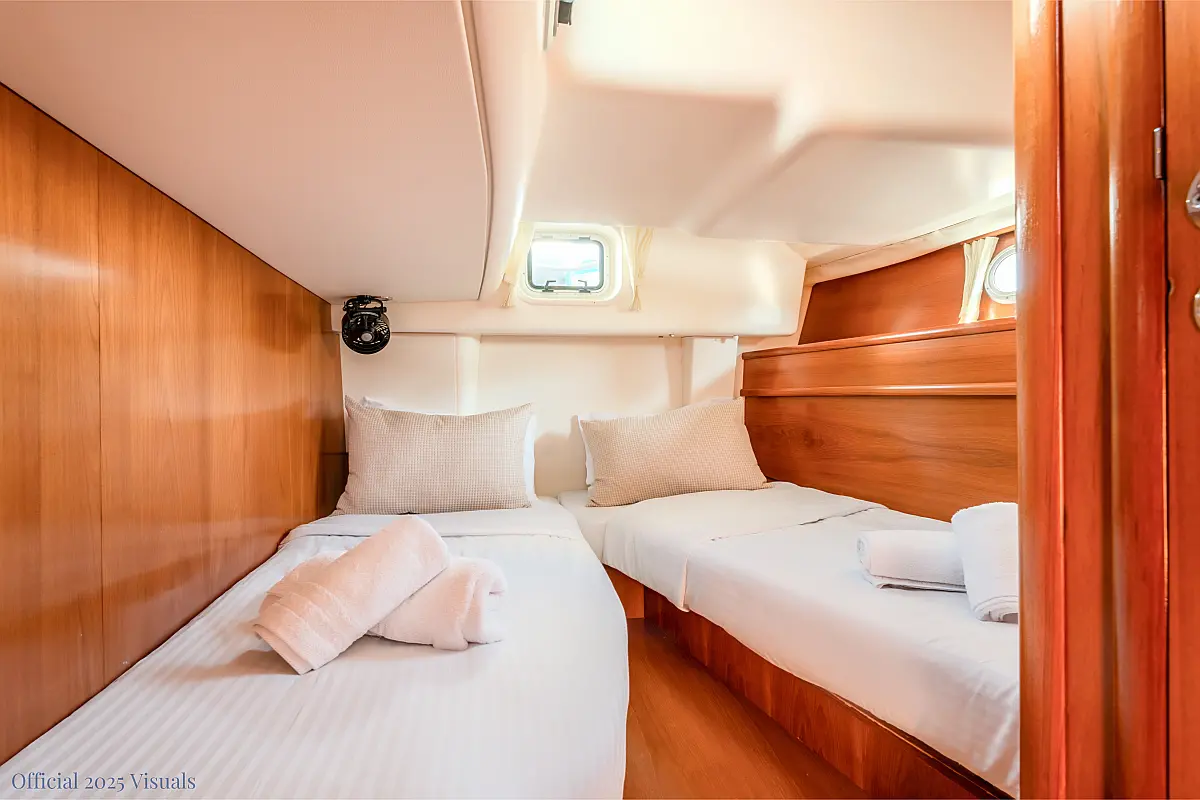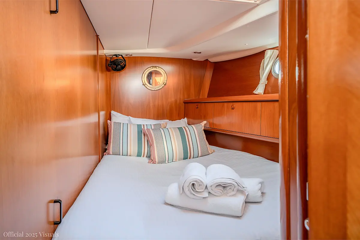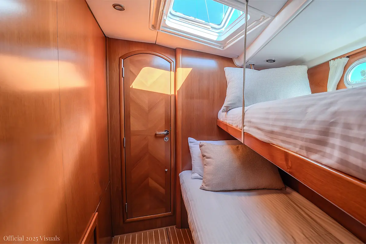 Dinghy, Outboard engine, Electric winches, Teak deck, Cockpit cushions, Bimini, Refrigerator, Heating, Wi-Fi & Internet, Solar Panels, Inverter