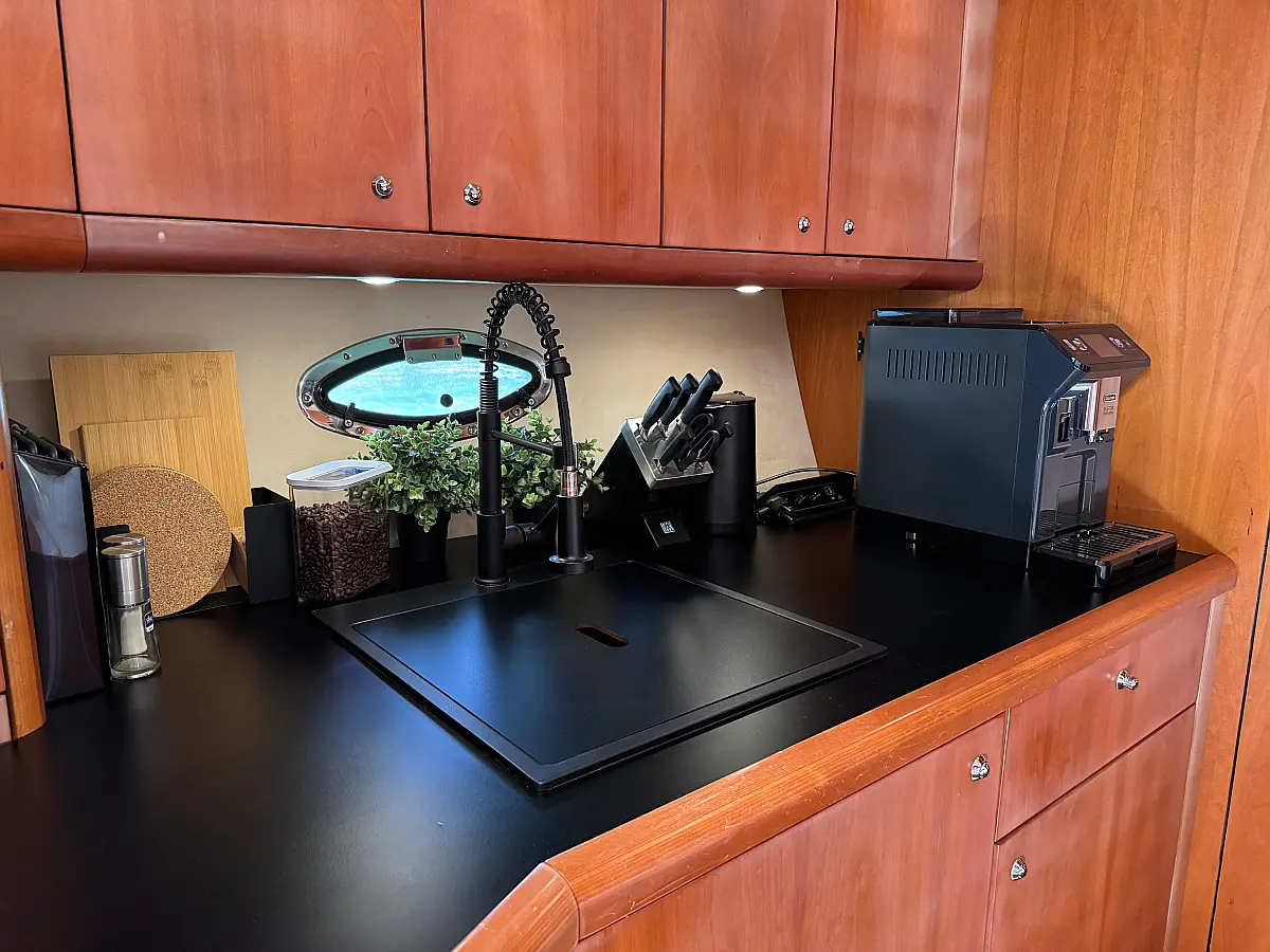 Water maker, Generator, Bimini, Teak Cockpit, Cockpit cushions, Refrigerator, Coffee maker