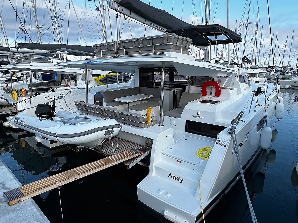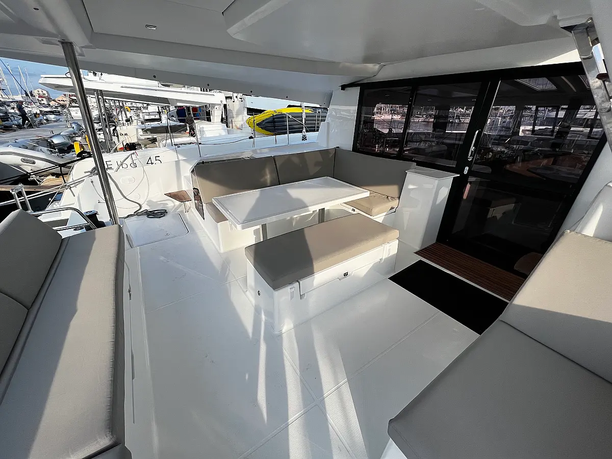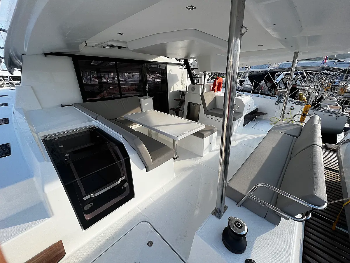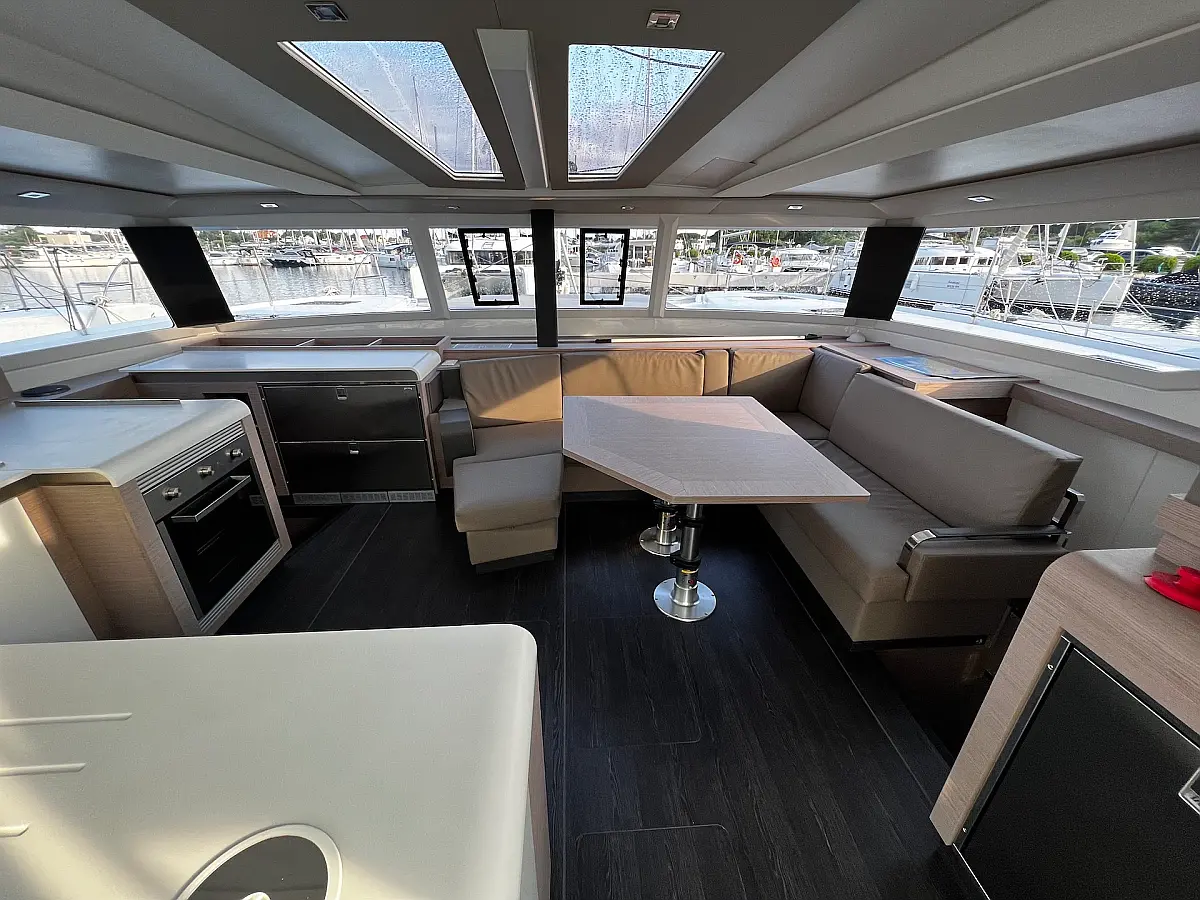 Coffee maker, Ice maker, Refrigerator, Dinghy, Wi-Fi & Internet, Water maker, Generator, Inverter, Solar Panels, Electric toilet, Air condition, Bimini, Cockpit cushions, Electric winches, Swimming platform