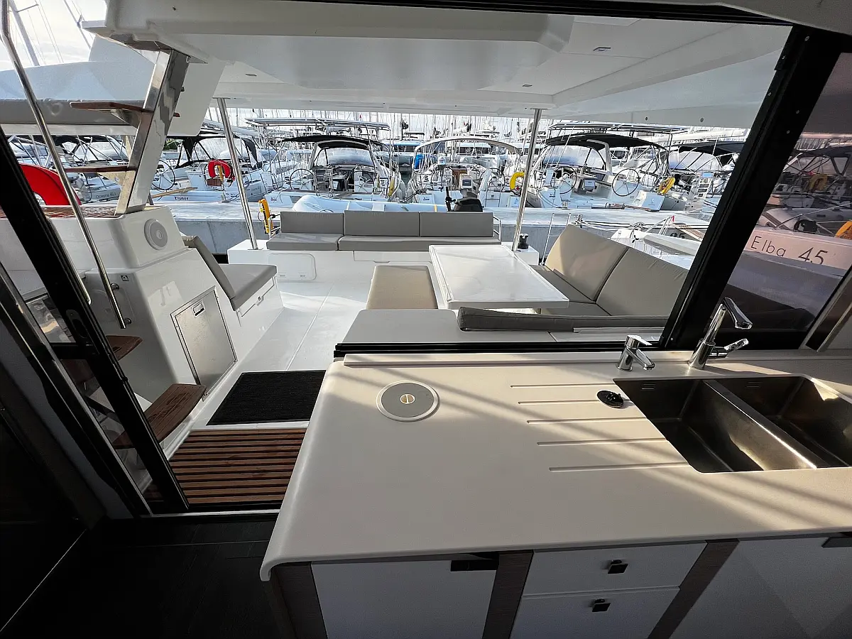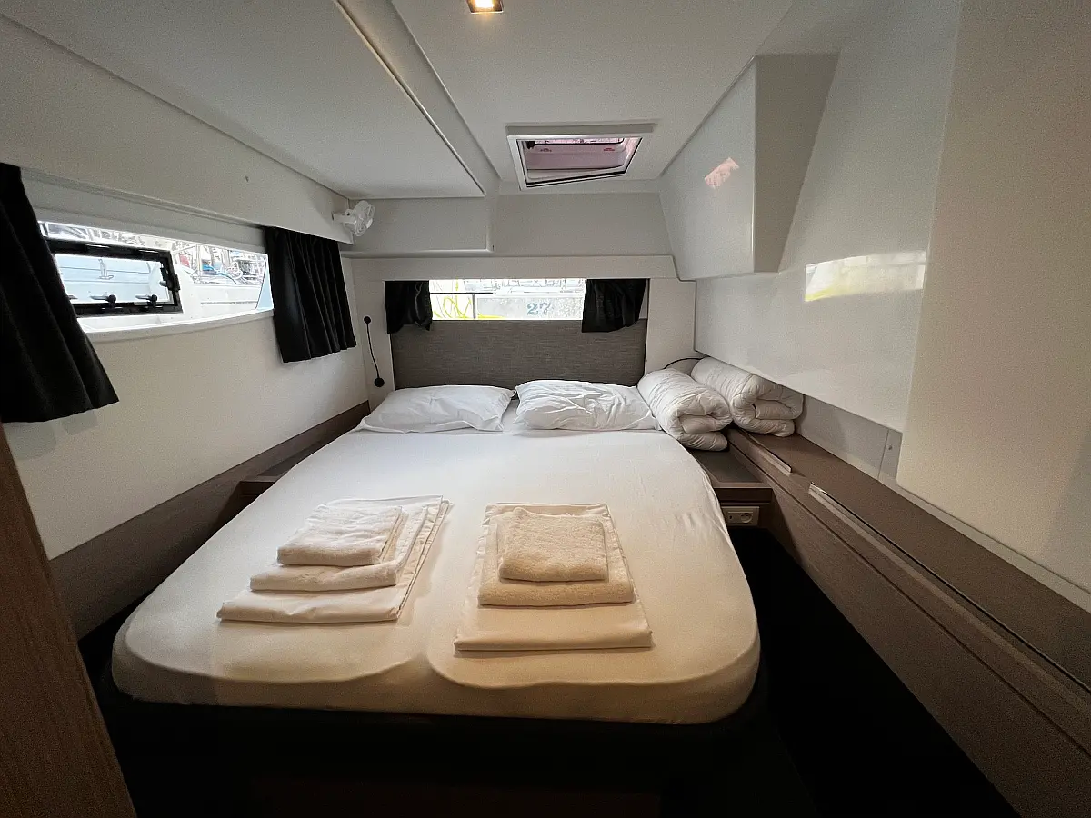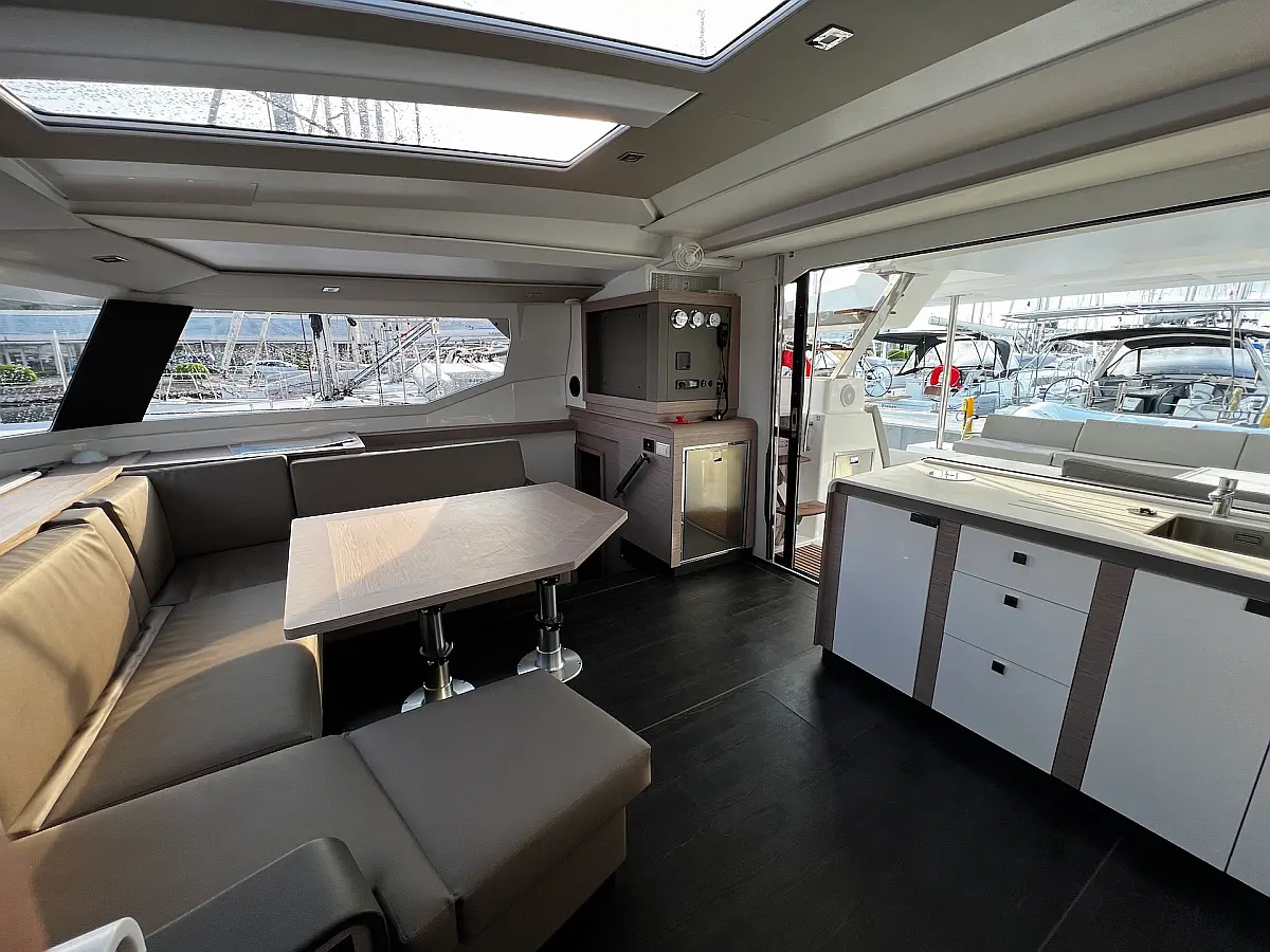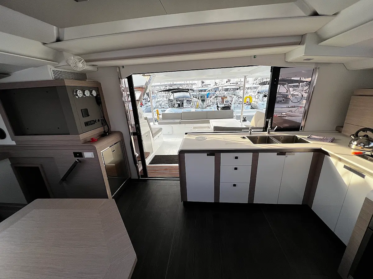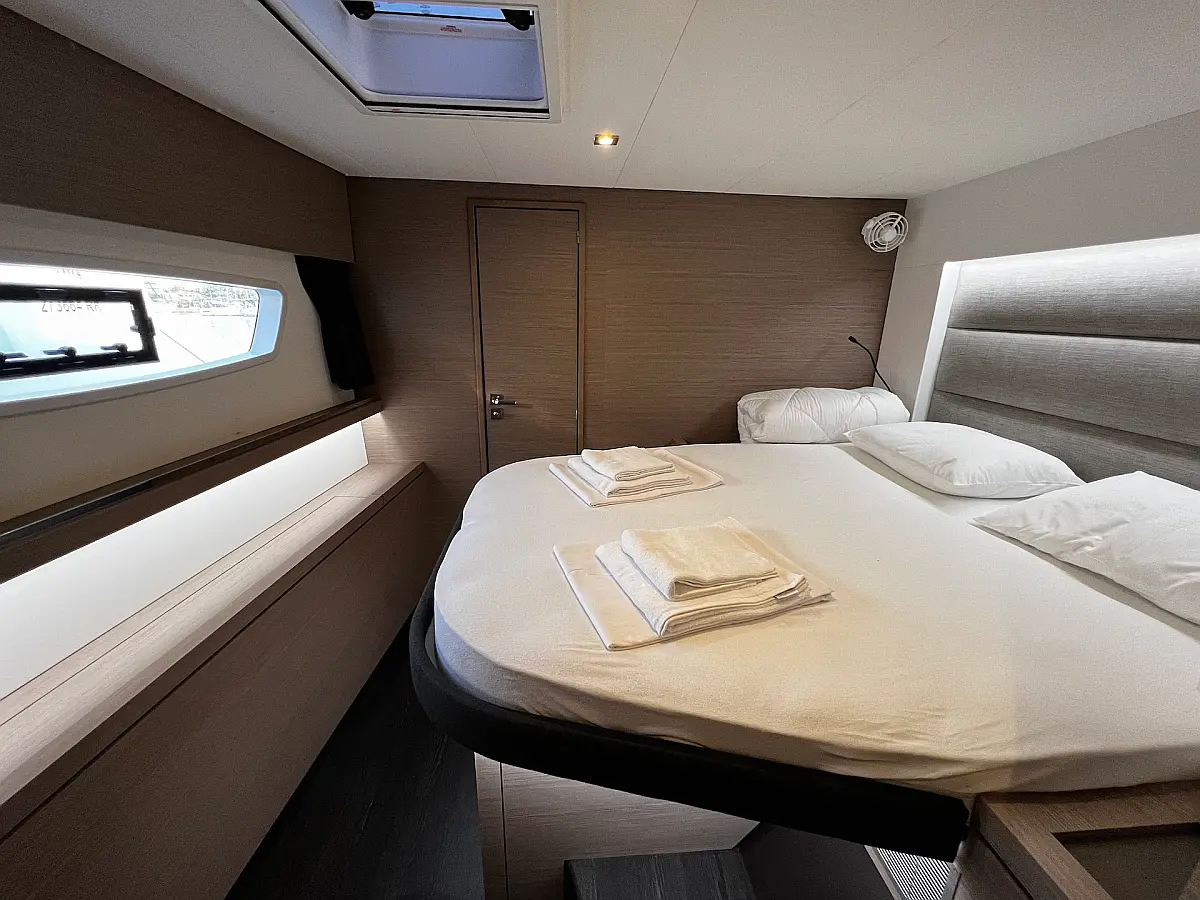 Coffee maker, Ice maker, Refrigerator, Dinghy, Wi-Fi & Internet, Water maker, Generator, Inverter, Solar Panels, Electric toilet, Air condition, Bimini, Cockpit cushions, Electric winches, Swimming platform