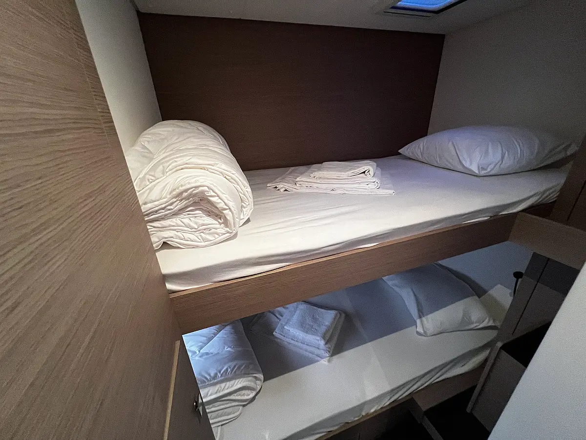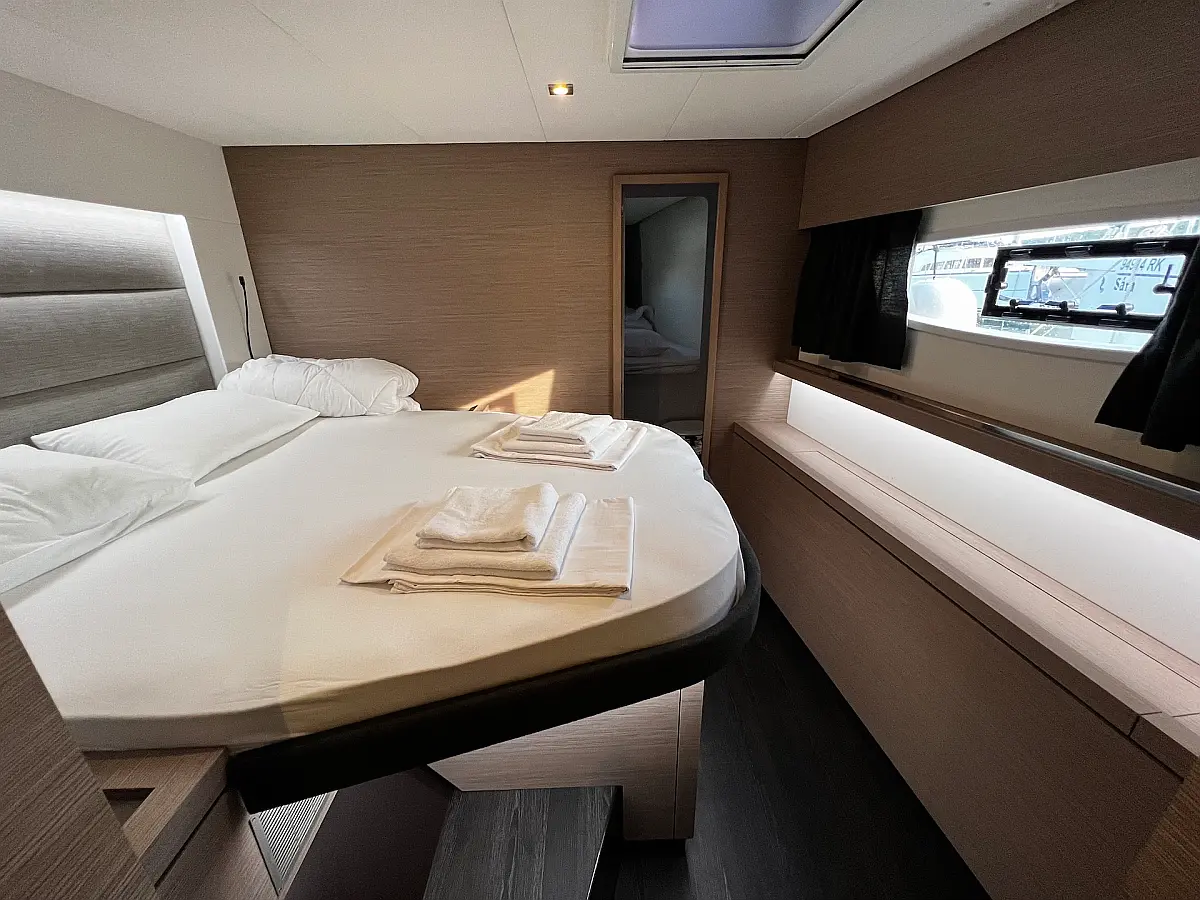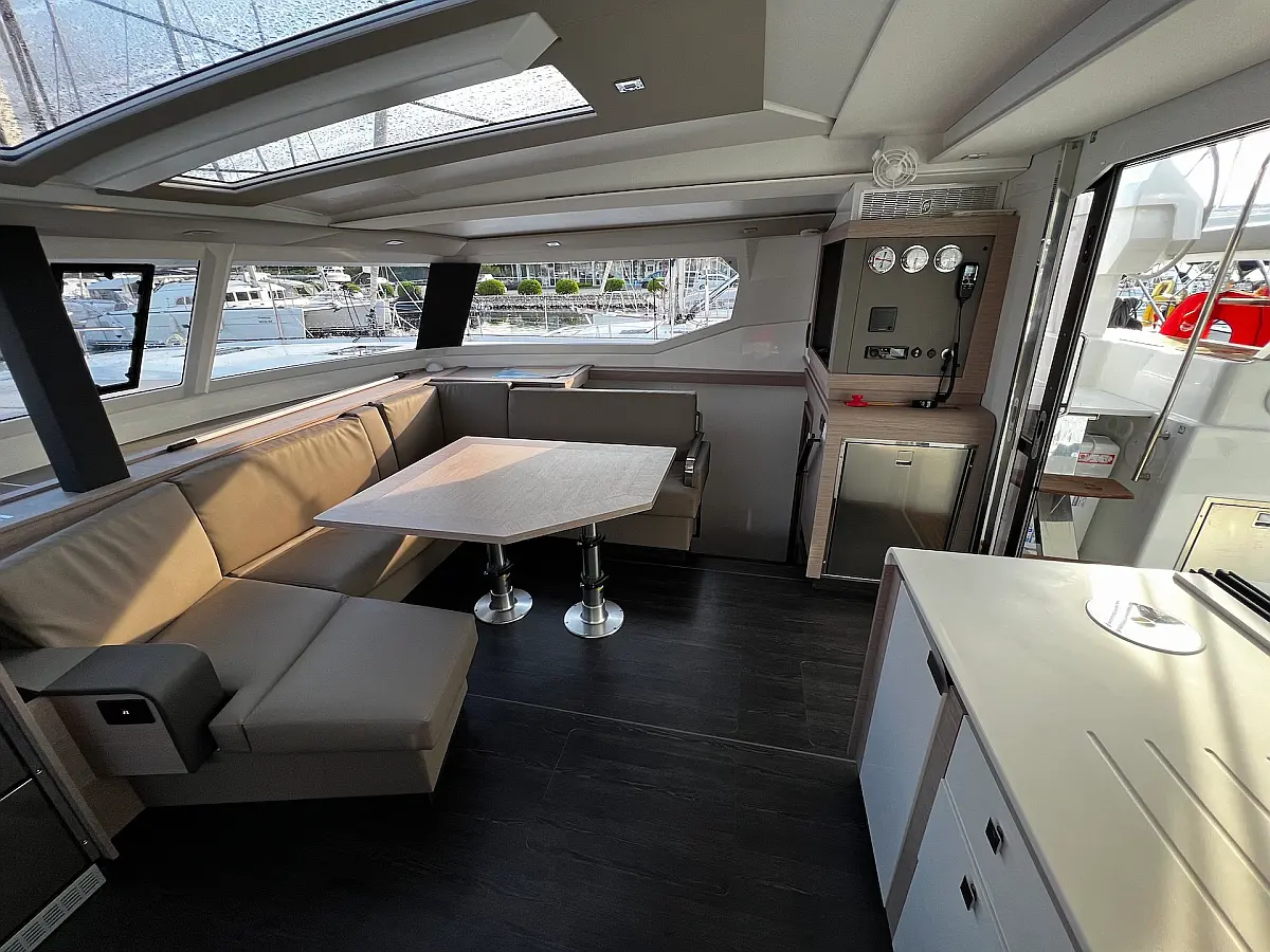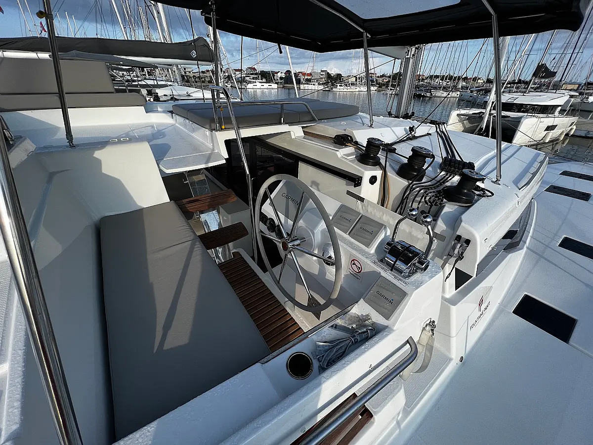 Coffee maker, Ice maker, Refrigerator, Dinghy, Wi-Fi & Internet, Water maker, Generator, Inverter, Solar Panels, Electric toilet, Air condition, Bimini, Cockpit cushions, Electric winches, Swimming platform