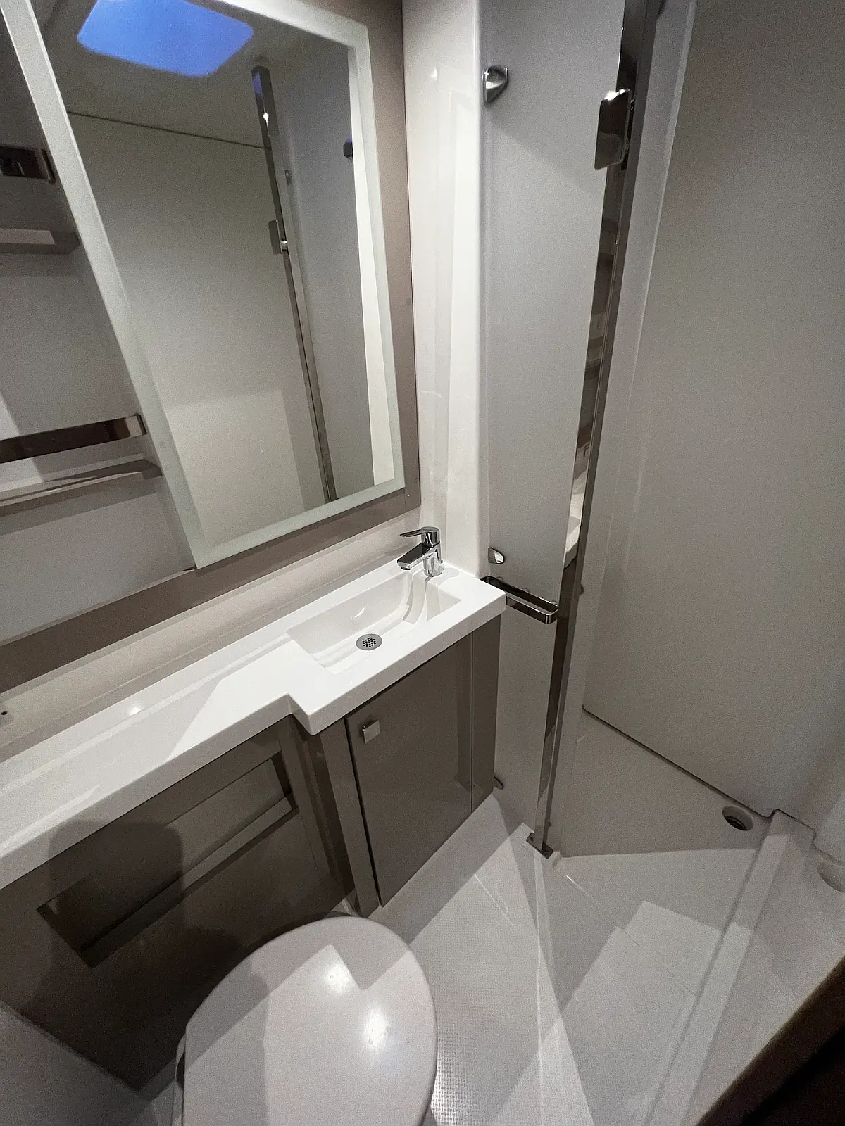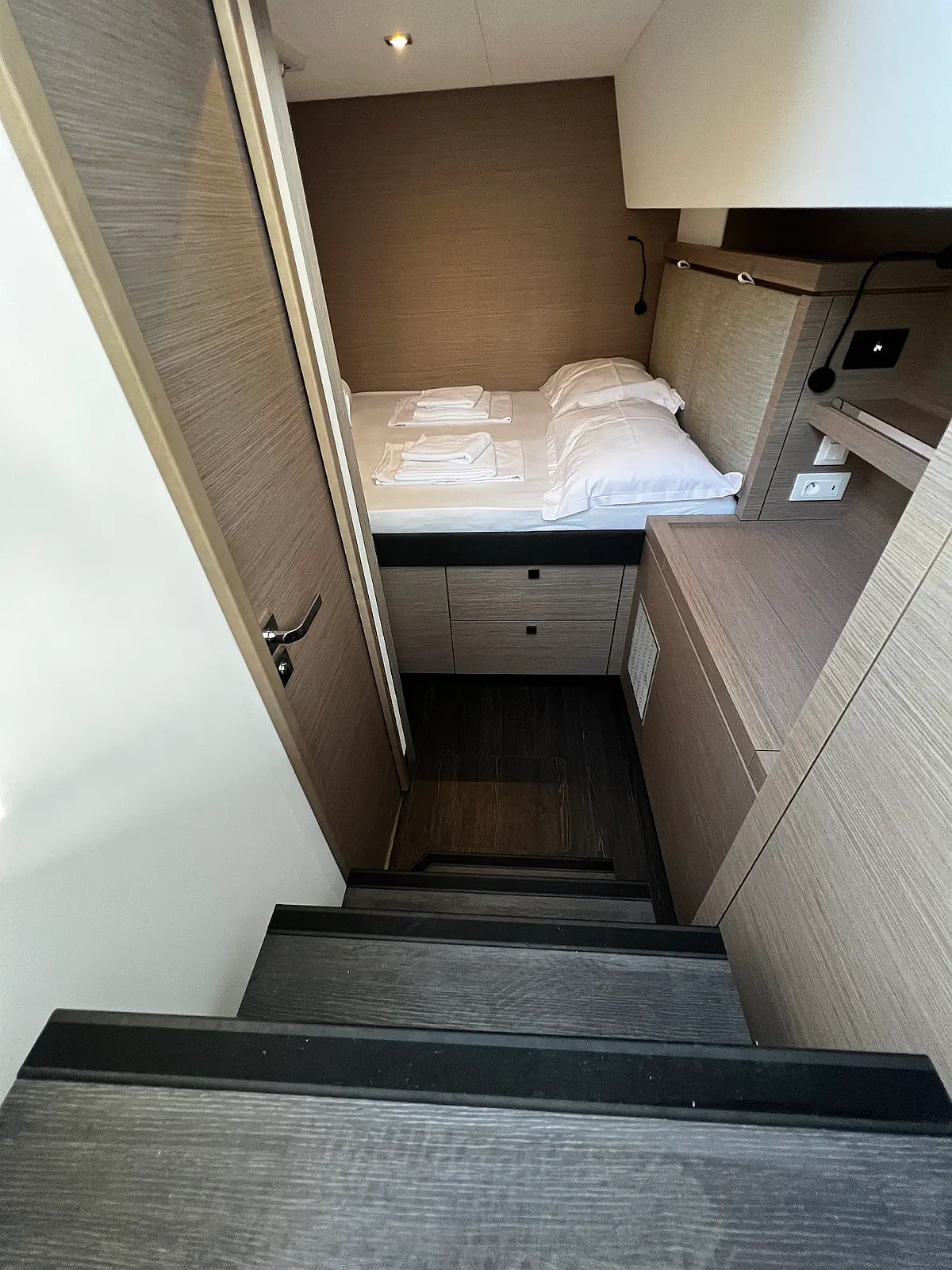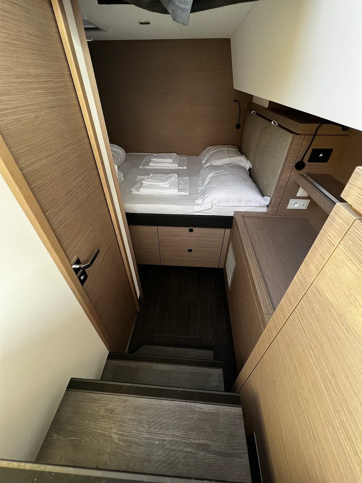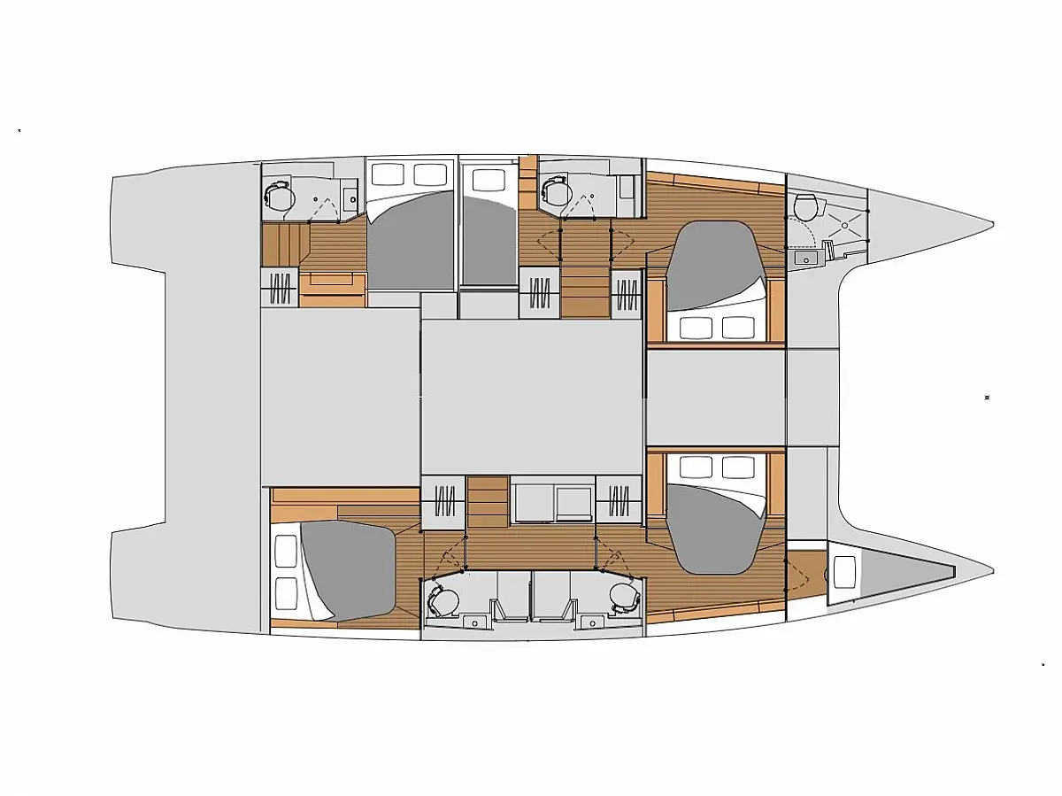 Coffee maker, Ice maker, Refrigerator, Dinghy, Wi-Fi & Internet, Water maker, Generator, Inverter, Solar Panels, Electric toilet, Air condition, Bimini, Cockpit cushions, Electric winches, Swimming platform