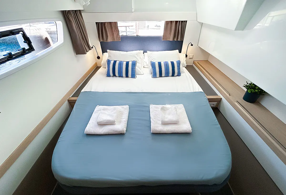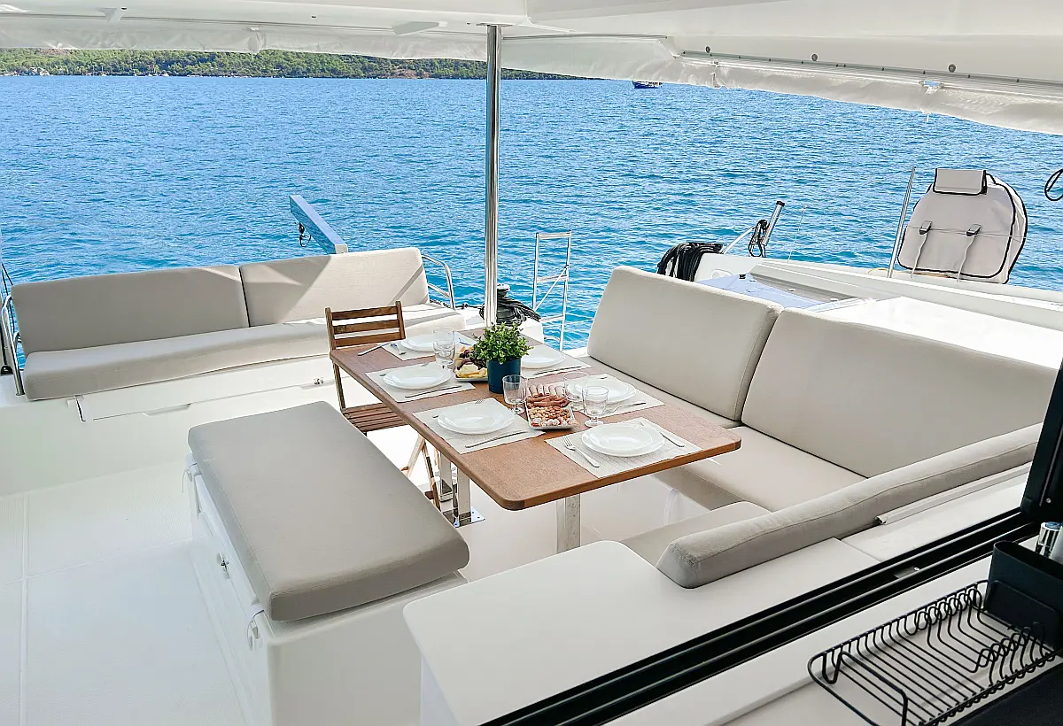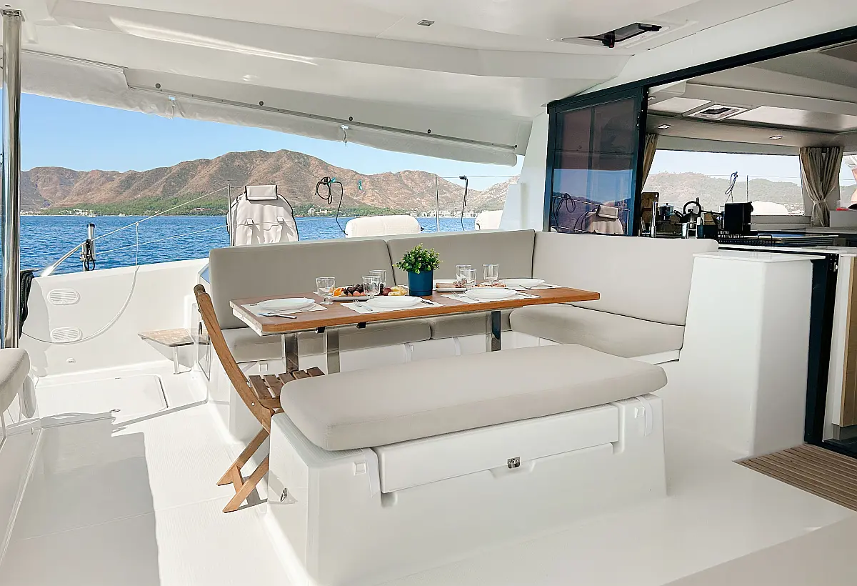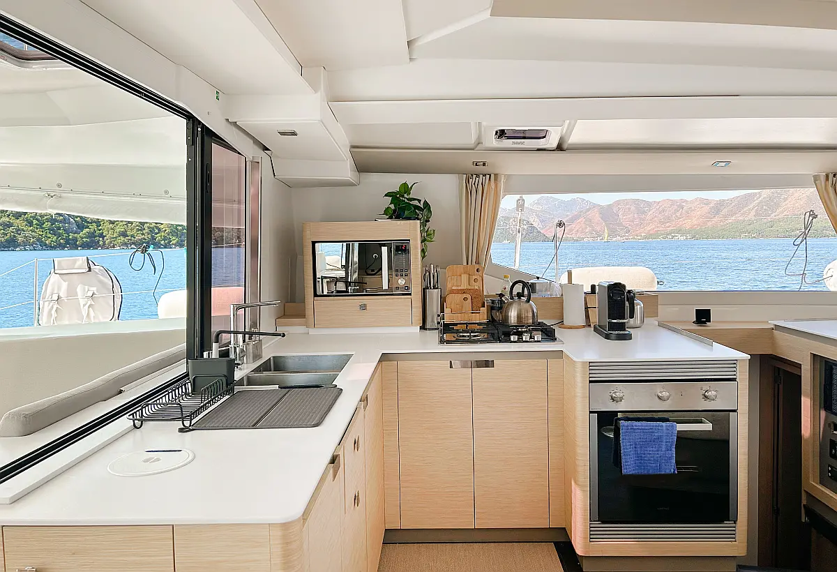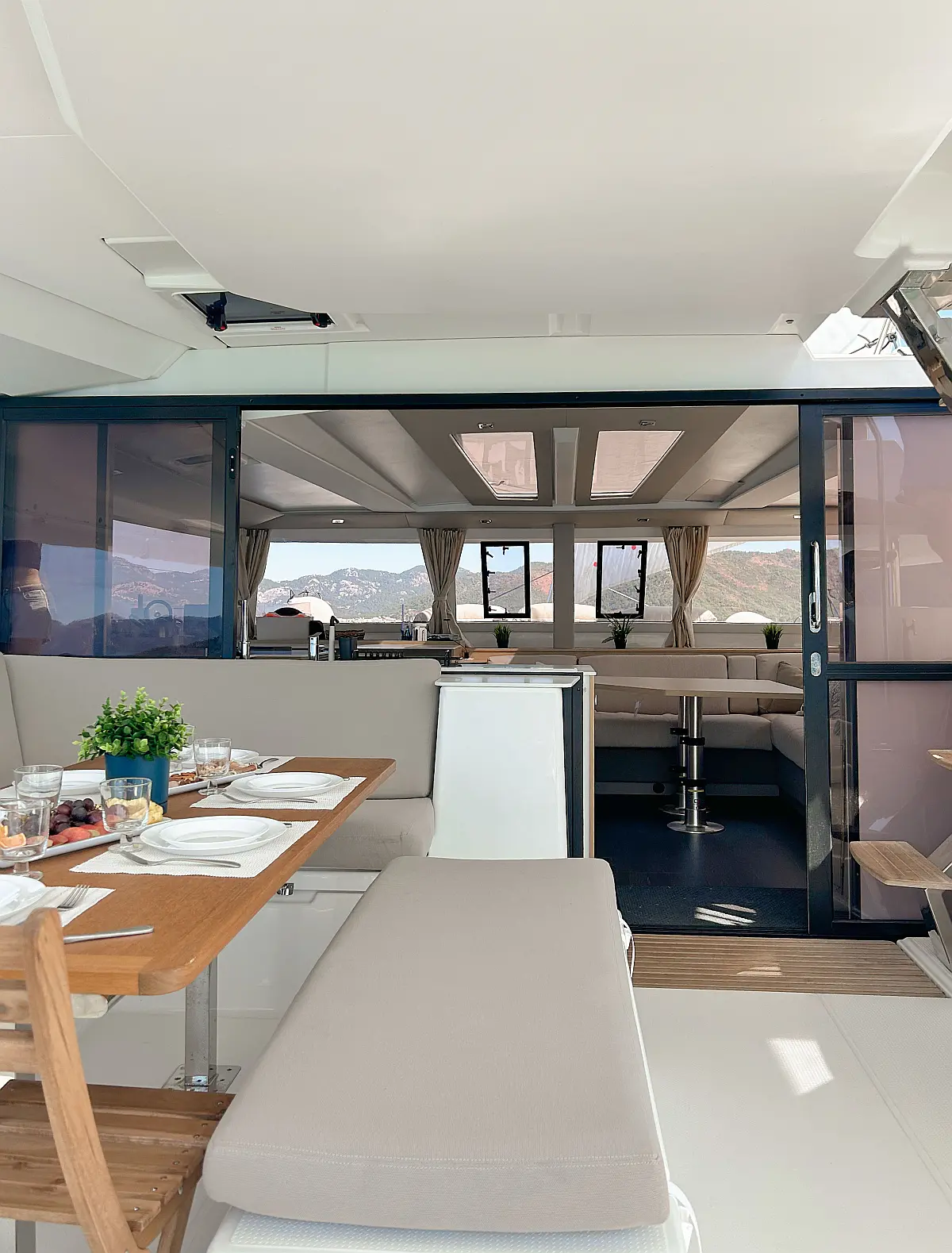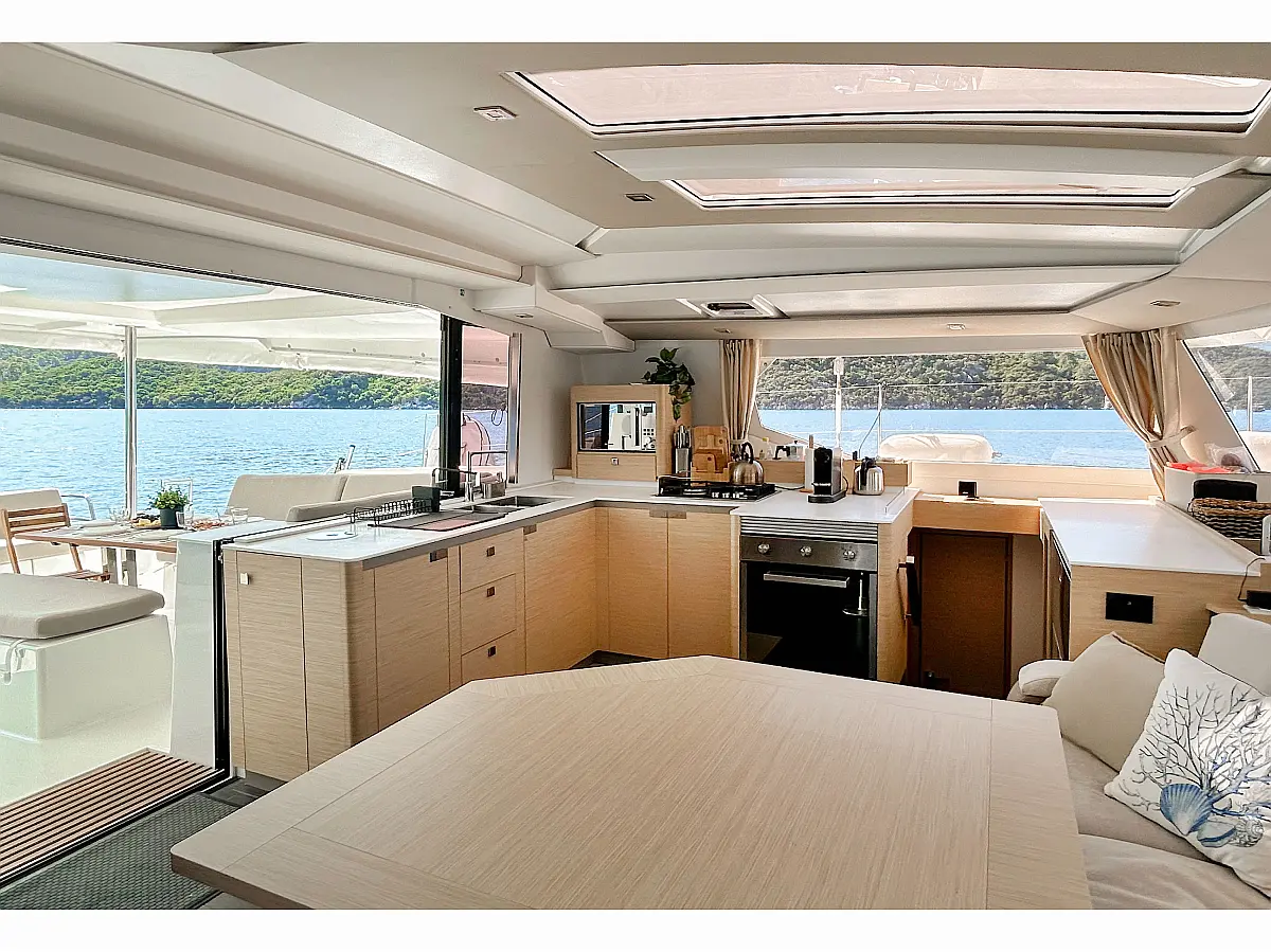 Generator, Dinghy, Coffee maker, Inverter, Air condition, Water maker, Electric winches, Refrigerator, Solar Panels, Cockpit cushions, Cockpit speakers, Wi-Fi & Internet, Electric toilet, Flybridge, Barbecue grill in cockpit, Bimini, Ice maker, Outboard engine, Sprayhood
