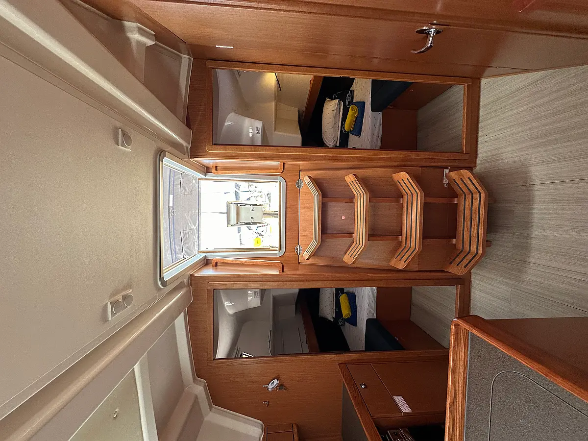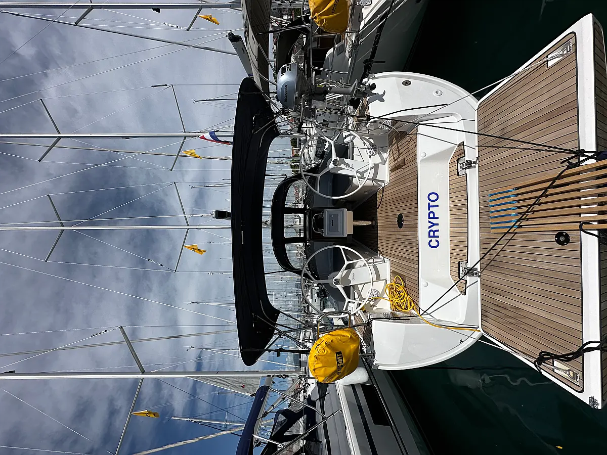 Bimini, Sprayhood, Outboard engine, Teak Cockpit, Electric toilet, Heating, Solar Panels, Cockpit cushions