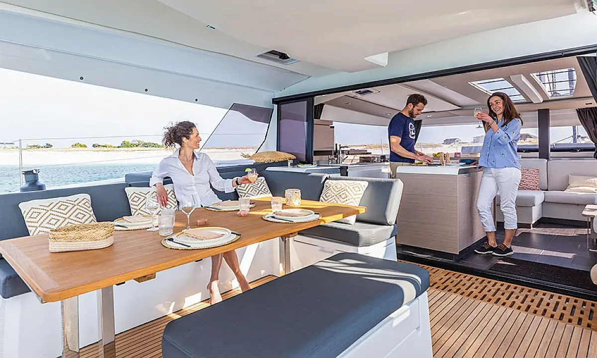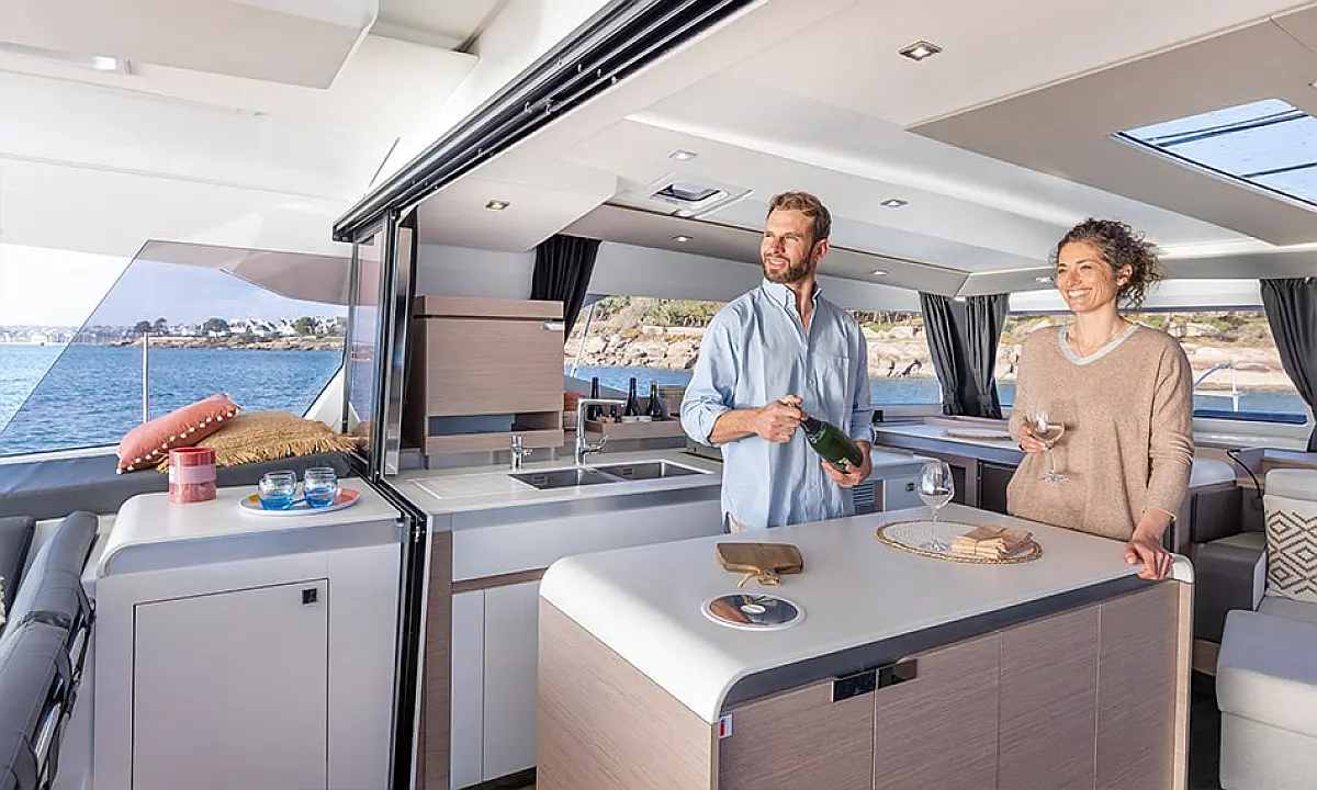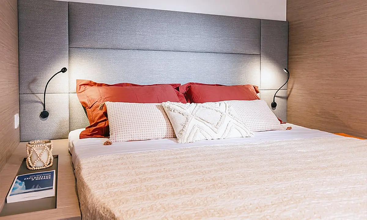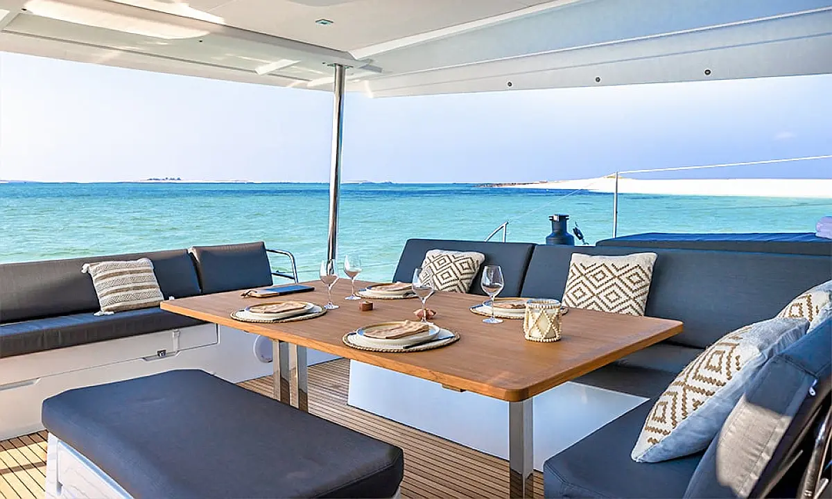 15.54 m (51 feet) dolga Katamaran Aura 51 (6+1), ​​izdelana leta 2024, je idealna jahta za raziskovanje Hrvaška. S 6 (5 + 1 crew + 1 front peak) udobnimi kabinami, 6 (5 + 1 crew) WC/Tuš in dovolj ležišč za do 15 (12 in cabin + 2 in saloon + 1 in front peak) gostov zagotavlja dovolj prostora za sprostitev in zabavo. Ta jahta je na voljo za najem.