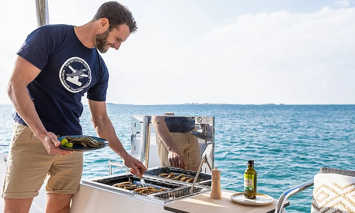Aparat za kavo, Hladilnik, Ledomat, Flybridge, Električni vitli, Klima, Inverter, Gretje, Generator, Desalinator, sončni kolektorji, Bimini, Žar v kokpitu, Izvenkrmni motor, Teak paluba, Električni wc, Wi-Fi in internet