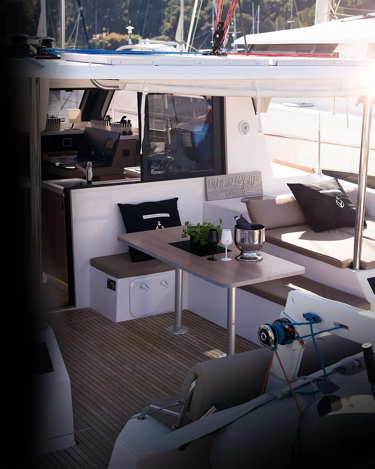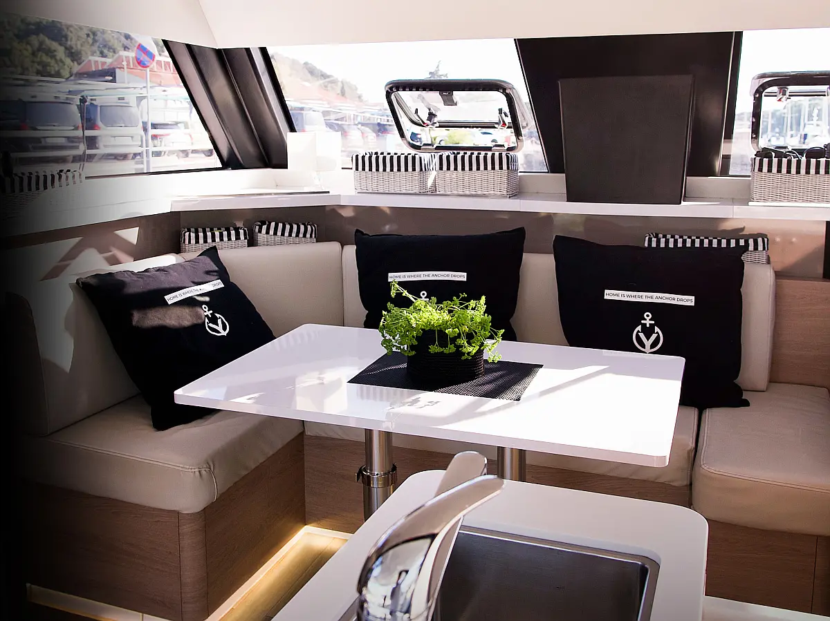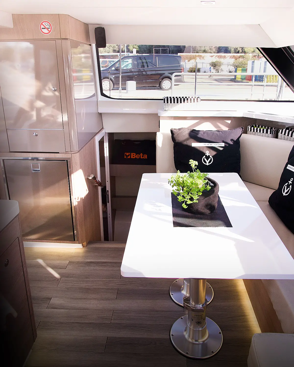 Zvočniki v kokpitu, Kopalna ploščad, Hladilnik, Bimini, Sprayhood, Pomožni čoln