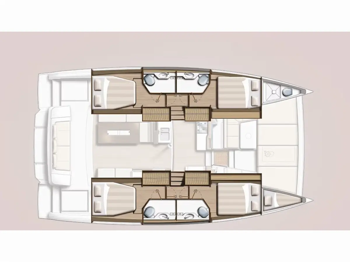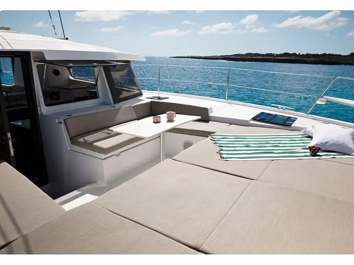 Desalinator, Klima, Generator, Pomožni čoln, Hladilnik, Izvenkrmni motor, sončni kolektorji, Sprayhood, Bimini, Blazine v kokpitu