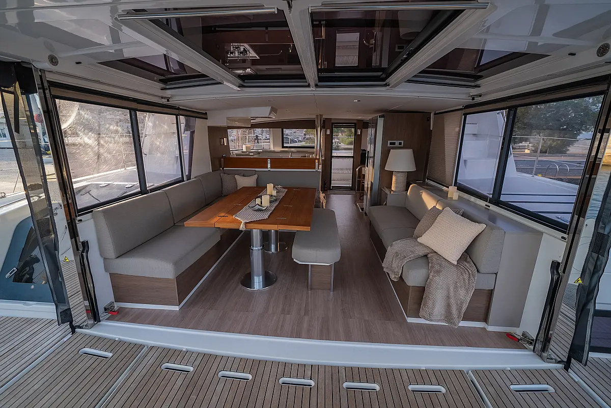 Klima, Bimini, Generator, Sprayhood, Pomožni čoln, Blazine v kokpitu, Izvenkrmni motor, Hladilnik, Aparat za kavo
