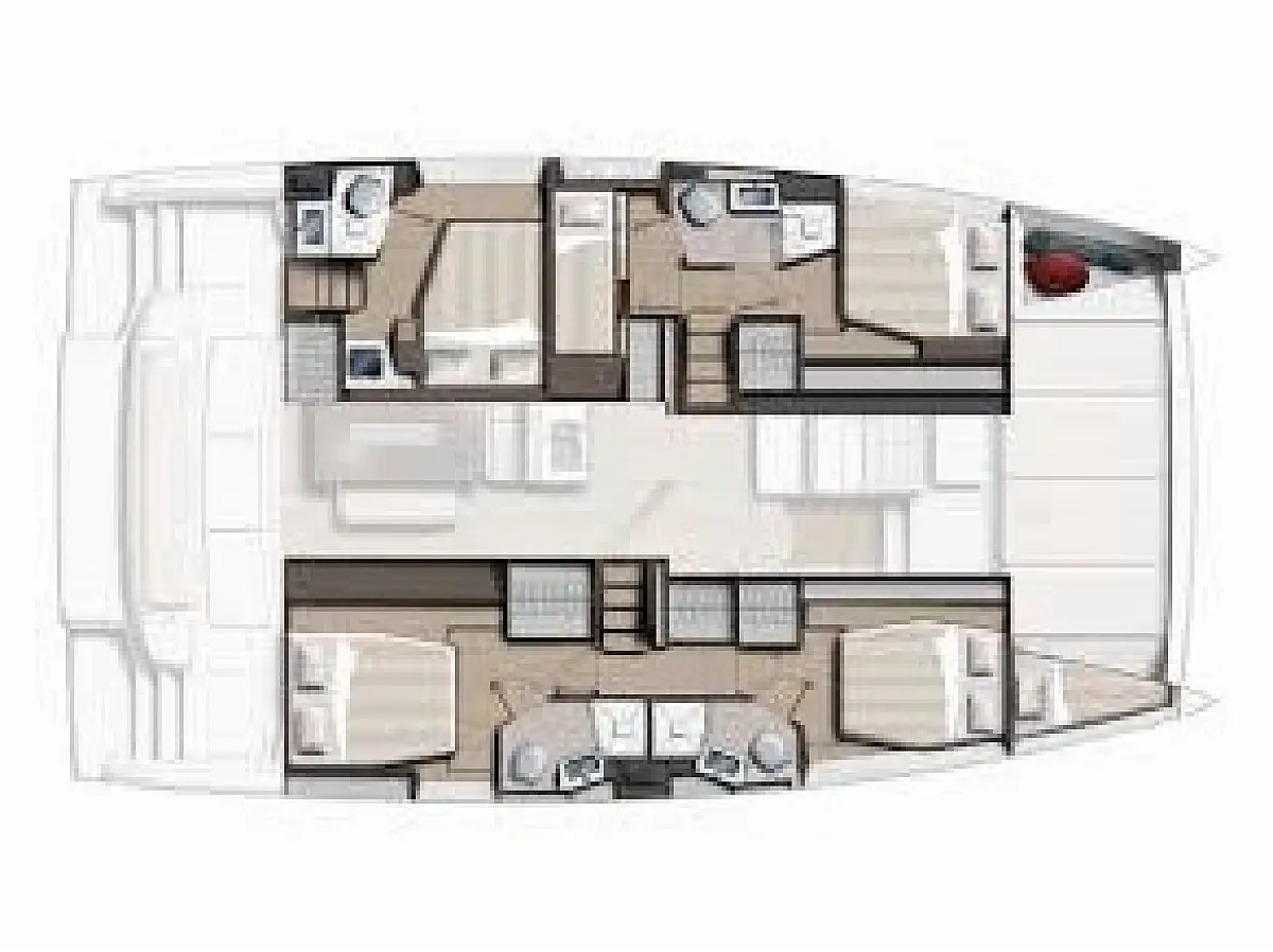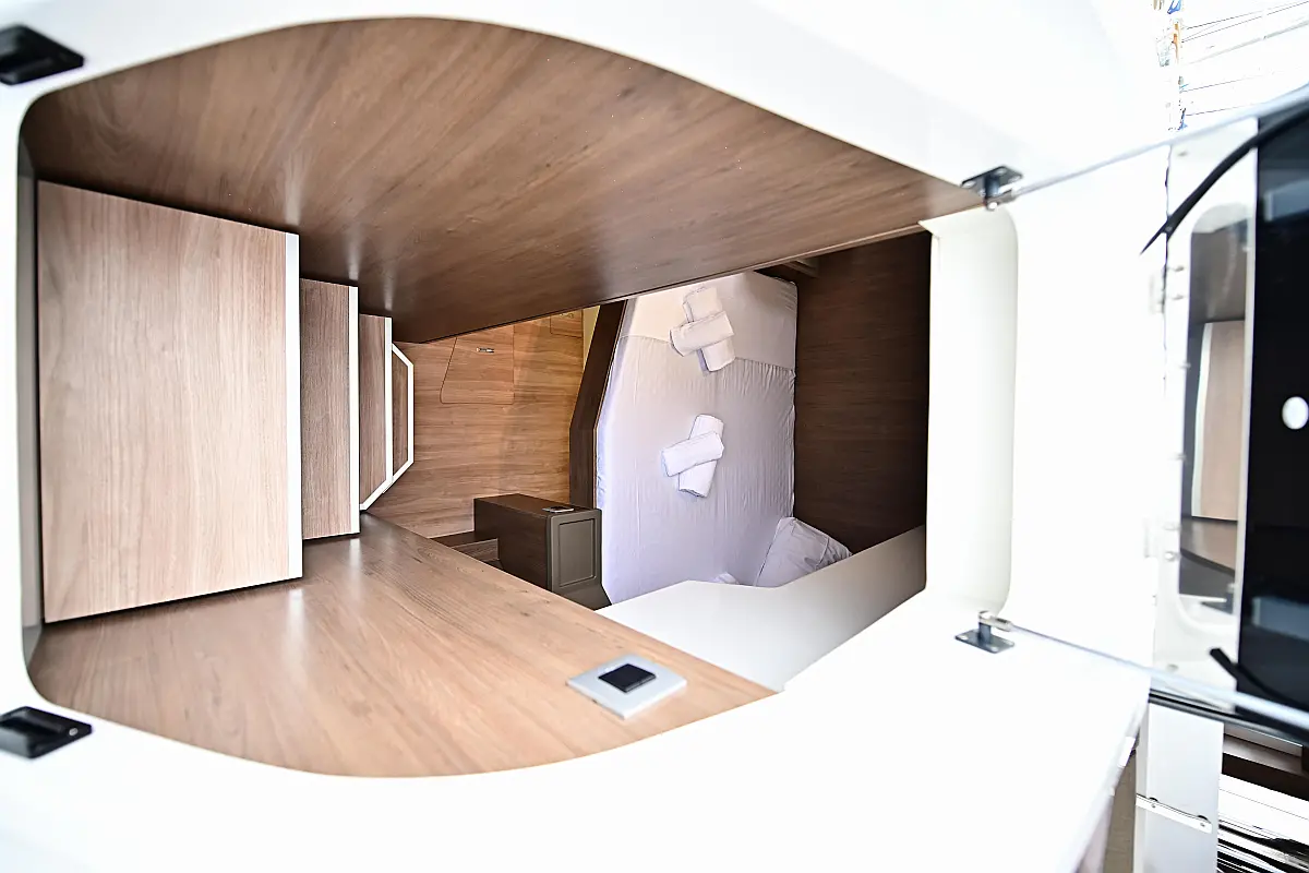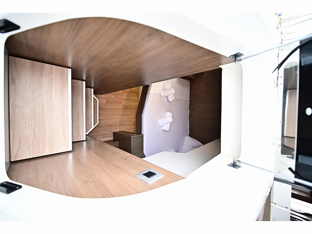 Desalinator, Električni wc, Generator, Klima, Zvočniki v kokpitu, Hladilnik, Ledomat, Pomožni čoln, Inverter, Bimini, Električni vitli