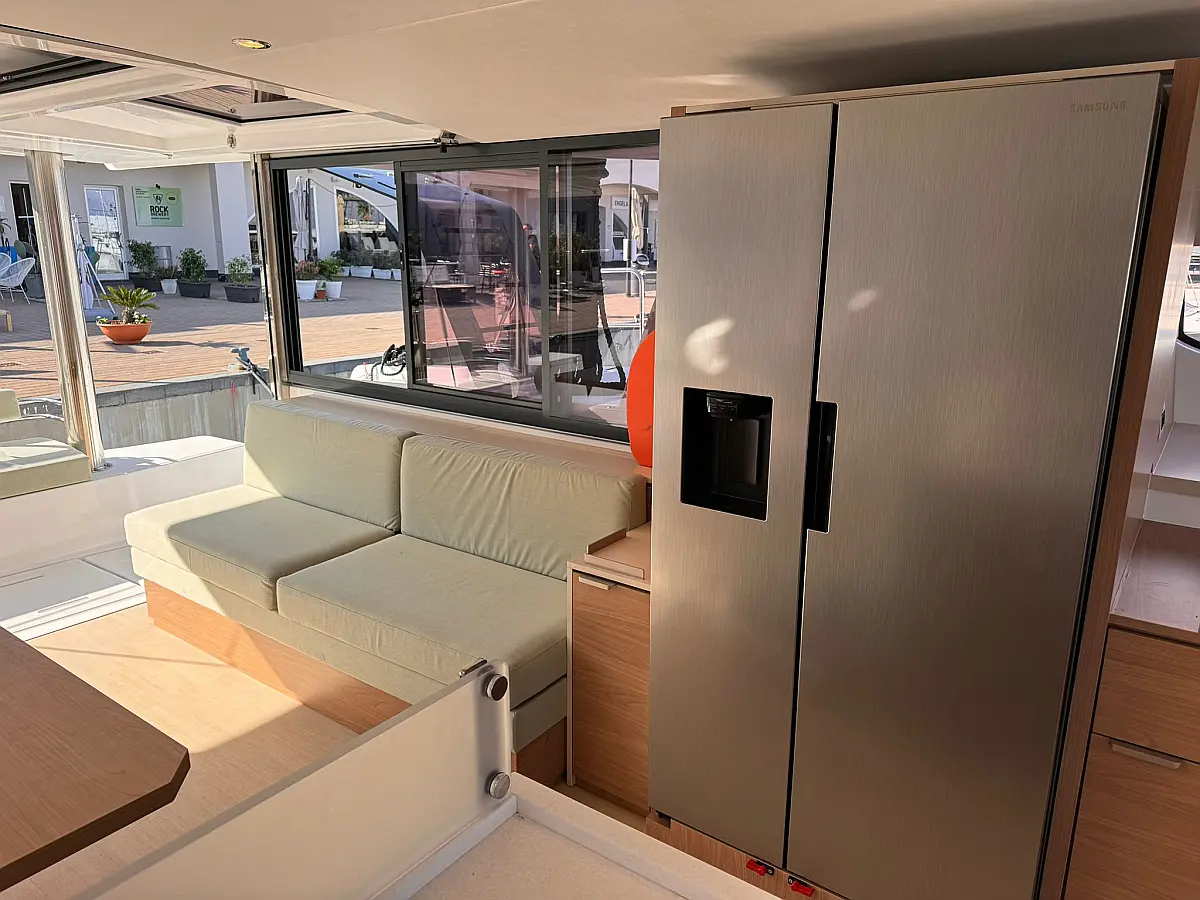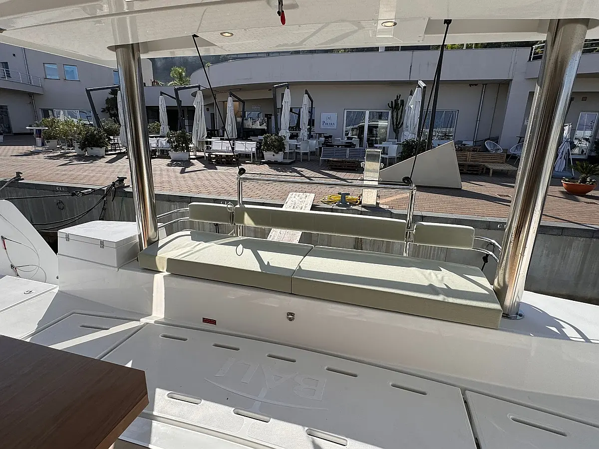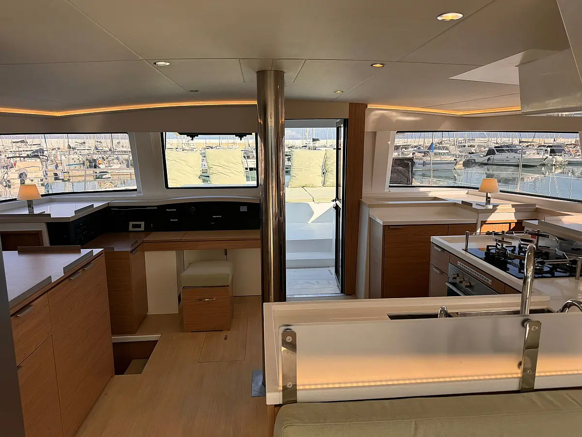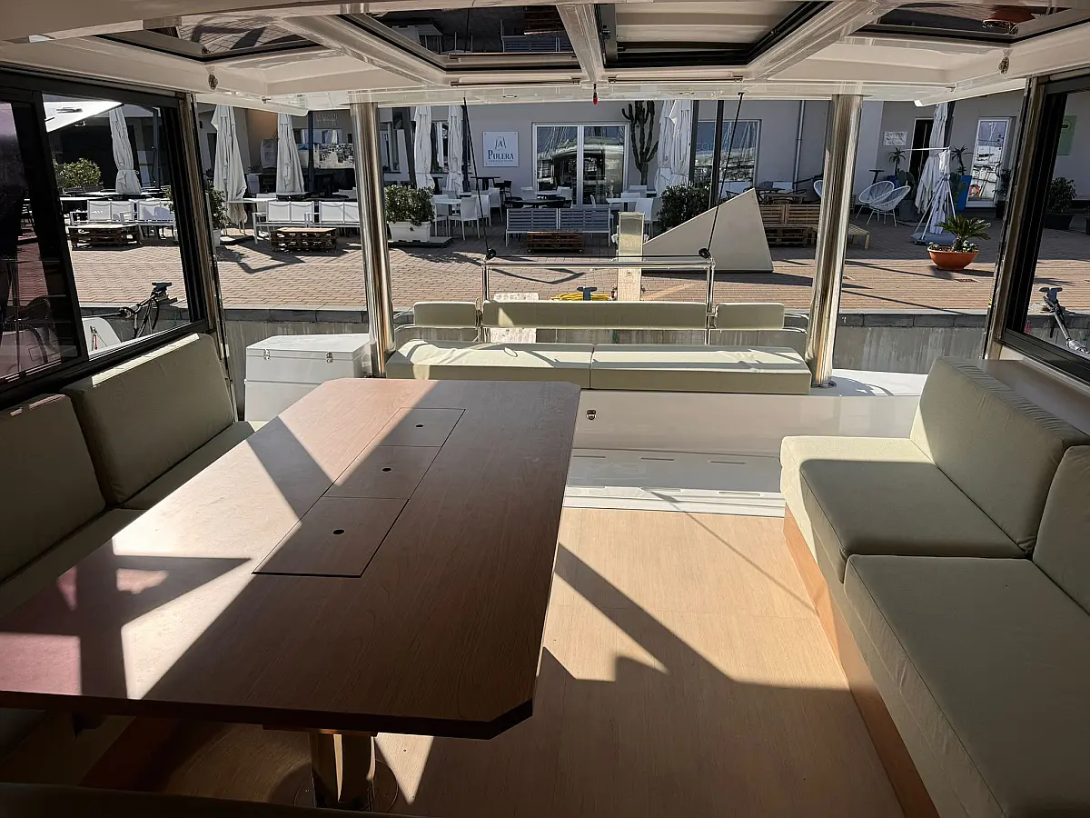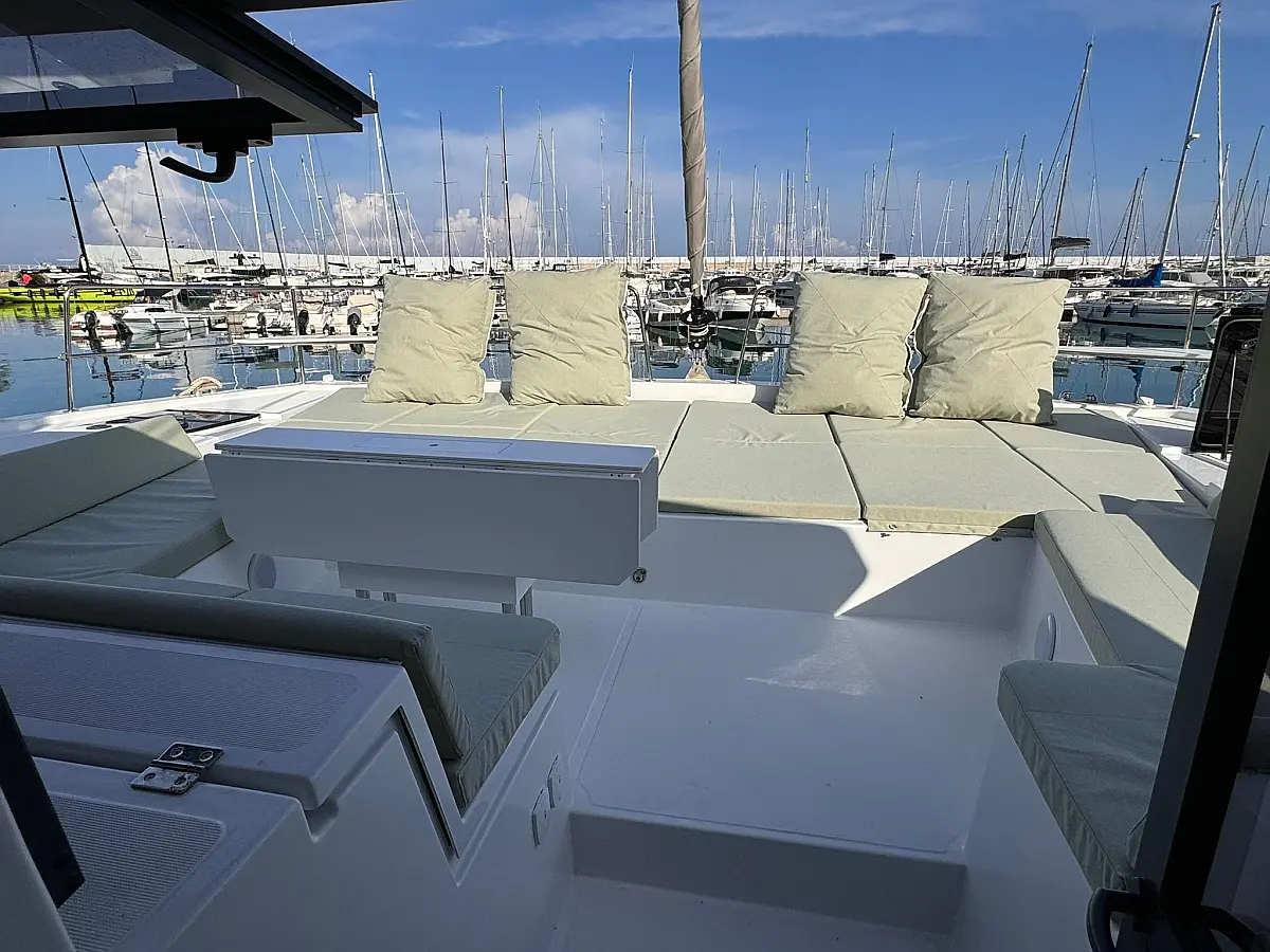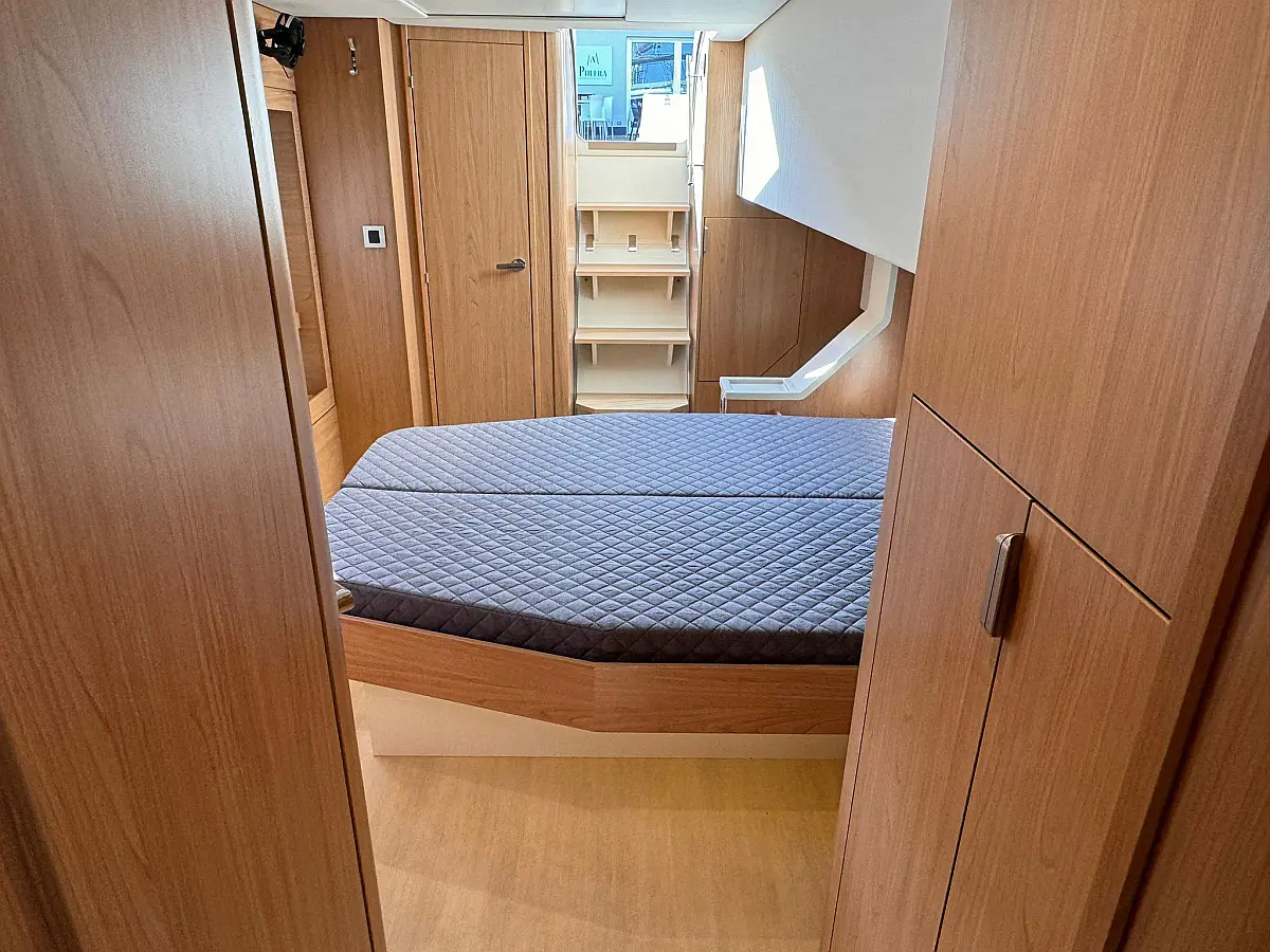 Desalinator, Zvočniki v kokpitu, Klima, Blazine v kokpitu, Električni wc, Generator, sončni kolektorji, teak kokpit, Hladilnik, Električni vitli, Inverter, Izvenkrmni motor