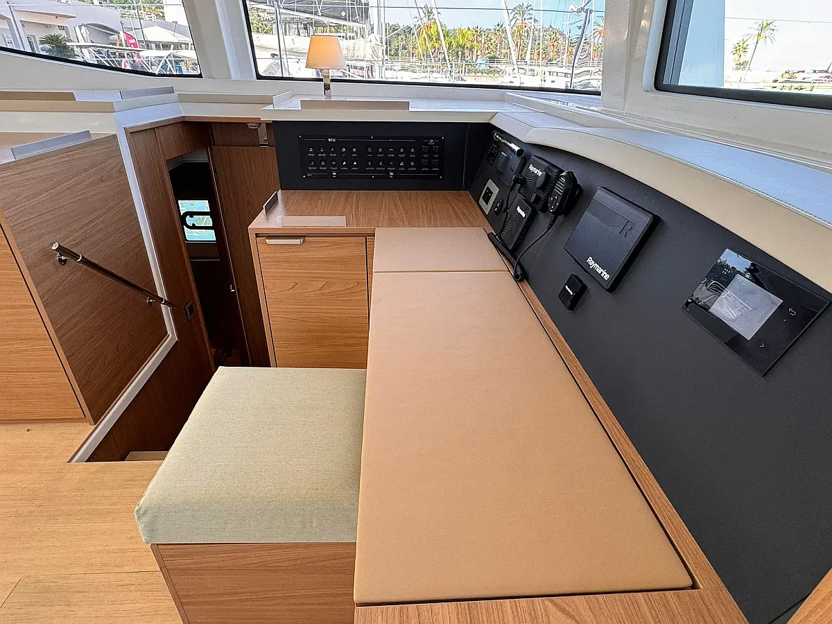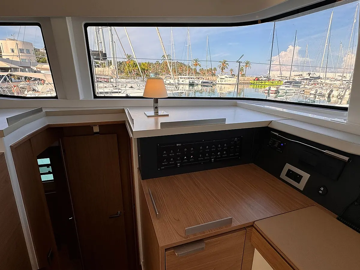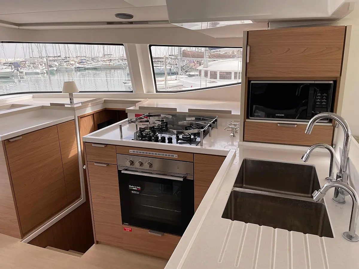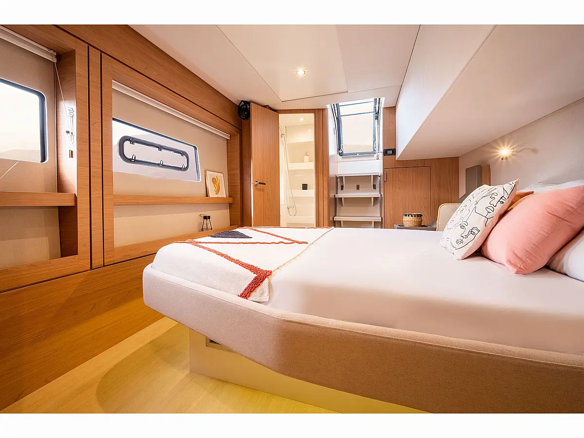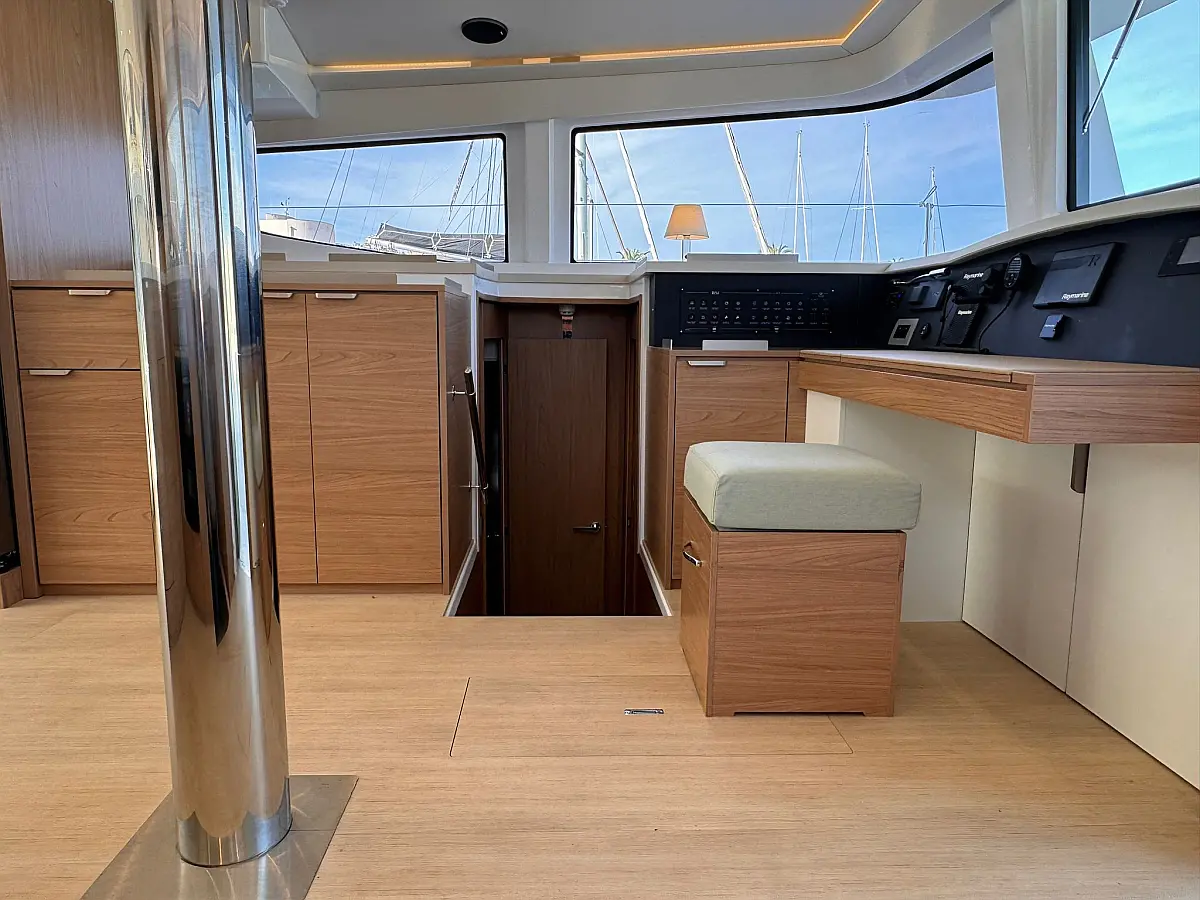 Desalinator, Zvočniki v kokpitu, Klima, Blazine v kokpitu, Električni wc, Generator, sončni kolektorji, teak kokpit, Hladilnik, Električni vitli, Inverter, Izvenkrmni motor