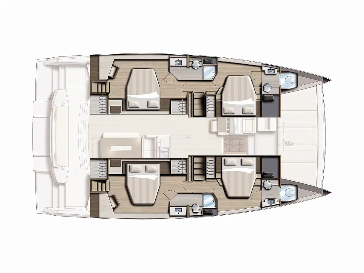 14.82 m dolga Katamaran Bali 4.8/6 cab, izdelana leta 2023, je idealna jahta za raziskovanje Grčija. S 6 udobnimi kabinami, 6 WC/Tuš in dovolj ležišč za do 12 gostov zagotavlja dovolj prostora za sprostitev in zabavo. Ta jahta je na voljo za najem.