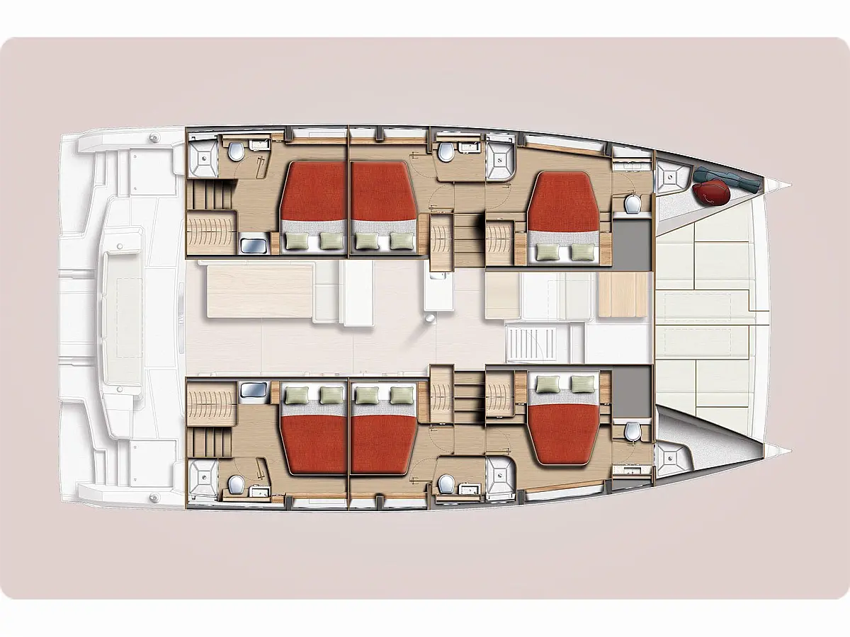 Klima, Inverter, Pomožni čoln, Generator, sončni kolektorji, Električni vitli, Blazine v kokpitu, Hidravlična pasarela