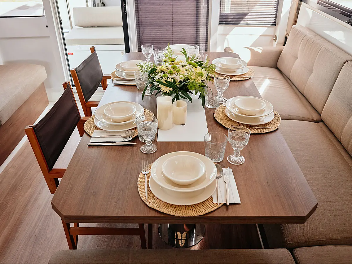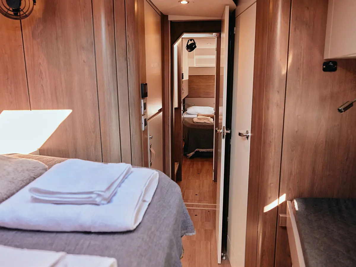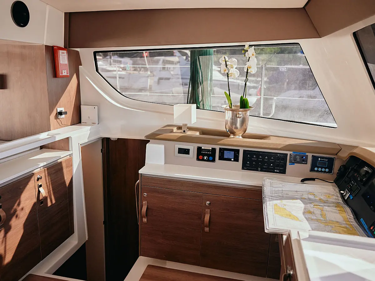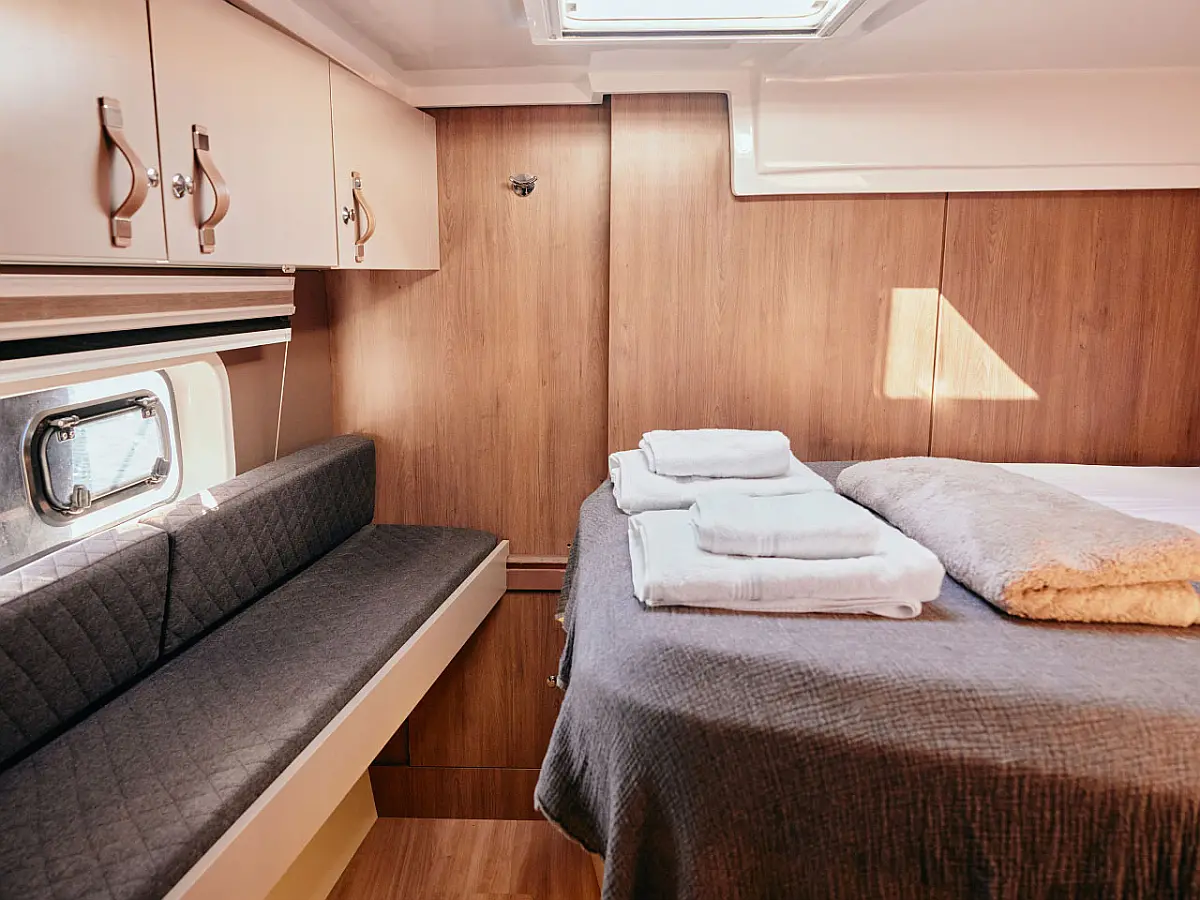 Hladilnik, Blazine v kokpitu, Bimini, Pomožni čoln, Generator, Klima, Inverter, Desalinator