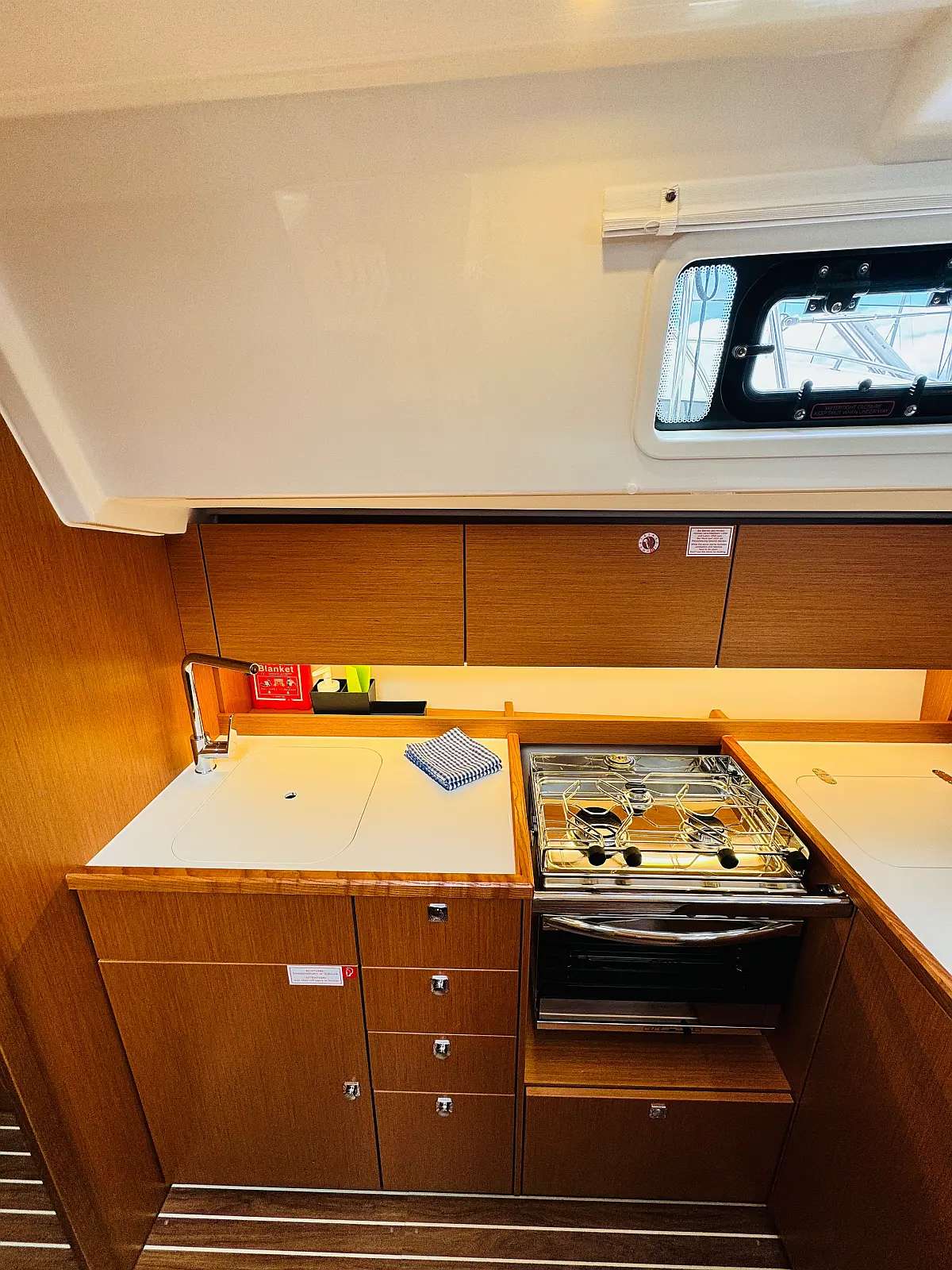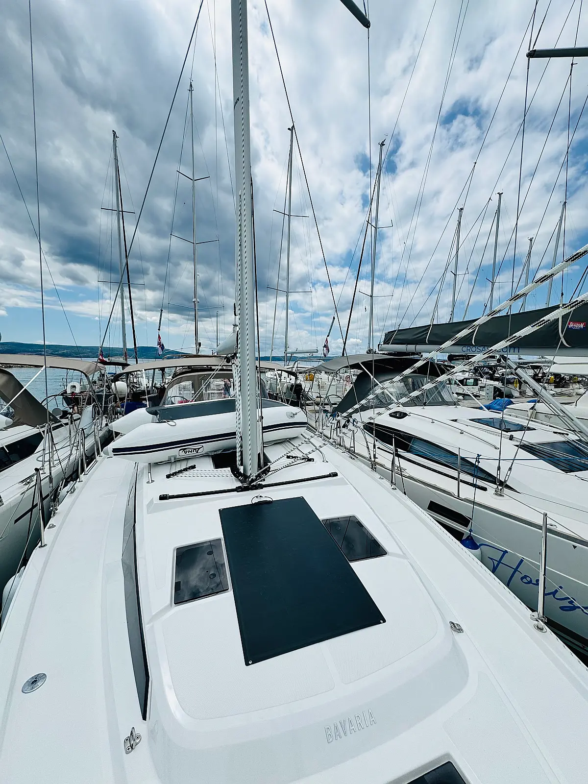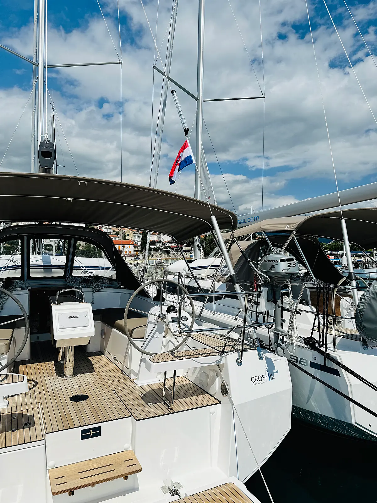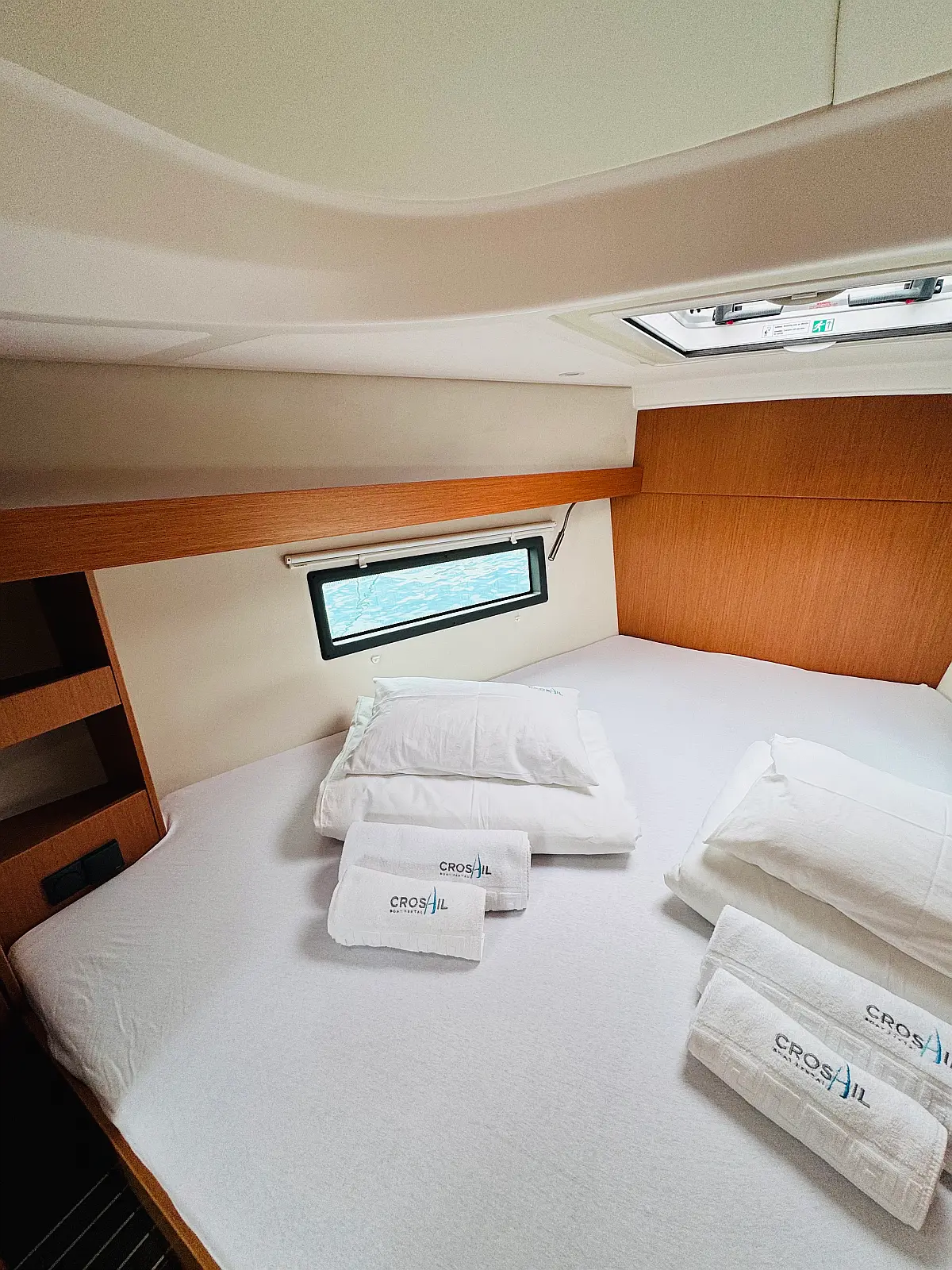Hladilnik, Klima, Pomožni čoln, Sprayhood, Wi-Fi in internet, Zvočniki v kokpitu, sončni kolektorji, Bimini, teak kokpit
