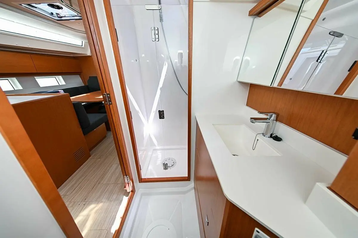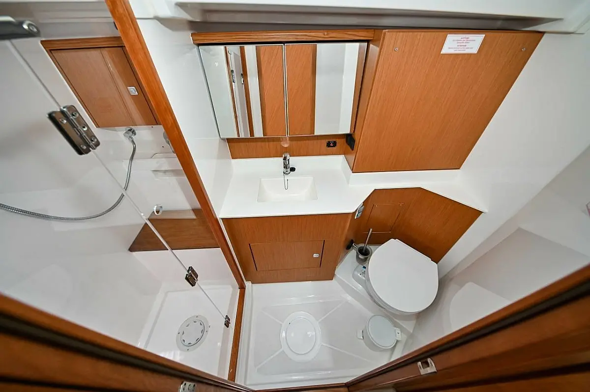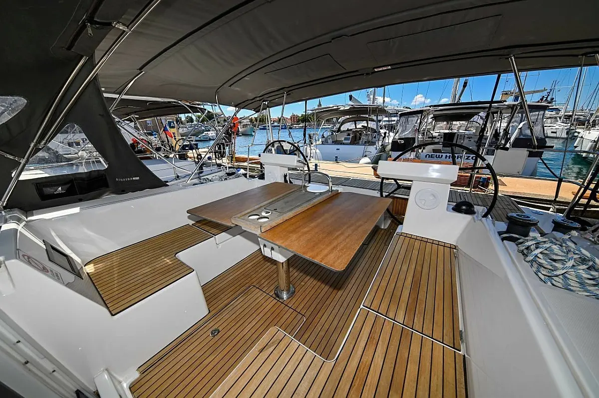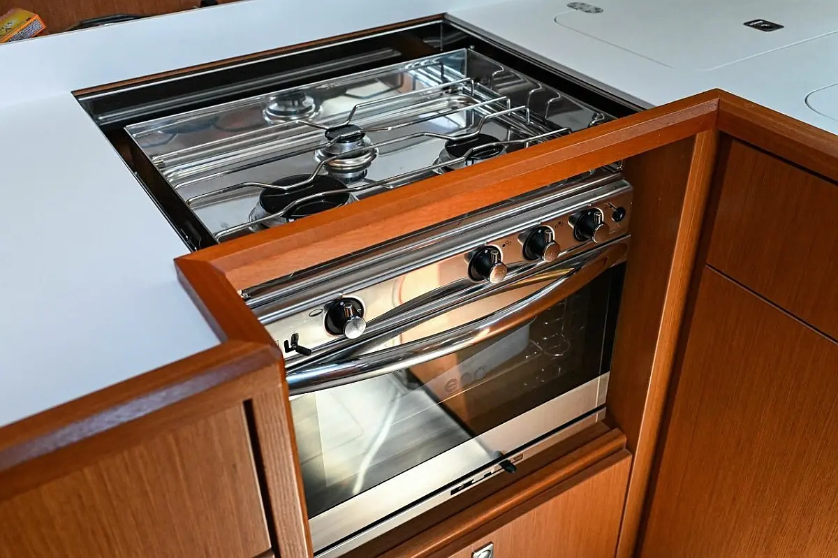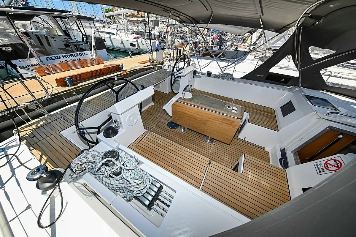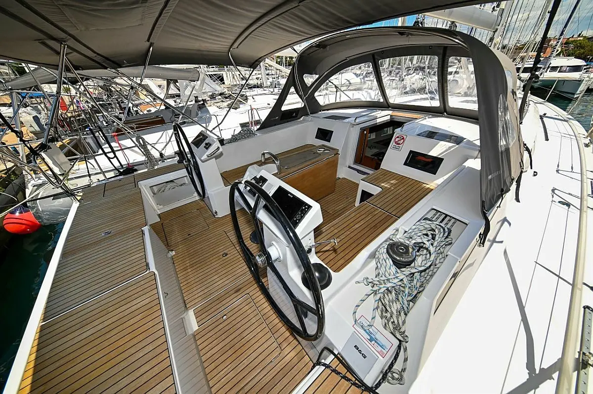 Blazine v kokpitu, Gretje, Kopalna ploščad, Bimini, Pomožni čoln, Sprayhood, teak kokpit, Hladilnik, Preoblikovalna miza, Električni wc, Zvočniki v kokpitu