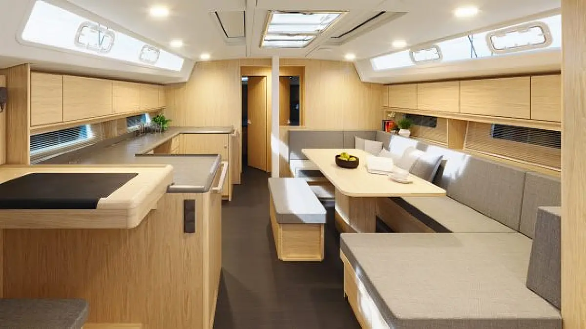 Hladilnik, Klima, Bimini, Sprayhood, Blazine v kokpitu, sončni kolektorji, teak kokpit