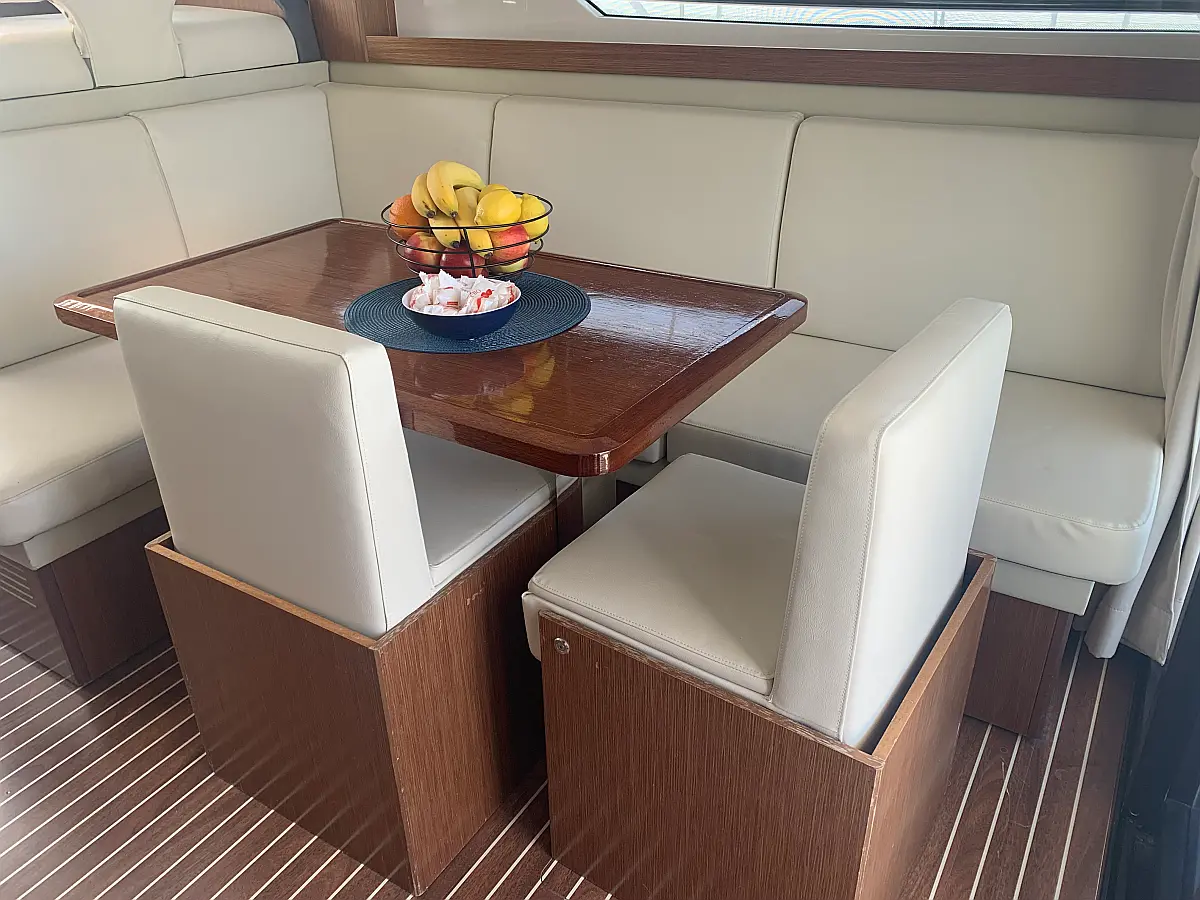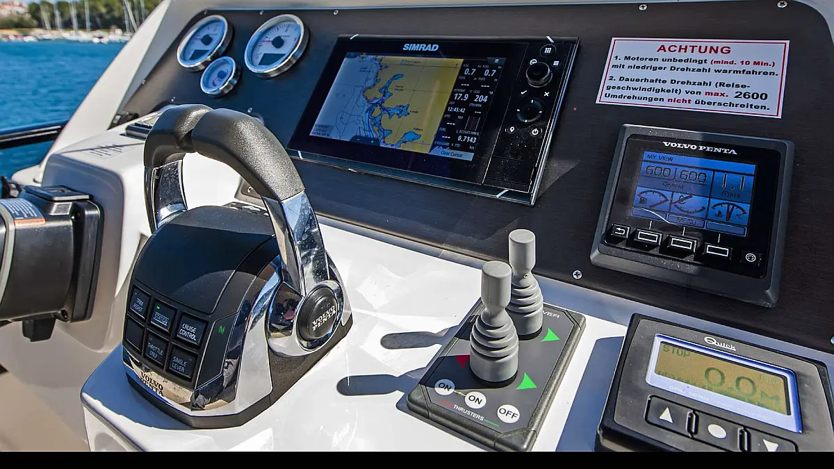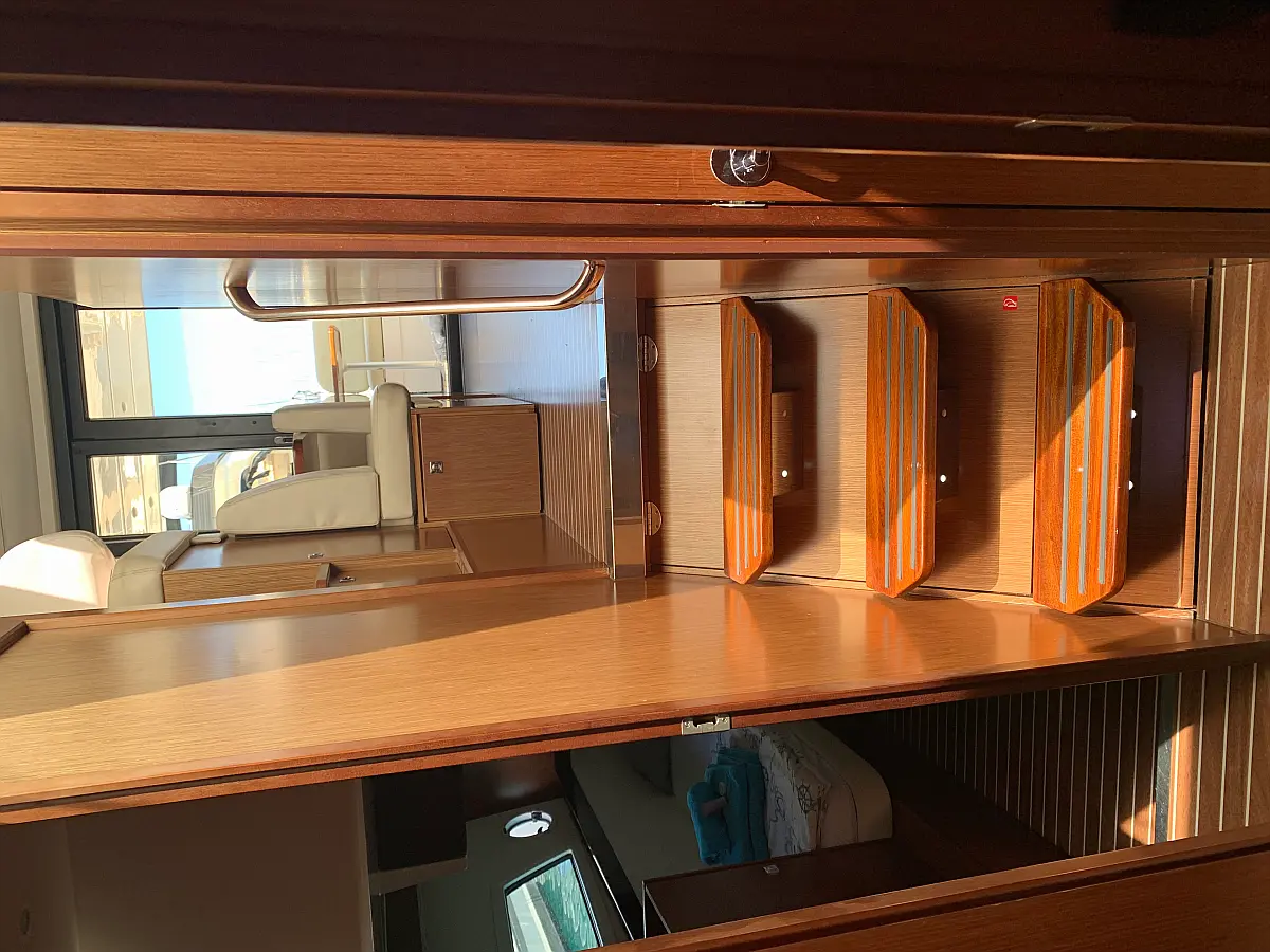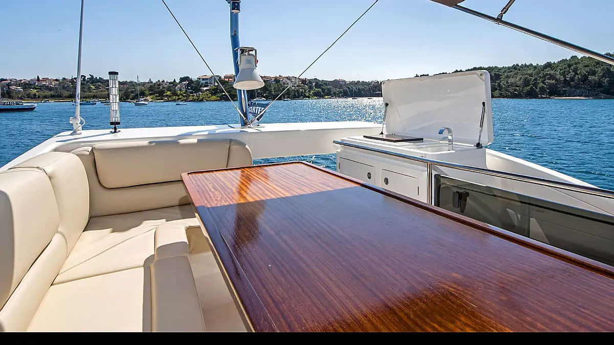 Klima, Kopalna ploščad, Generator, Hladilnik, Aparat za kavo, Pomožni čoln, Bimini, Flybridge