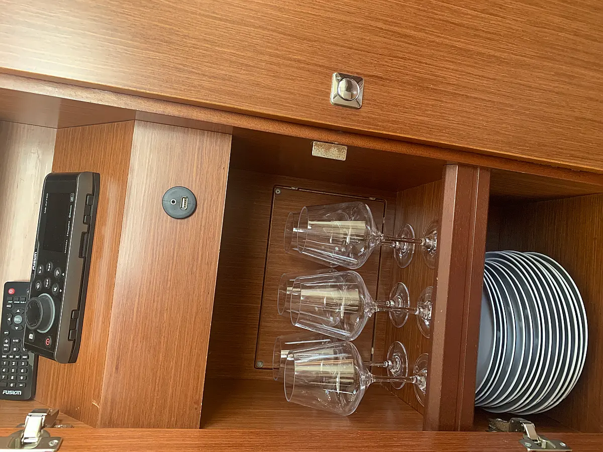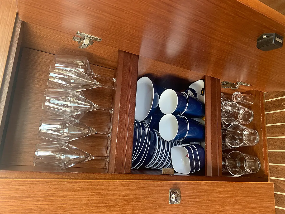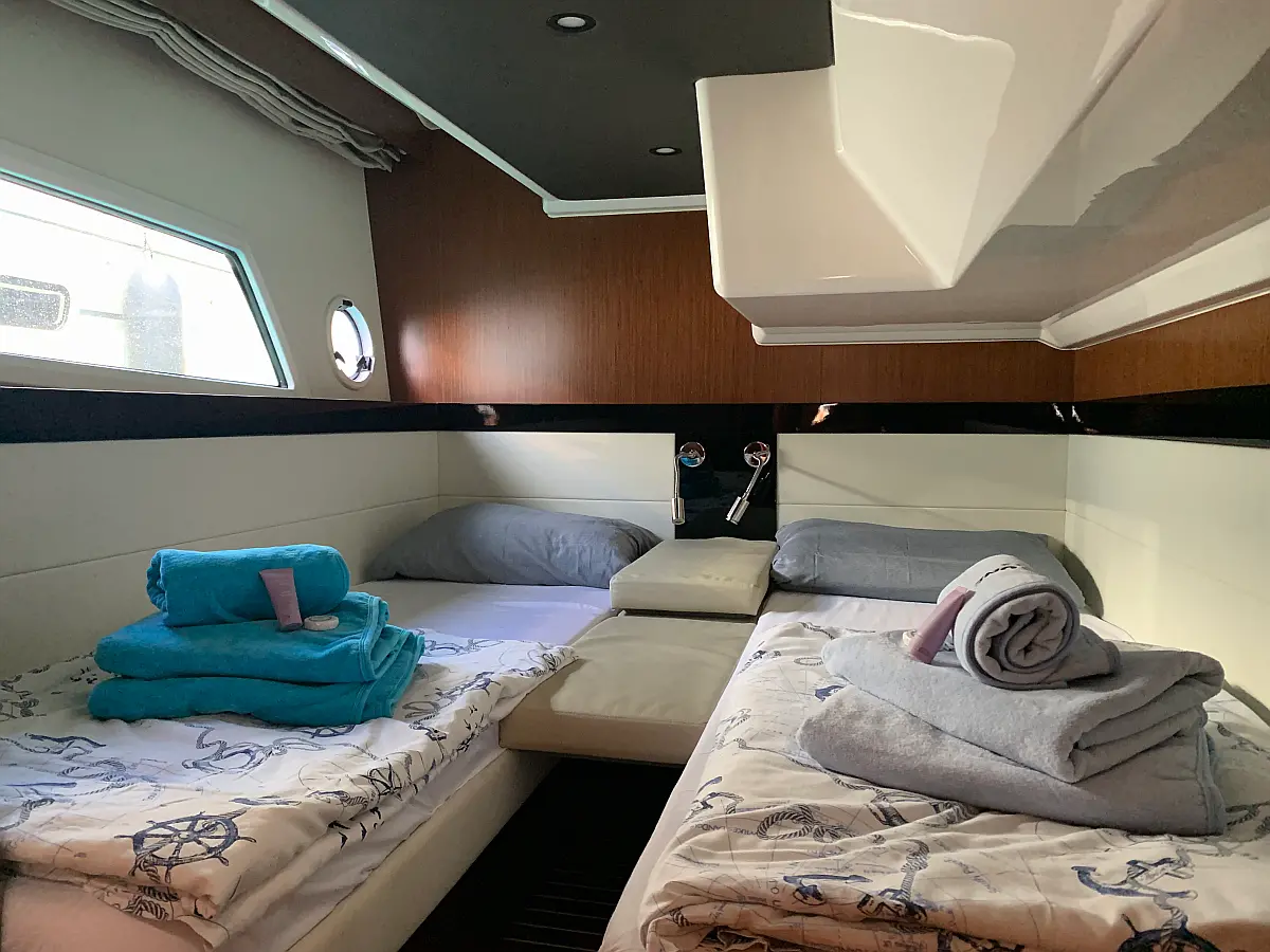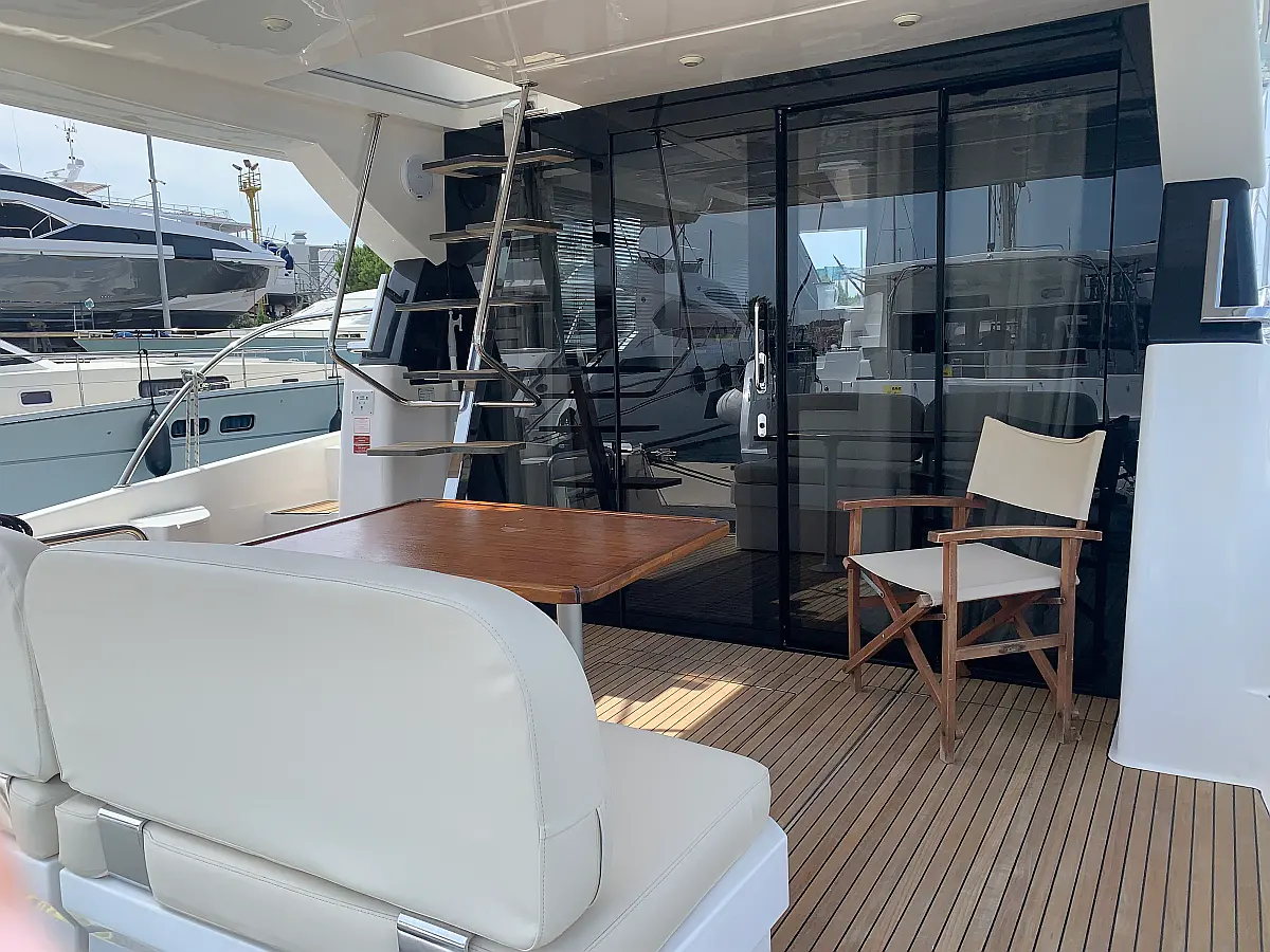 Klima, Kopalna ploščad, Generator, Hladilnik, Aparat za kavo, Pomožni čoln, Bimini, Flybridge