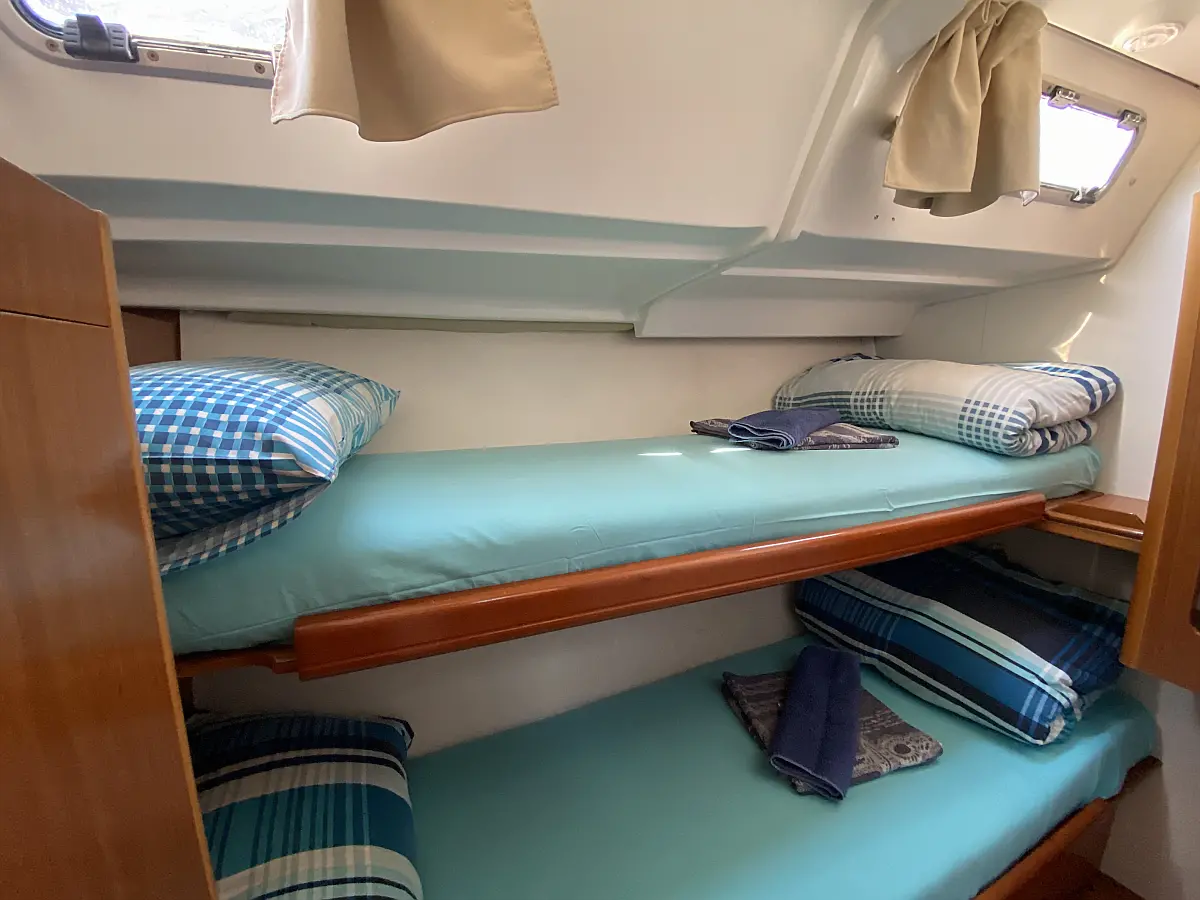 Hladilnik, Pomožni čoln, Bimini, Sprayhood, Blazine v kokpitu, Črni tank, sončni kolektorji