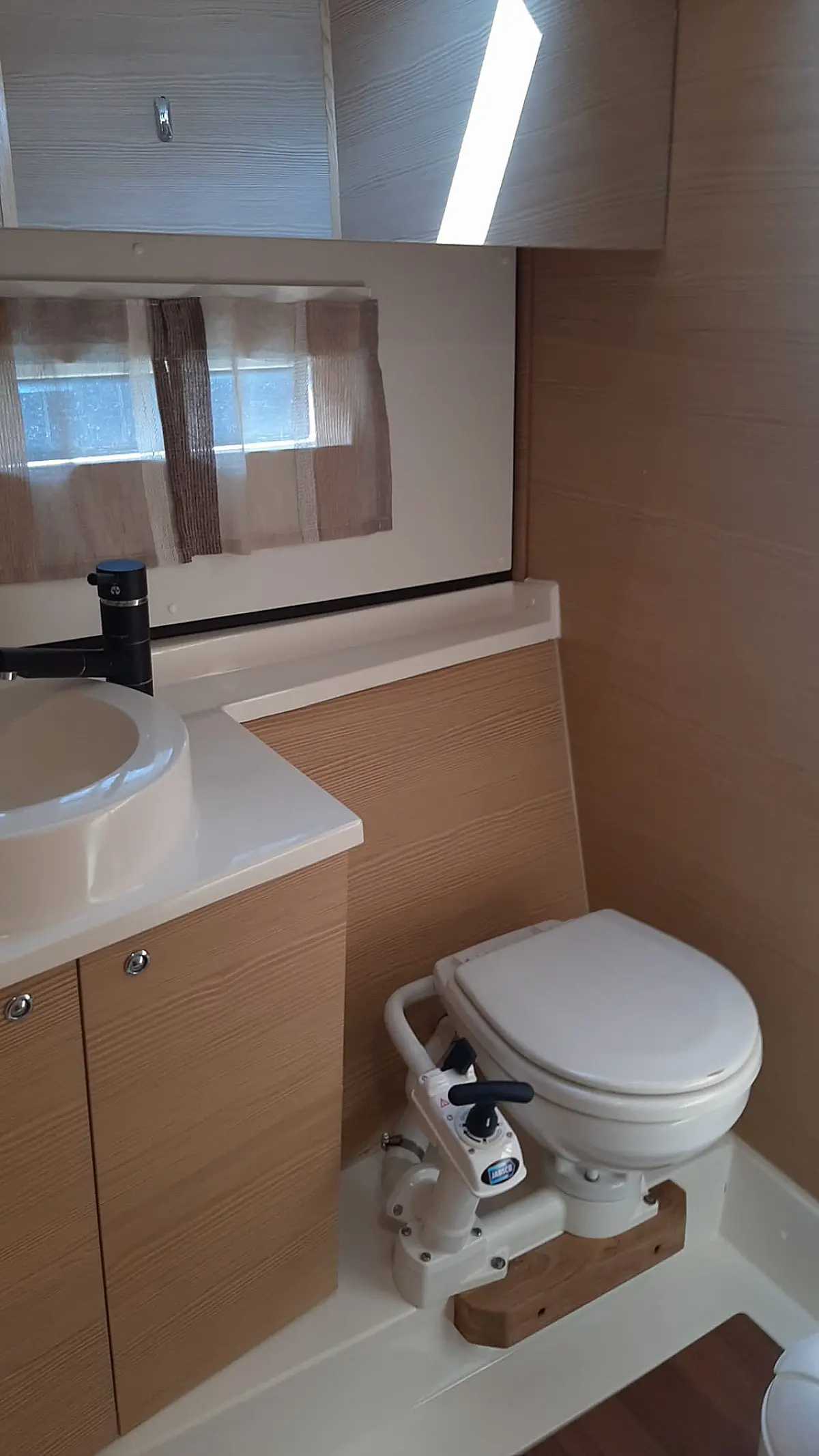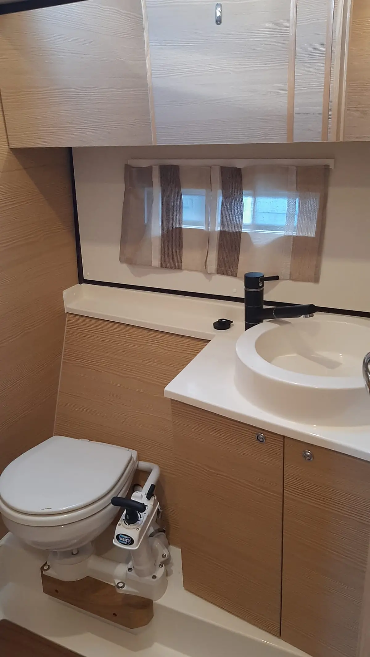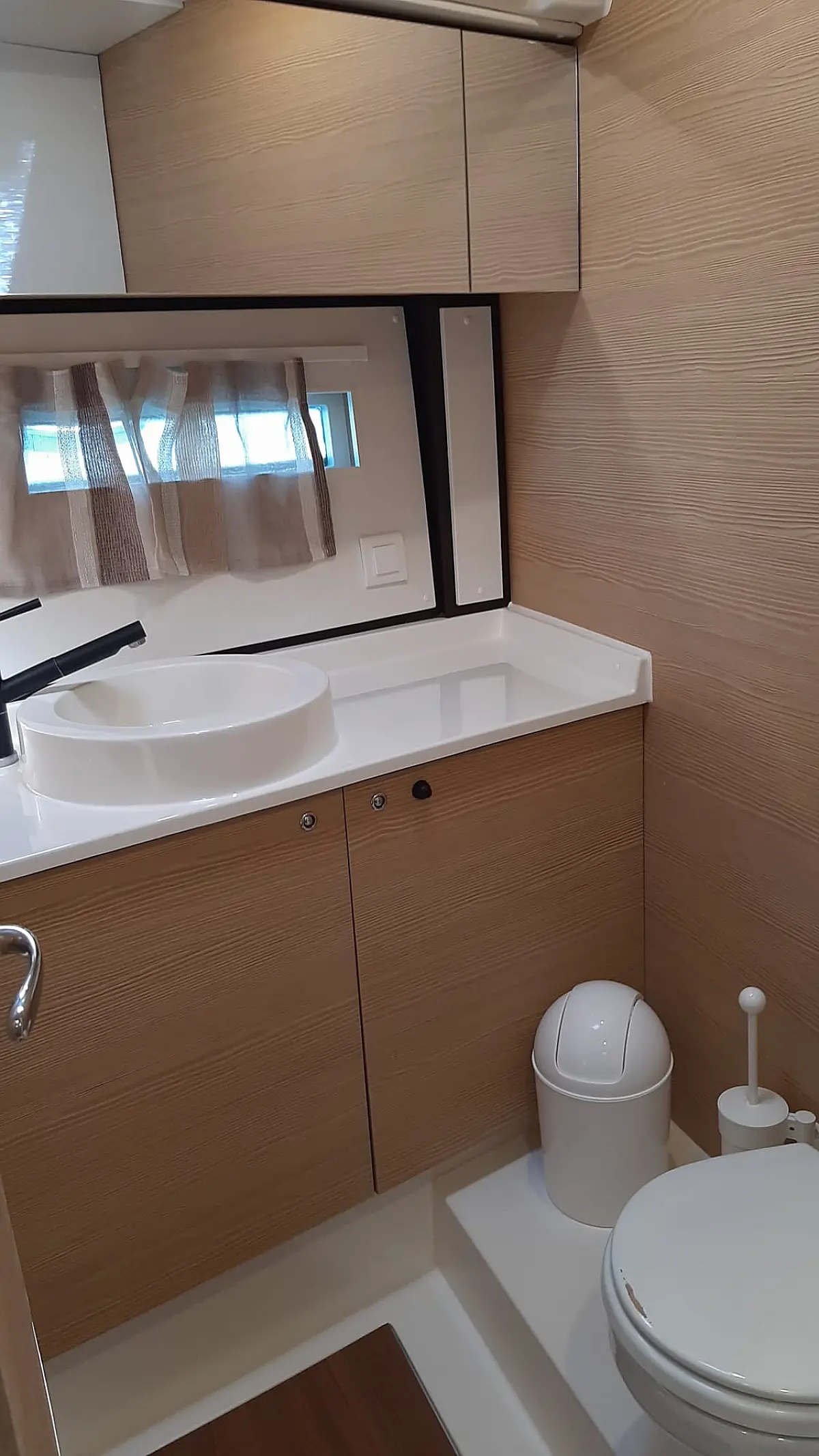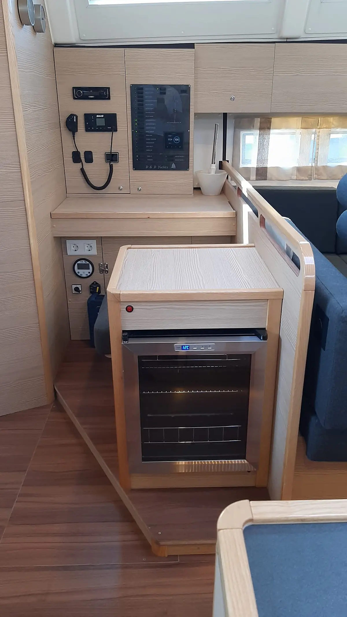 Izvenkrmni motor, Pomožni čoln, Hladilnik, Sprayhood, teak kokpit, Zvočniki v kokpitu, Klima, Generator, Gretje, Inverter
