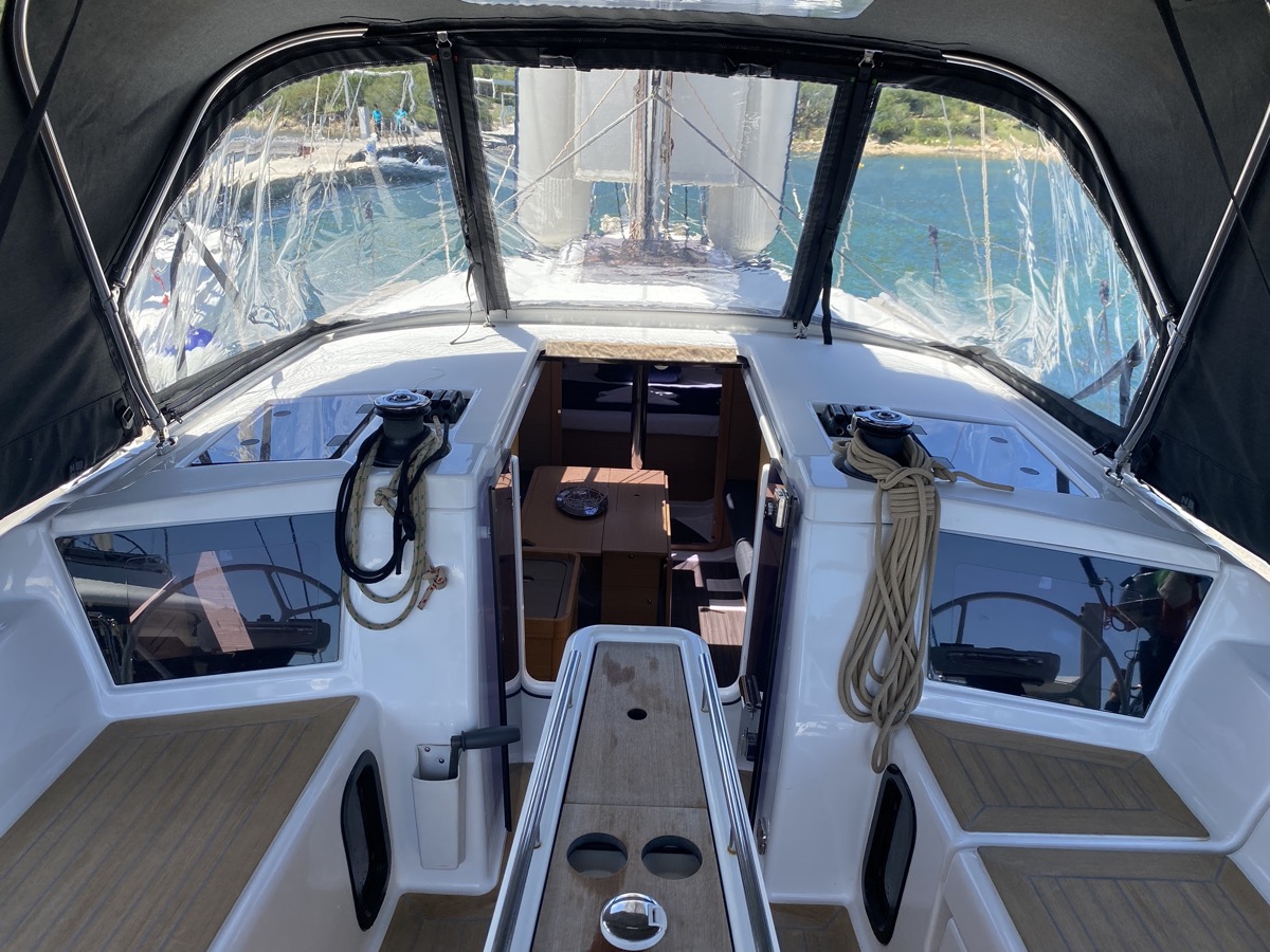 Blazine v kokpitu, Zvočniki v kokpitu, Pomožni čoln, Sprayhood, teak kokpit, Črni tank, Bimini, Električni wc, Žar v kokpitu