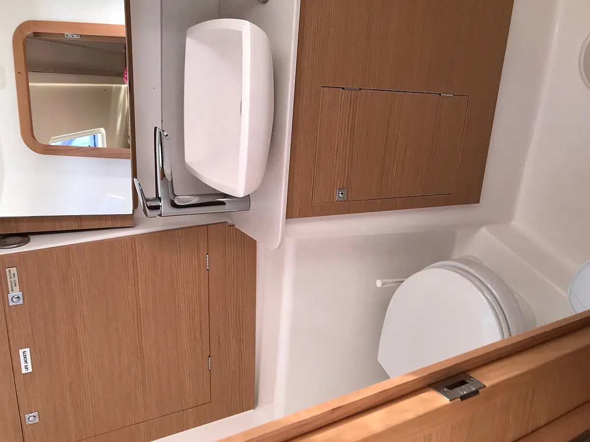 Zvočniki v kokpitu, teak kokpit, Sprayhood, Bimini, Blazine v kokpitu, Kopalna ploščad, Žar v kokpitu, Preoblikovalna miza
