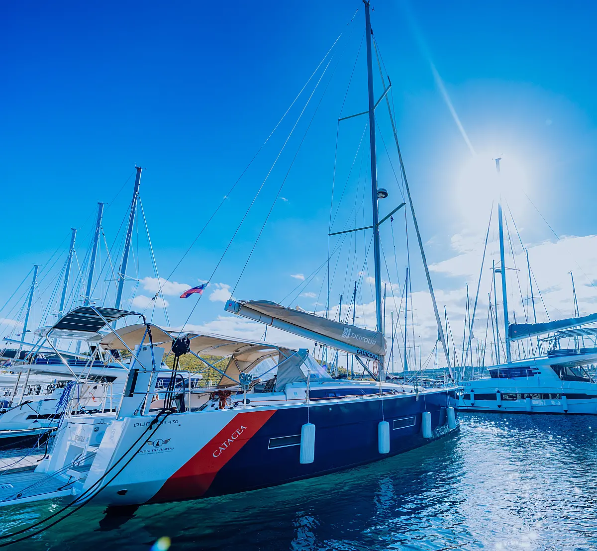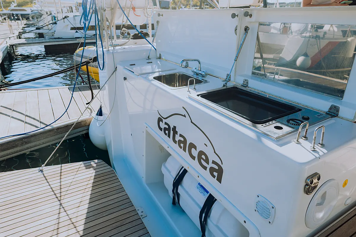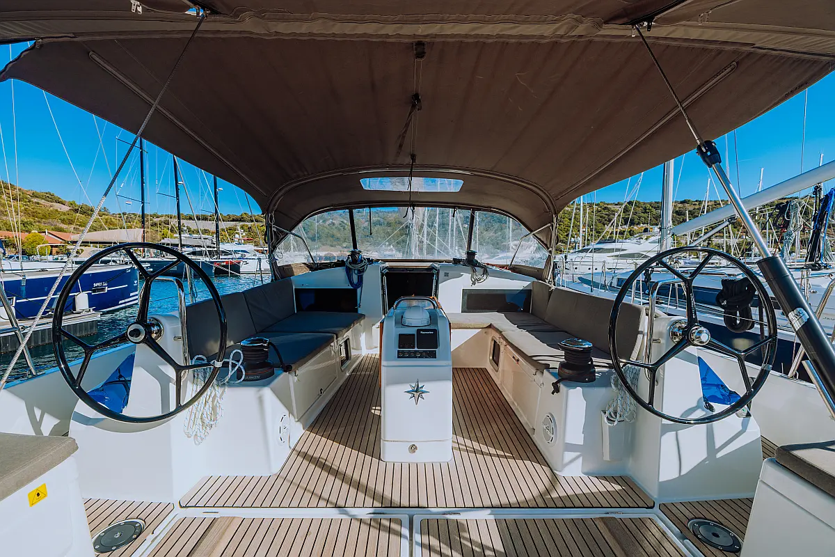 Generator, Klima, teak kokpit, Sprayhood, Bimini, Izvenkrmni motor, Žar v kokpitu, sončni kolektorji