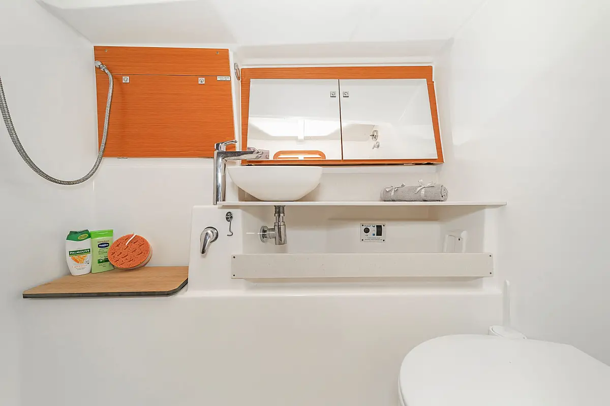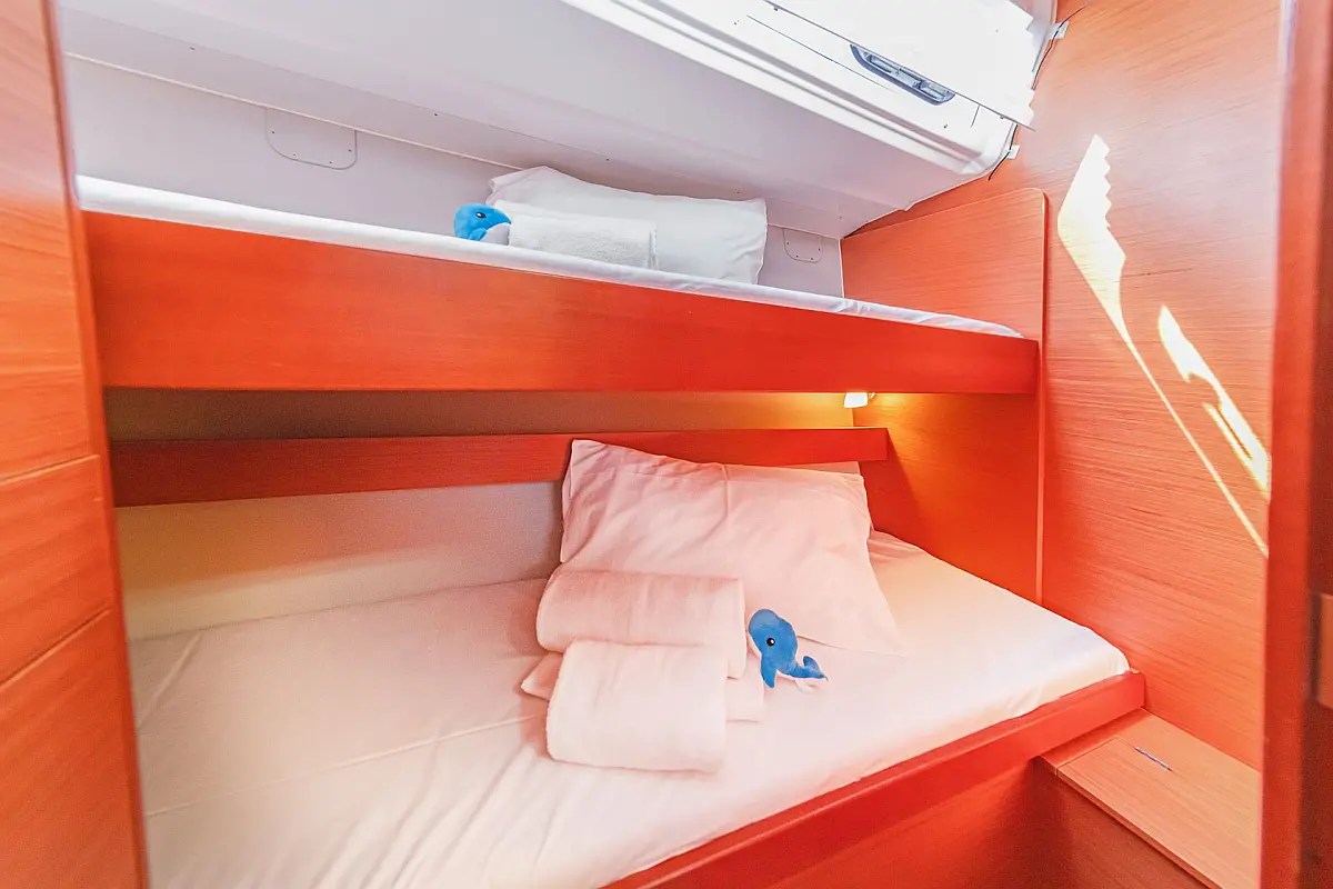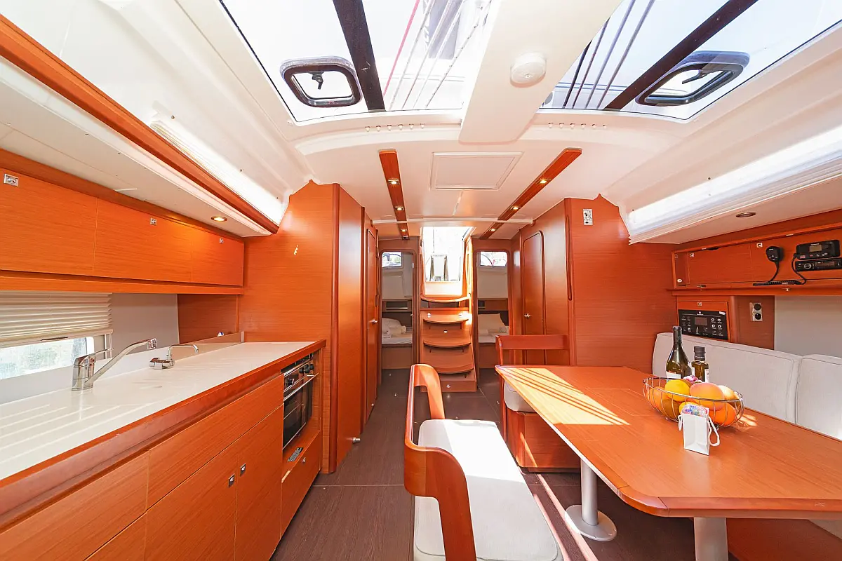 Zvočniki v kokpitu, Sprayhood, Bimini, Blazine v kokpitu, sončni kolektorji, Inverter, Hladilnik, Električni wc