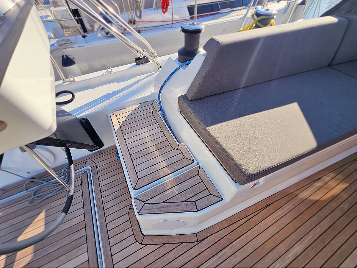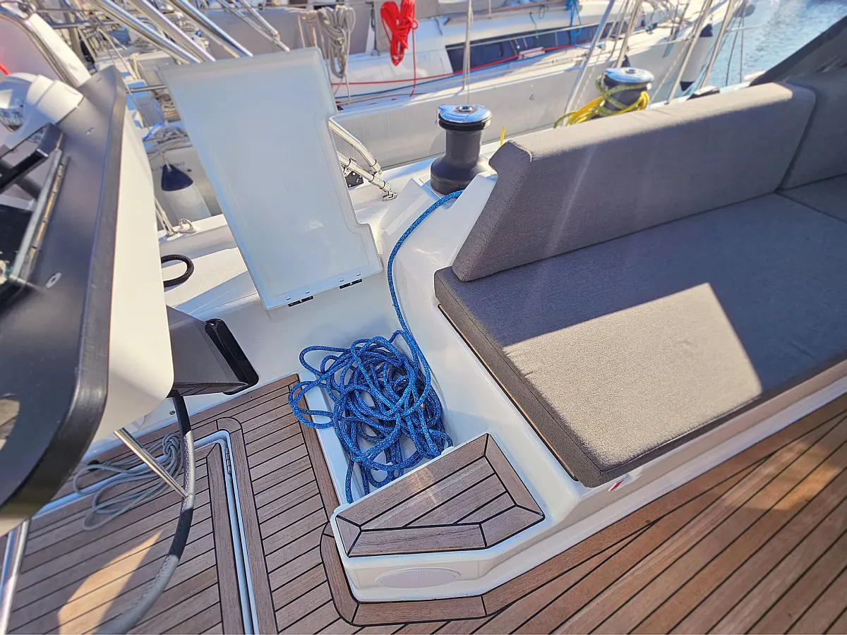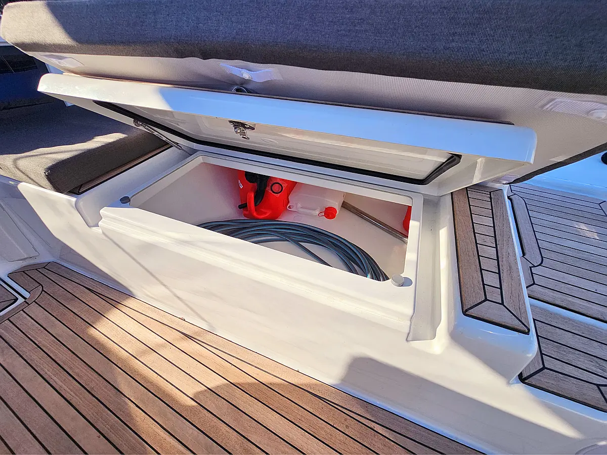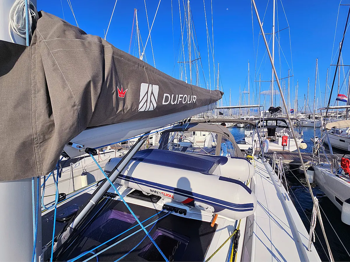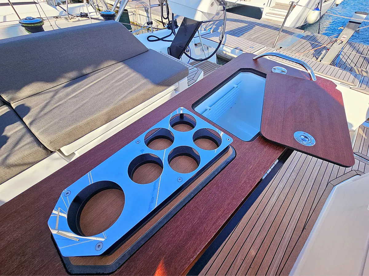 Pomožni čoln, Izvenkrmni motor, Blazine v kokpitu, teak kokpit, Hladilnik, Sprayhood, Bimini, Inverter, Wi-Fi in internet, sončni kolektorji