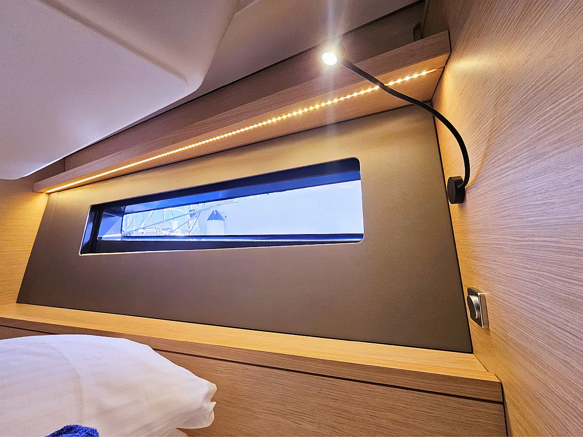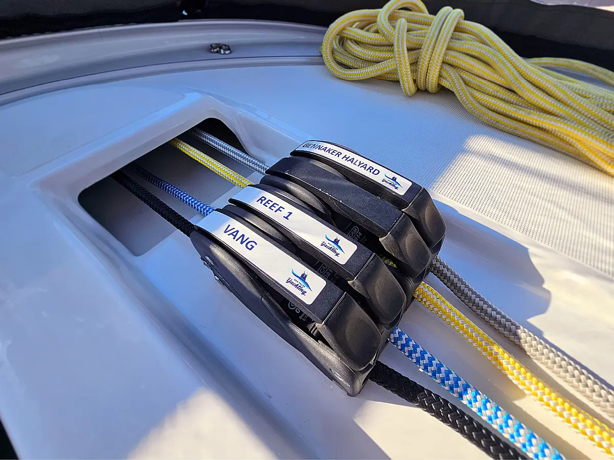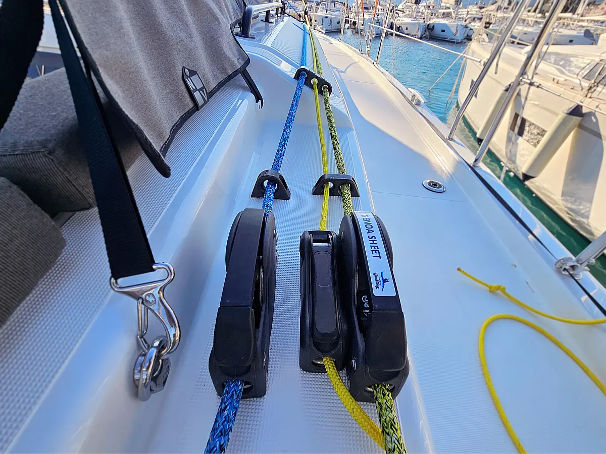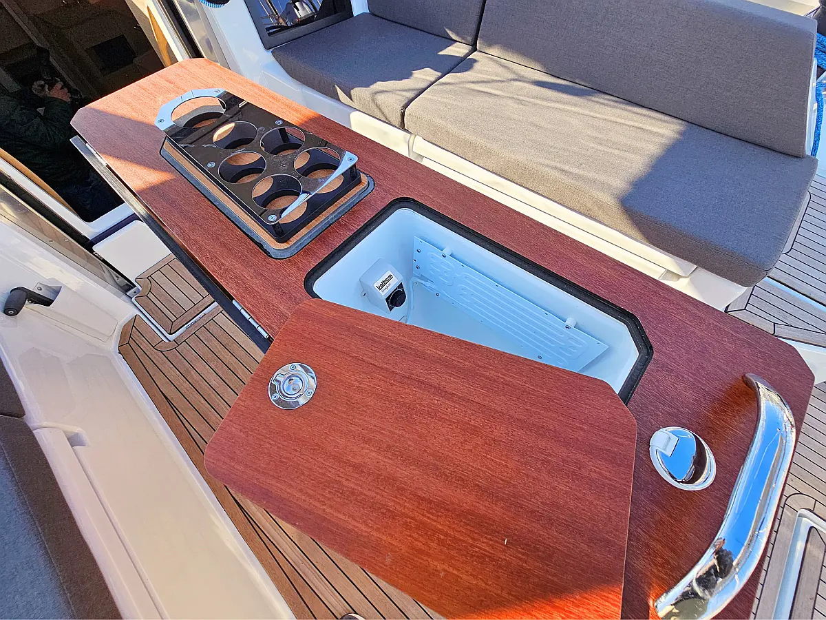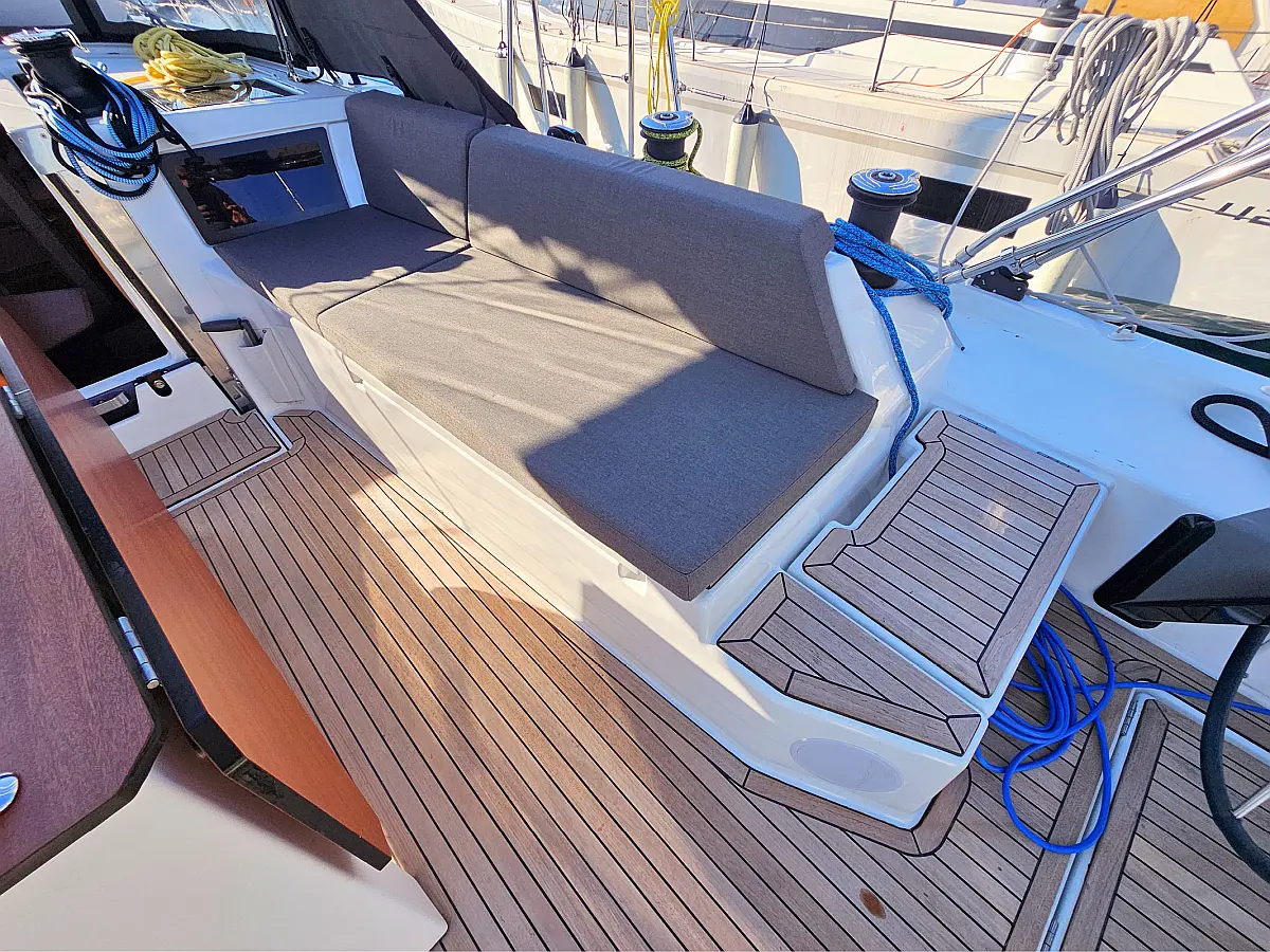 Pomožni čoln, Izvenkrmni motor, Blazine v kokpitu, teak kokpit, Hladilnik, Sprayhood, Bimini, Inverter, Wi-Fi in internet, sončni kolektorji