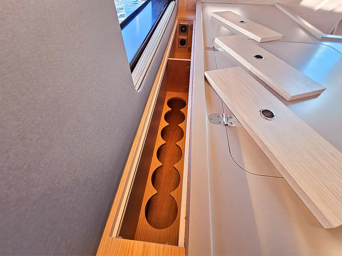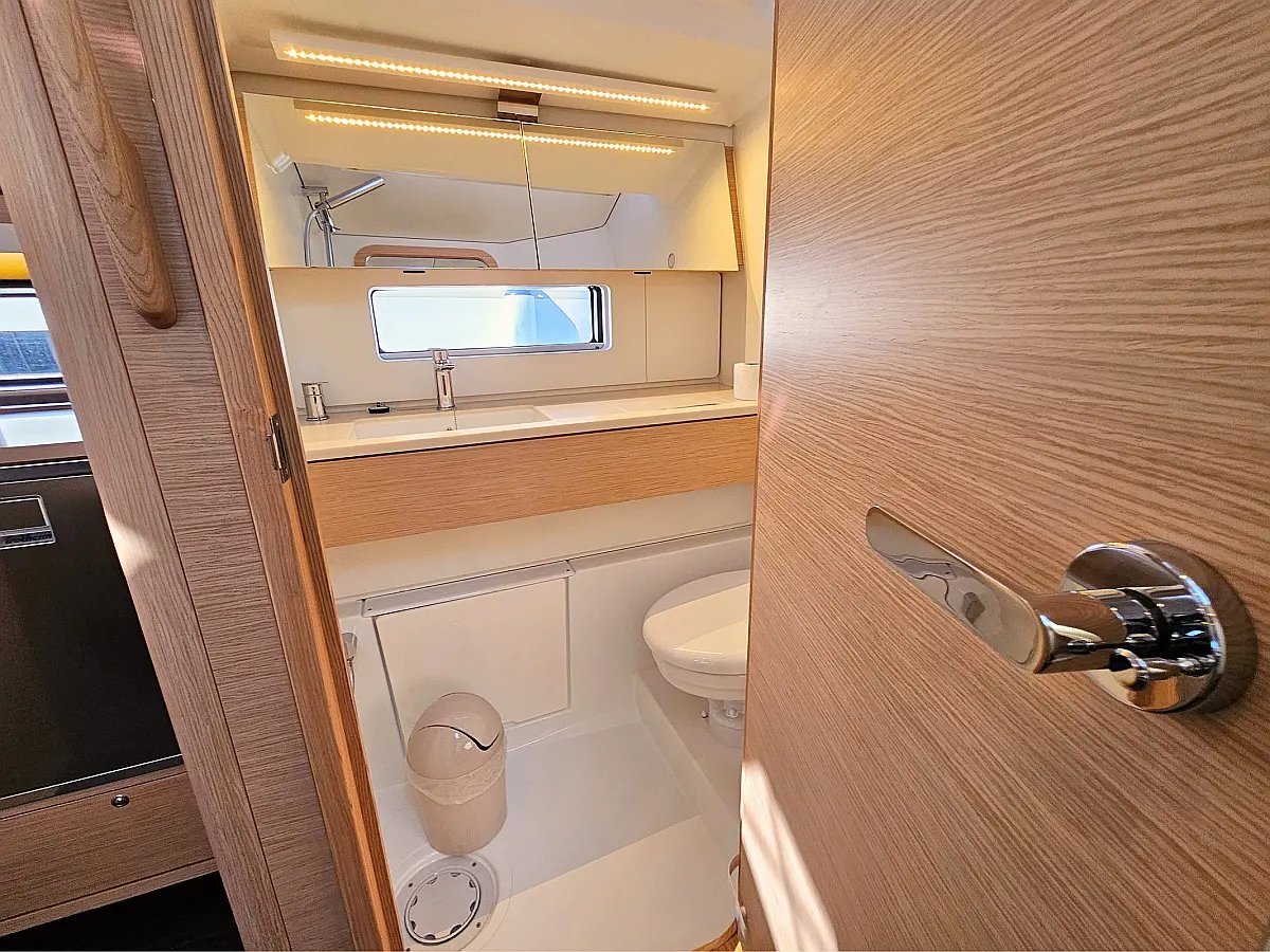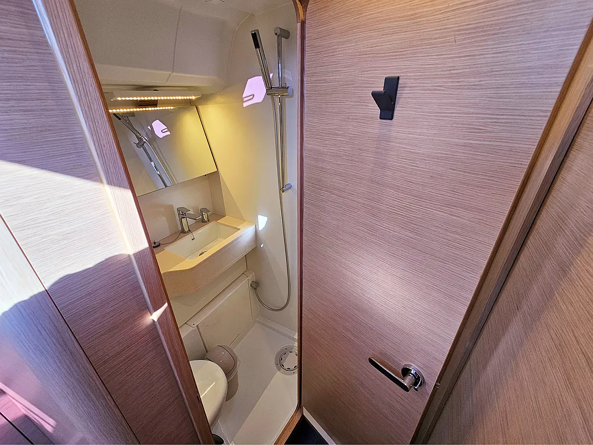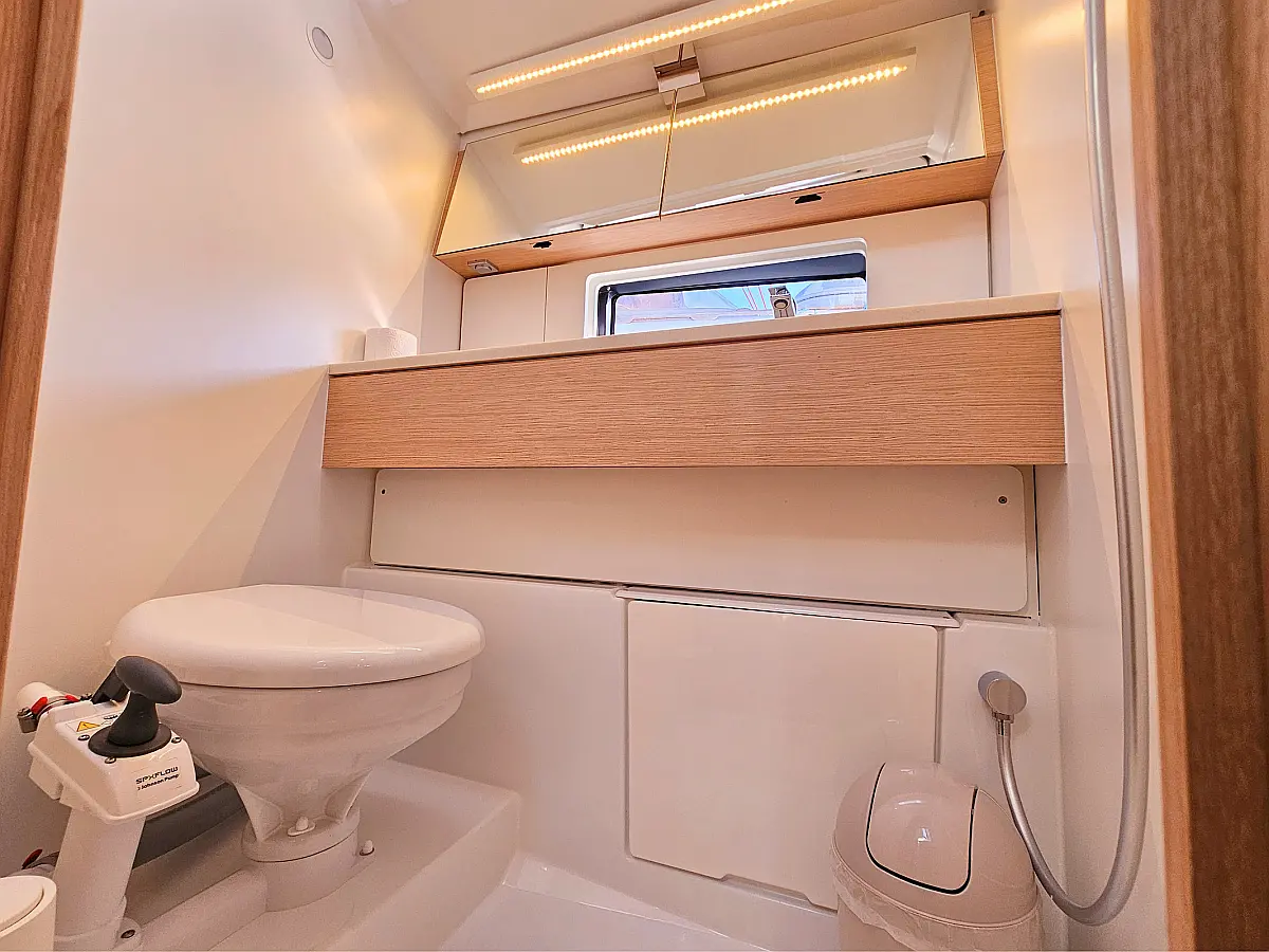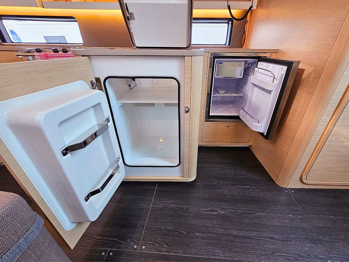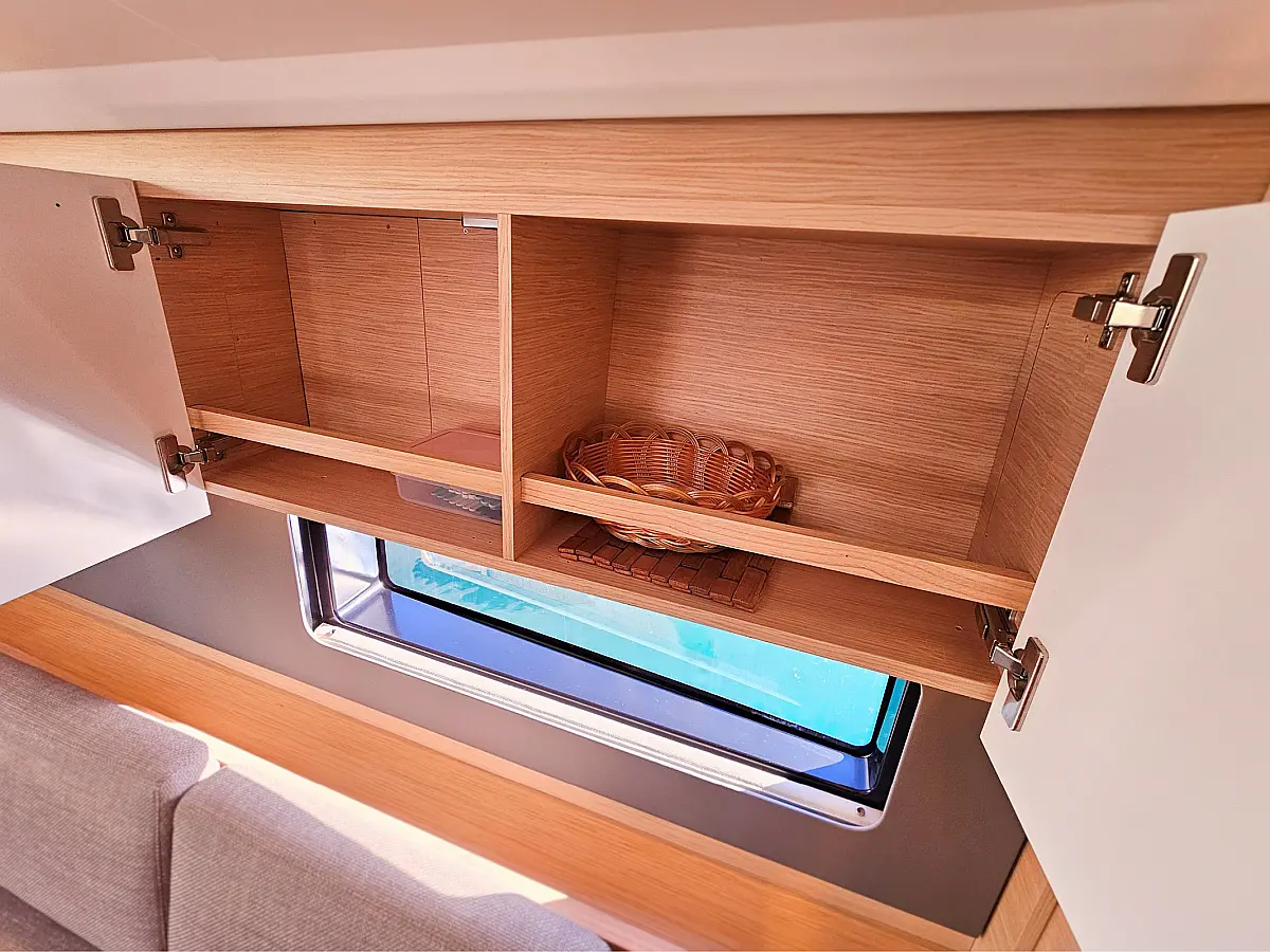 Pomožni čoln, Izvenkrmni motor, Blazine v kokpitu, teak kokpit, Hladilnik, Sprayhood, Bimini, Inverter, Wi-Fi in internet, sončni kolektorji