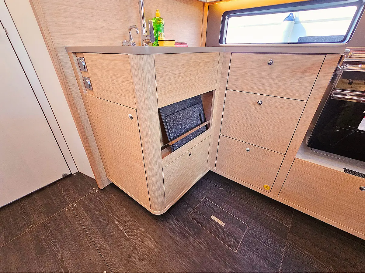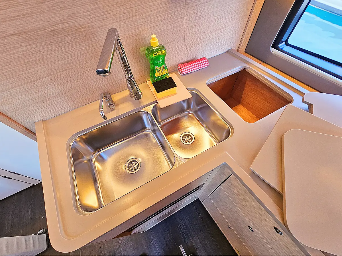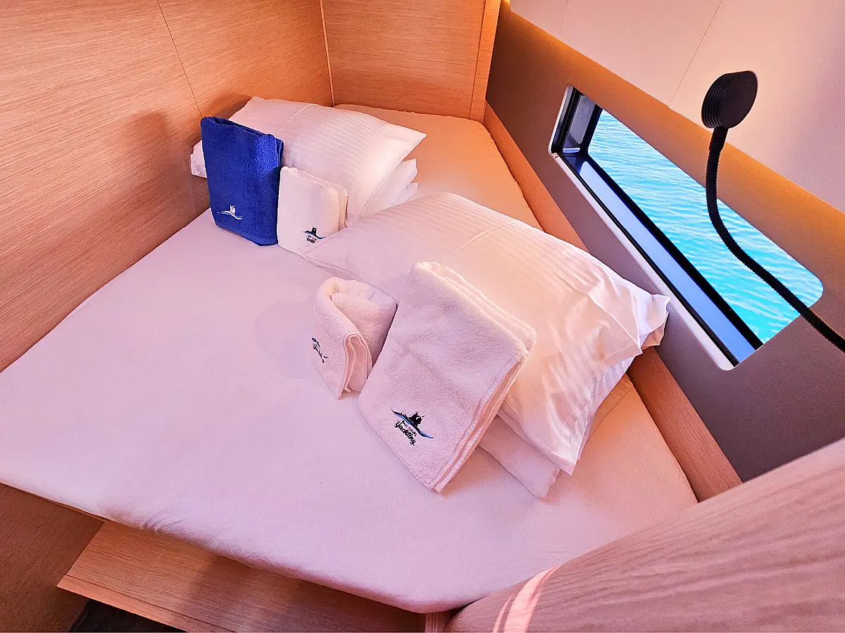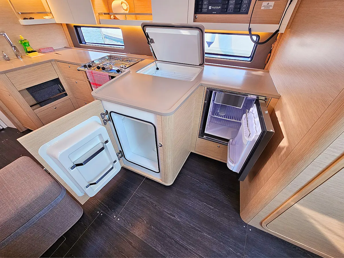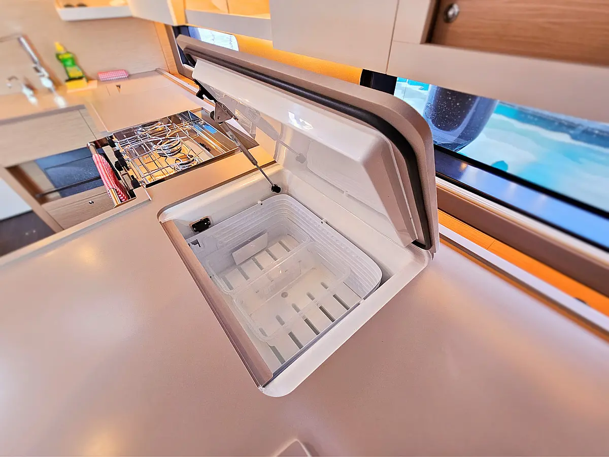Pomožni čoln, Izvenkrmni motor, Blazine v kokpitu, teak kokpit, Hladilnik, Sprayhood, Bimini, Inverter, Wi-Fi in internet, sončni kolektorji