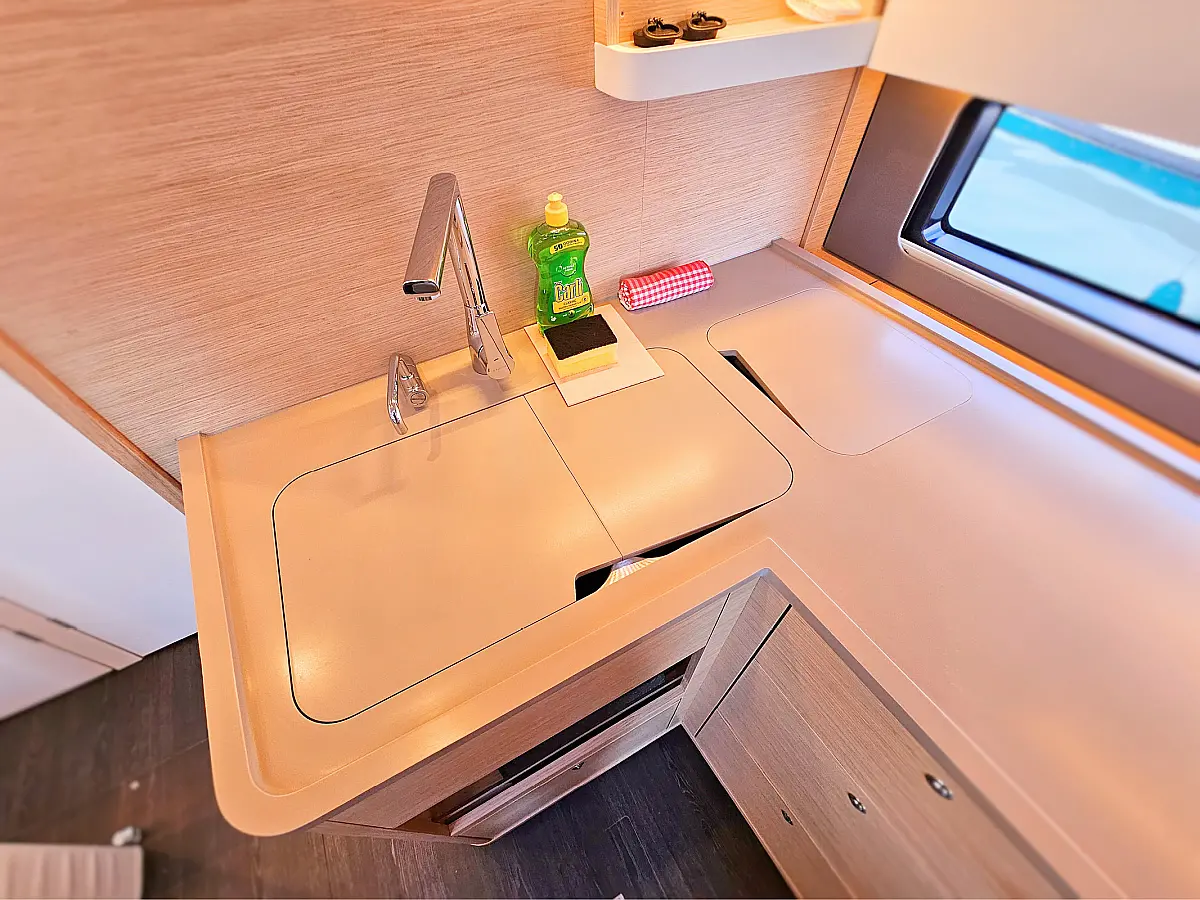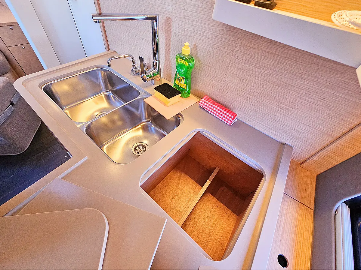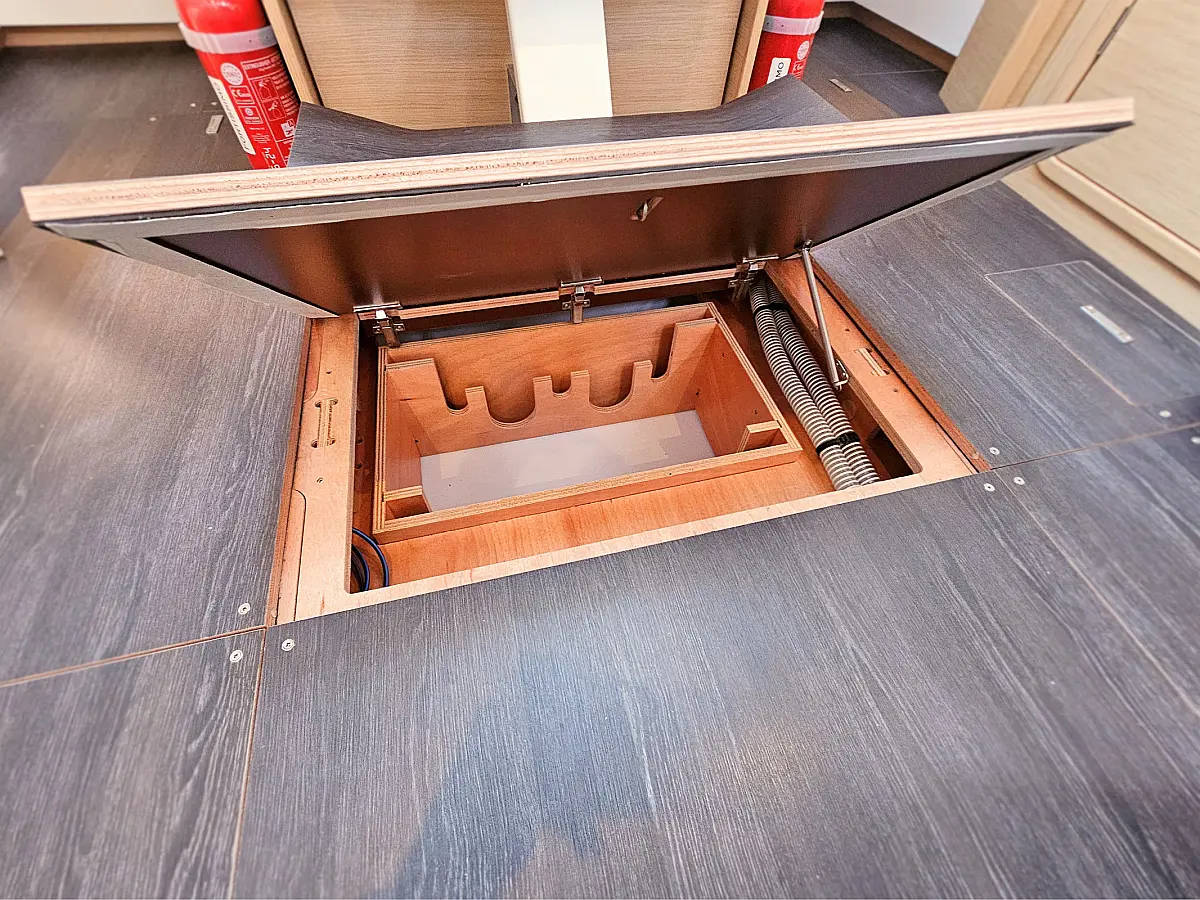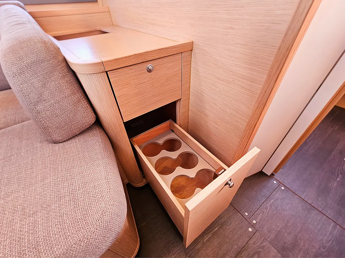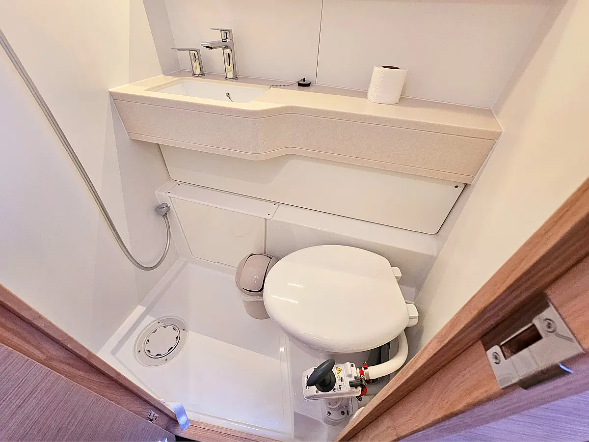 Pomožni čoln, Izvenkrmni motor, Blazine v kokpitu, teak kokpit, Hladilnik, Sprayhood, Bimini, Inverter, Wi-Fi in internet, sončni kolektorji