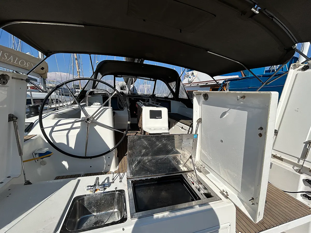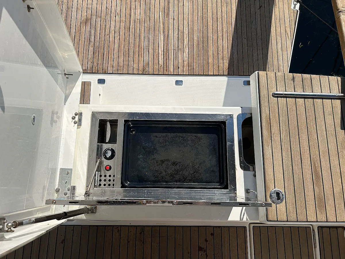 Hladilnik, sončni kolektorji, Pomožni čoln, Izvenkrmni motor, Sprayhood