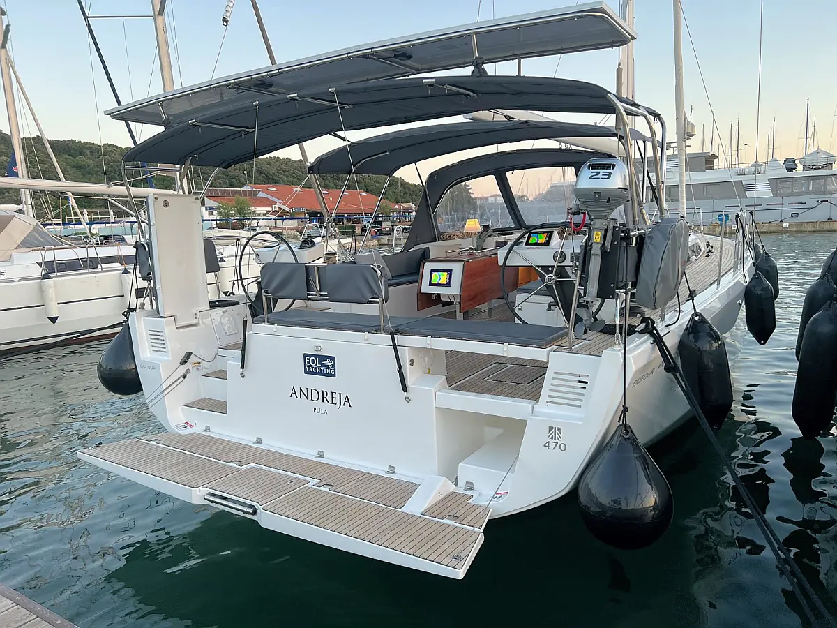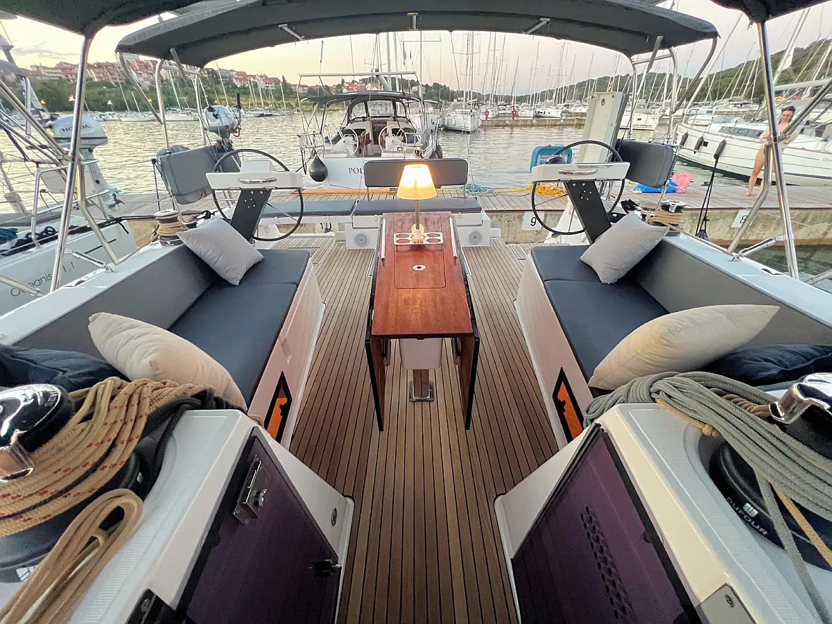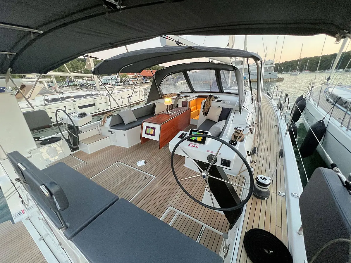 Zvočniki v kokpitu, Črni tank, Bimini, Blazine v kokpitu, Hladilnik, Žar v kokpitu, Pomožni čoln, Sprayhood, teak kokpit, Teak paluba, Aparat za kavo, Gretje, sončni kolektorji