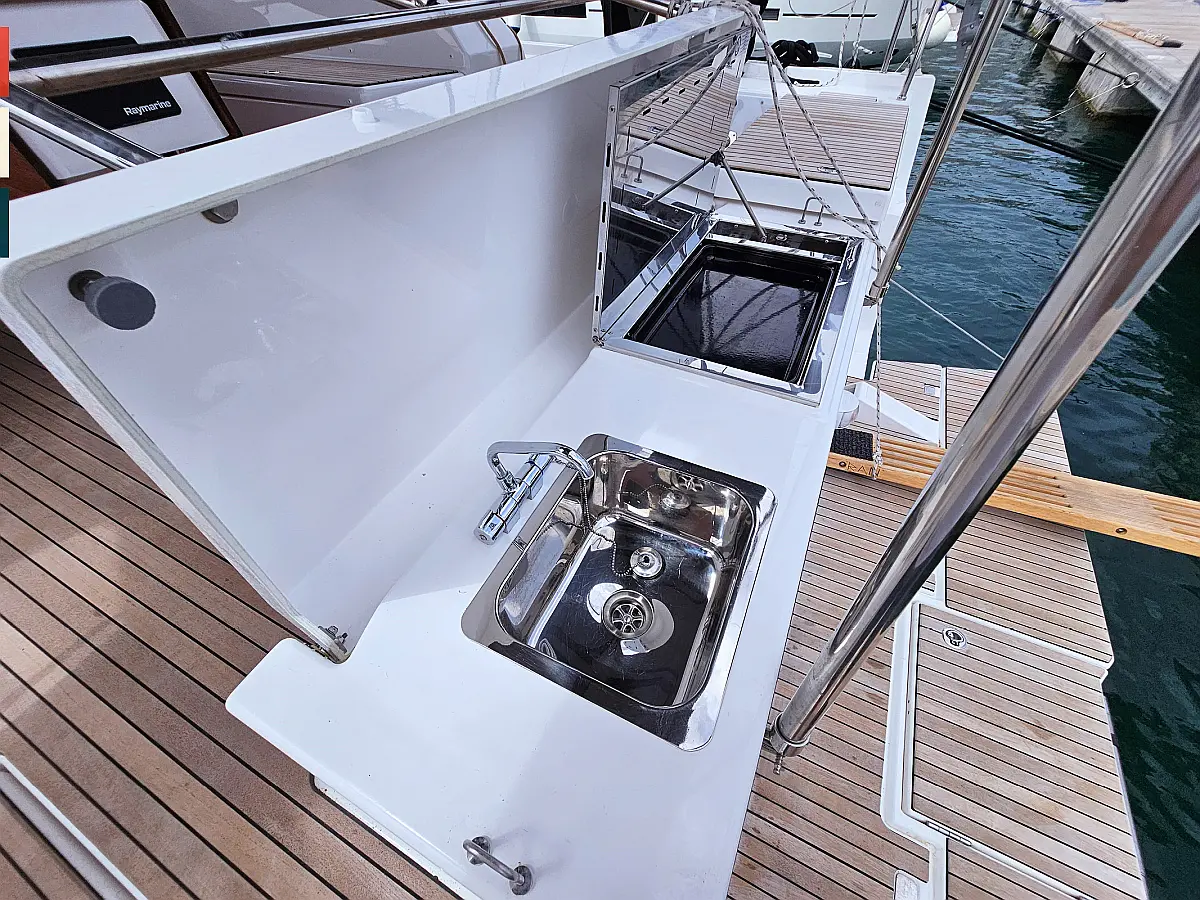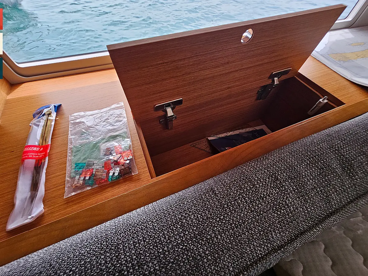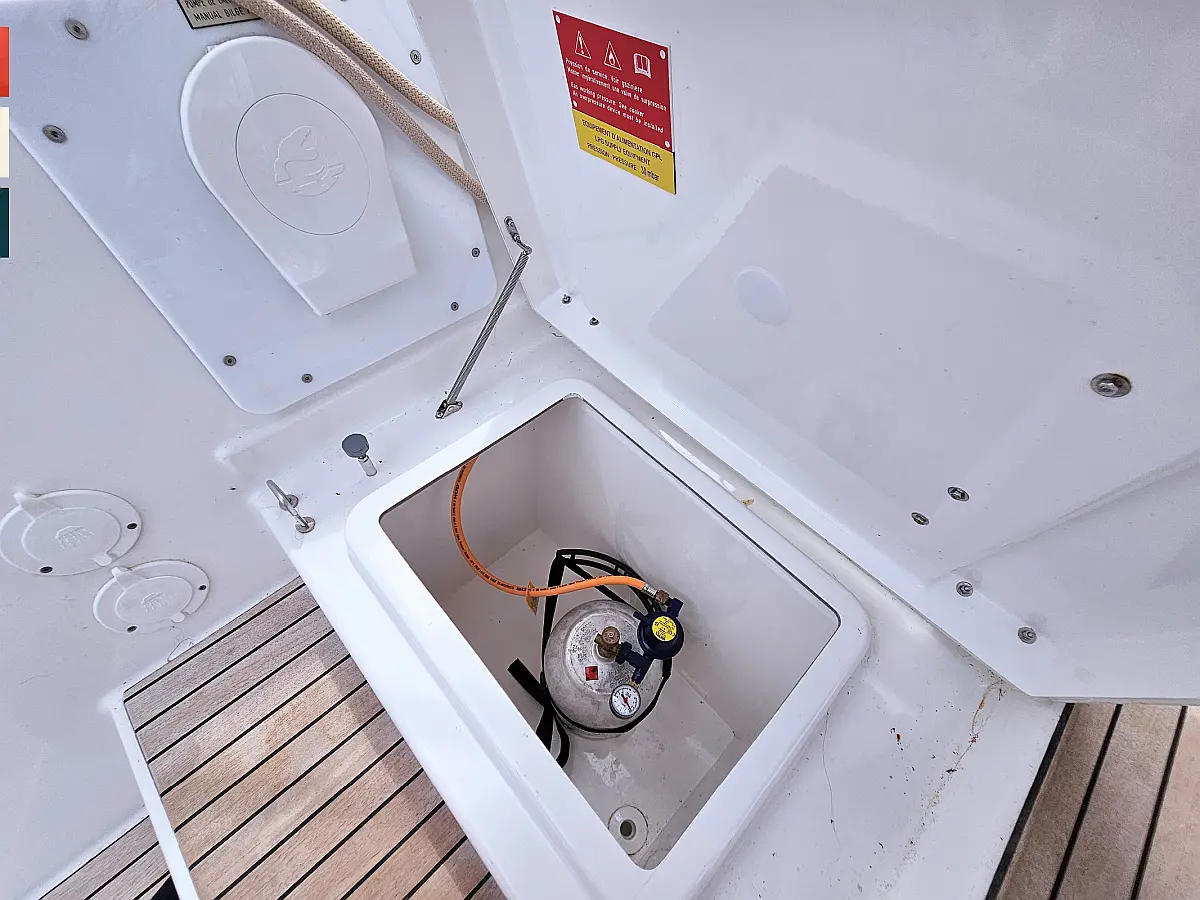 Pomožni čoln, Izvenkrmni motor, Blazine v kokpitu, teak kokpit, Hladilnik, Sprayhood, Bimini, Inverter, Wi-Fi in internet