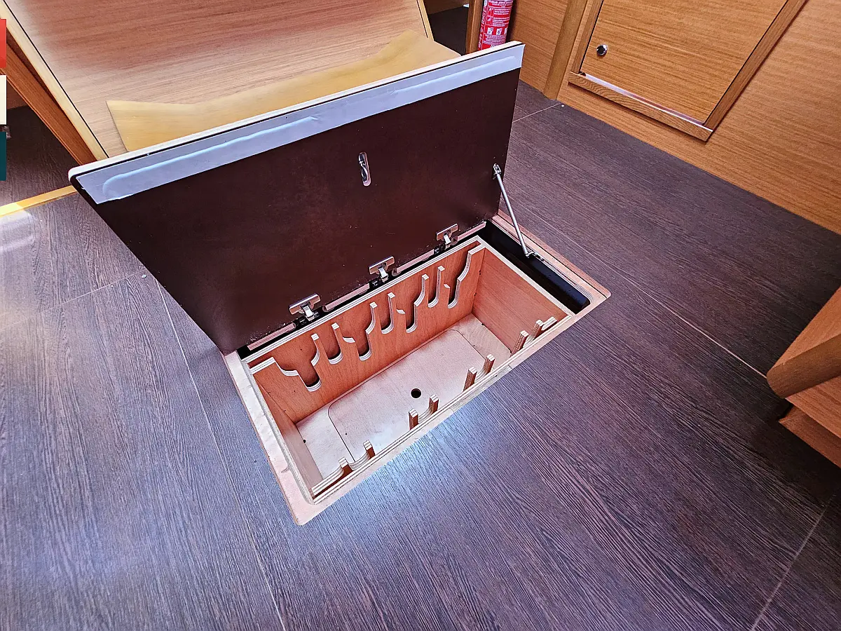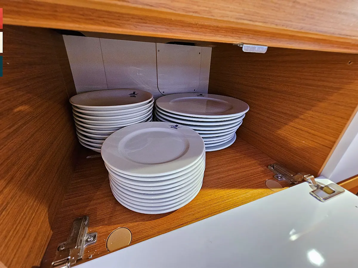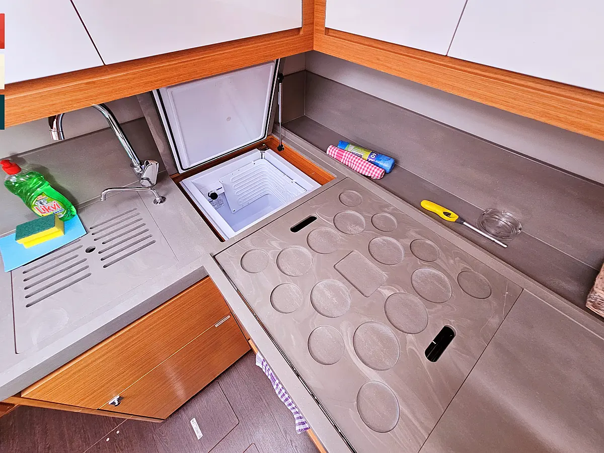 Pomožni čoln, Izvenkrmni motor, Blazine v kokpitu, teak kokpit, Hladilnik, Sprayhood, Bimini, Inverter, Wi-Fi in internet