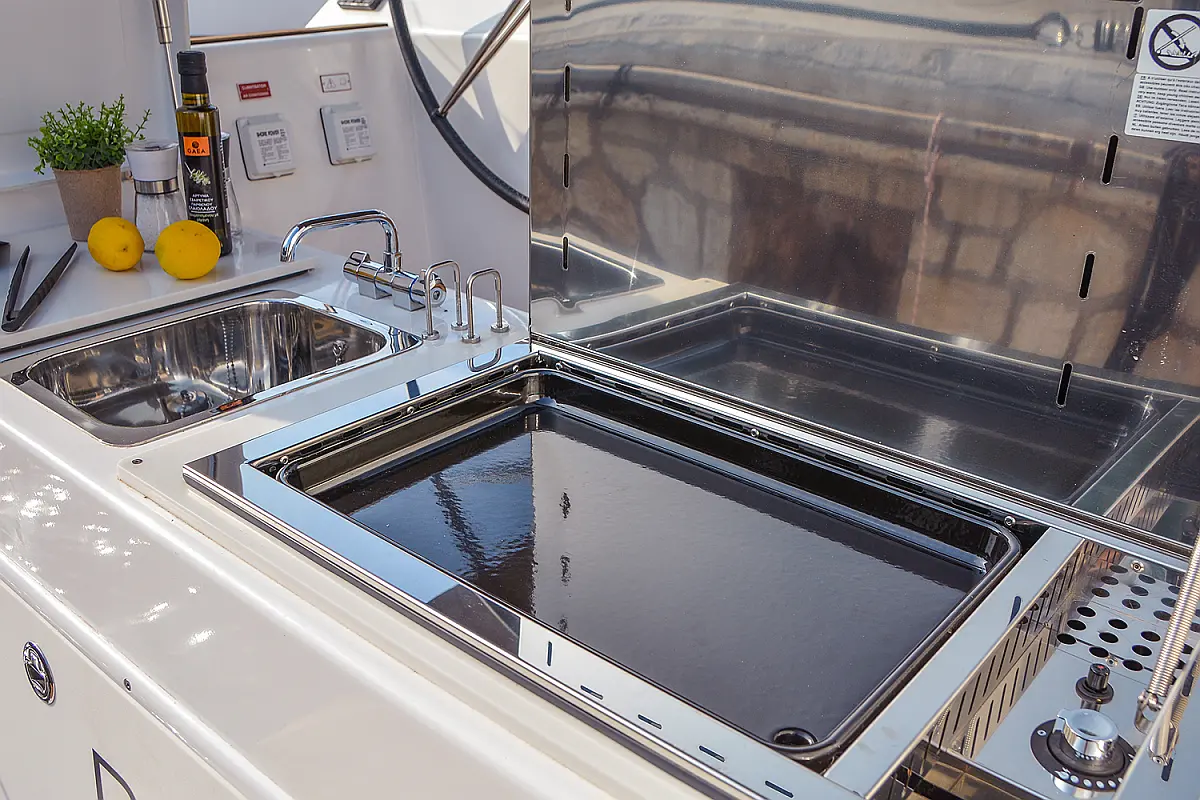 Žar v kokpitu, Aparat za kavo, Generator, Desalinator, Inverter, Bimini, Izvenkrmni motor, Klima, Blazine v kokpitu, Zvočniki v kokpitu, Sprayhood, teak kokpit, Črni tank
