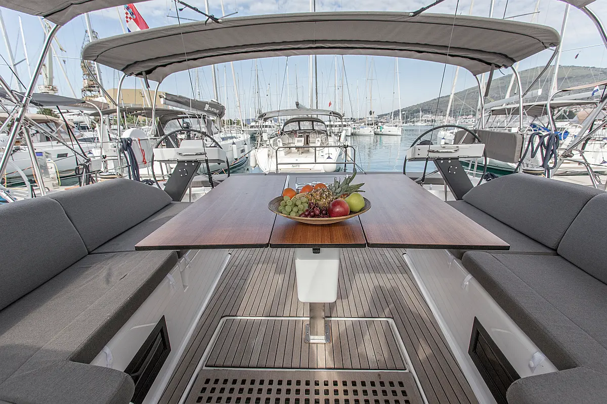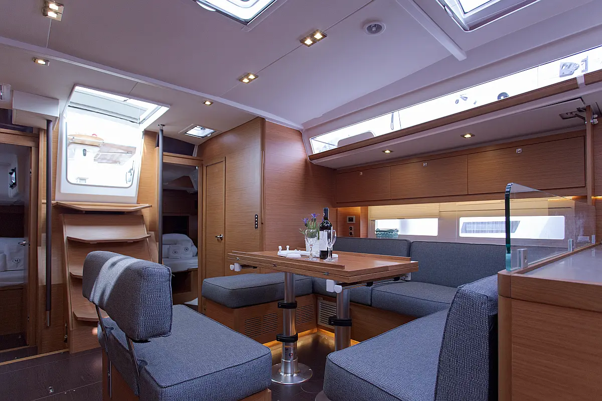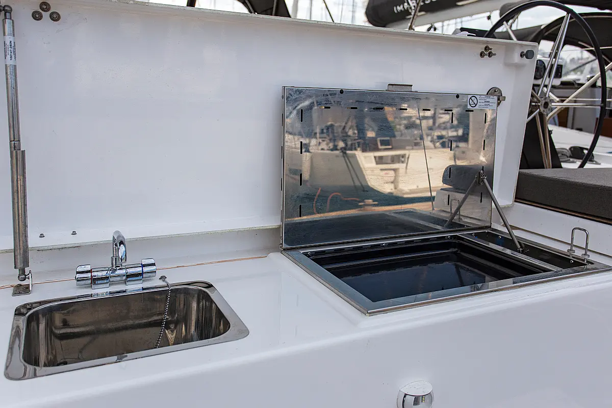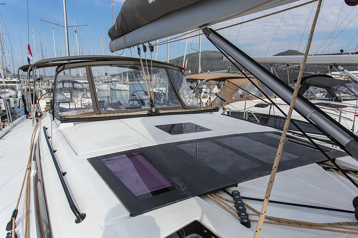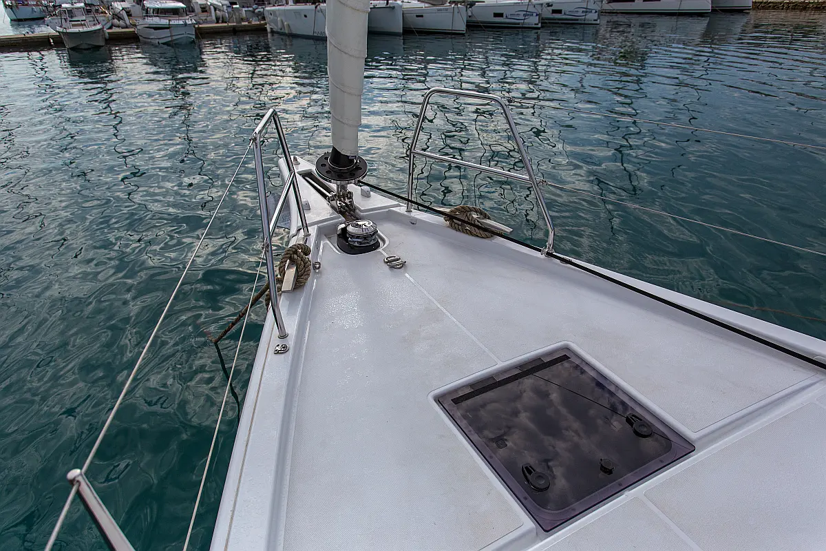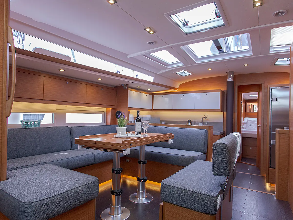 Klima, Blazine v kokpitu, Pomožni čoln, Električni wc, Generator, Gretje, Inverter, Hladilnik, Sprayhood, teak kokpit, Desalinator, Wi-Fi in internet