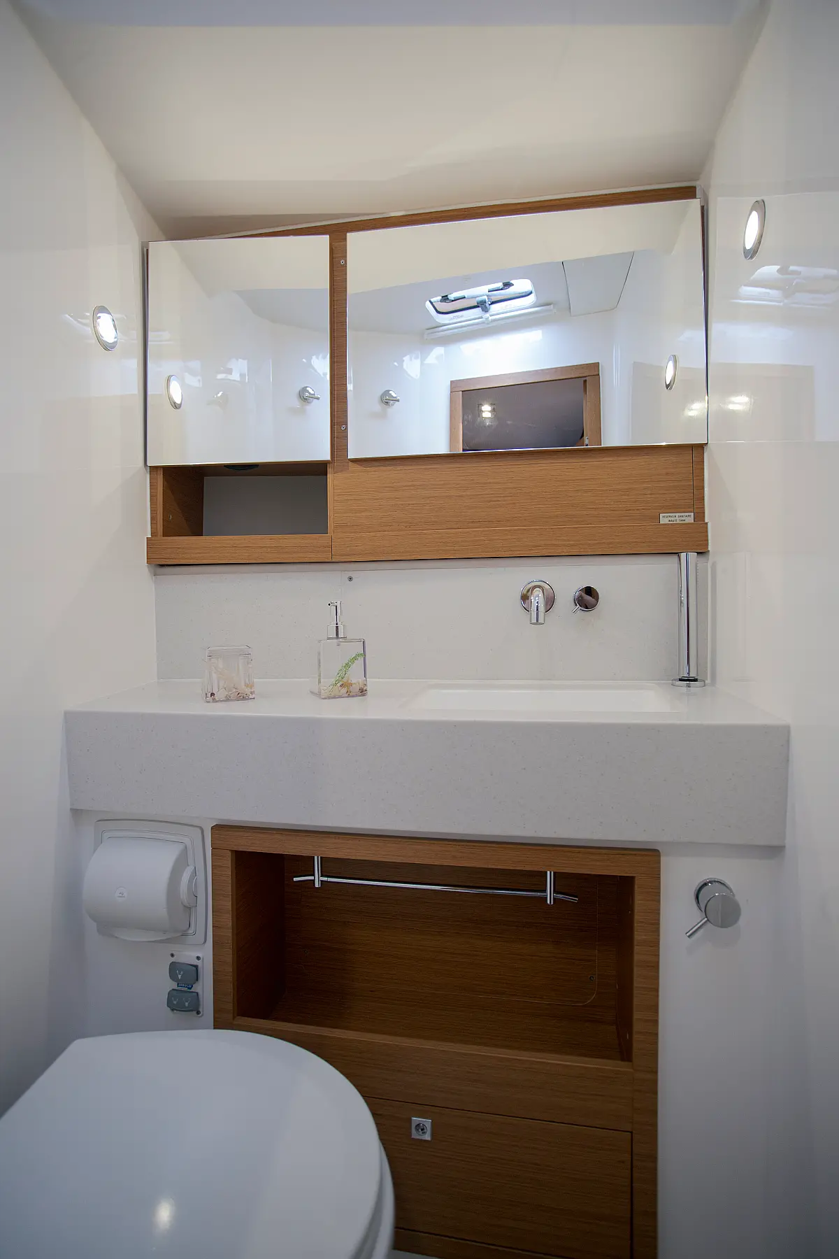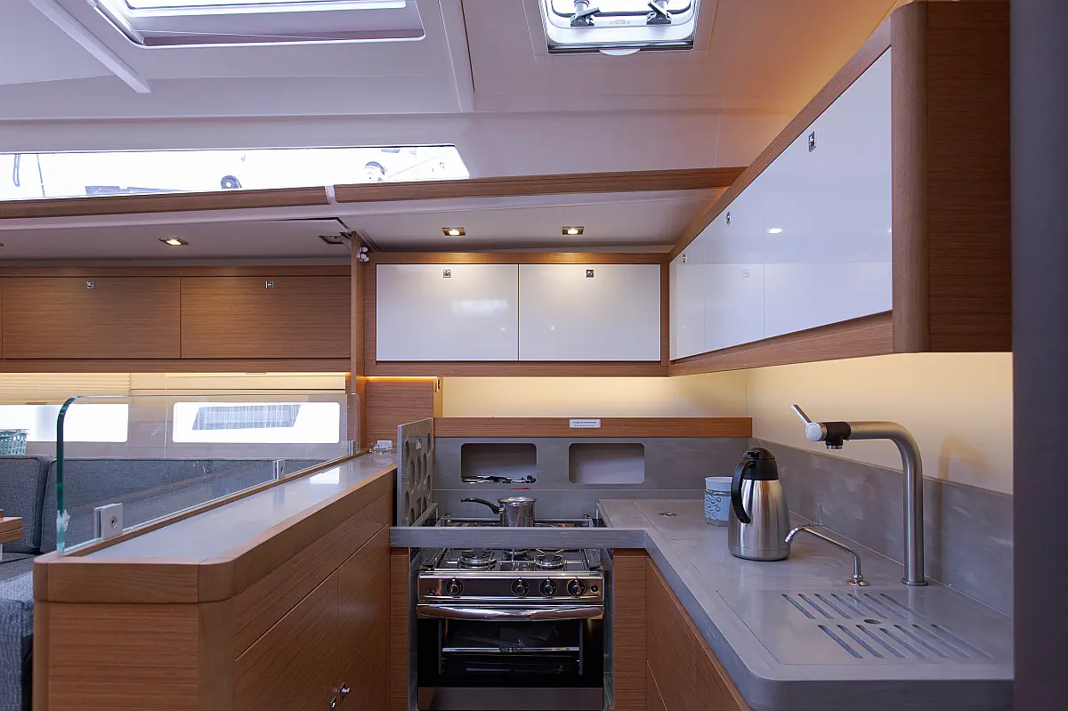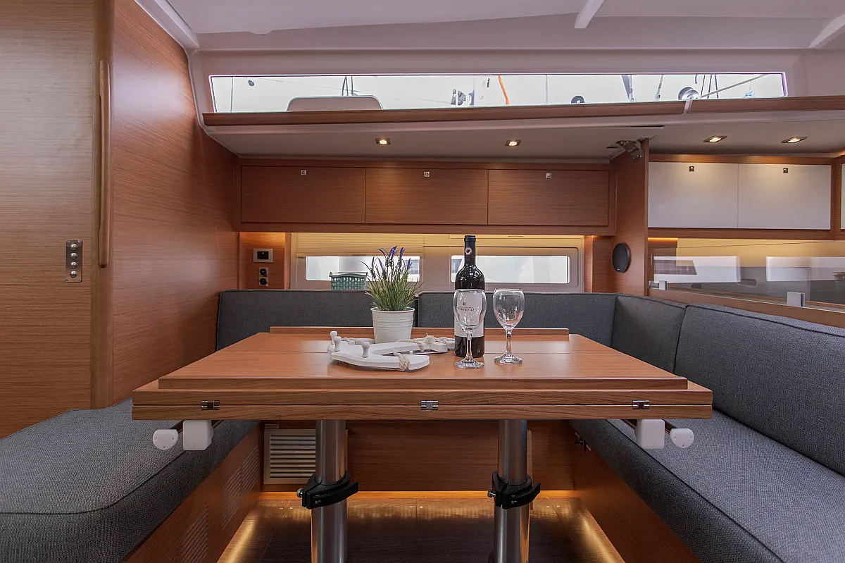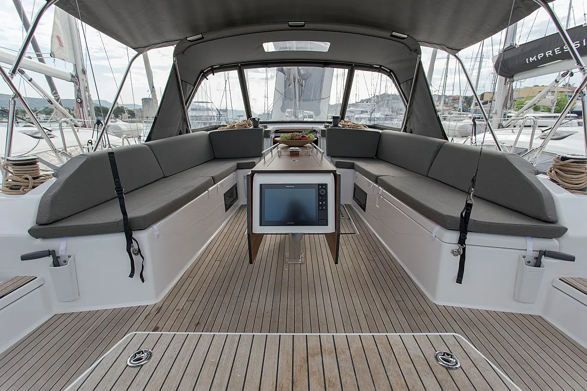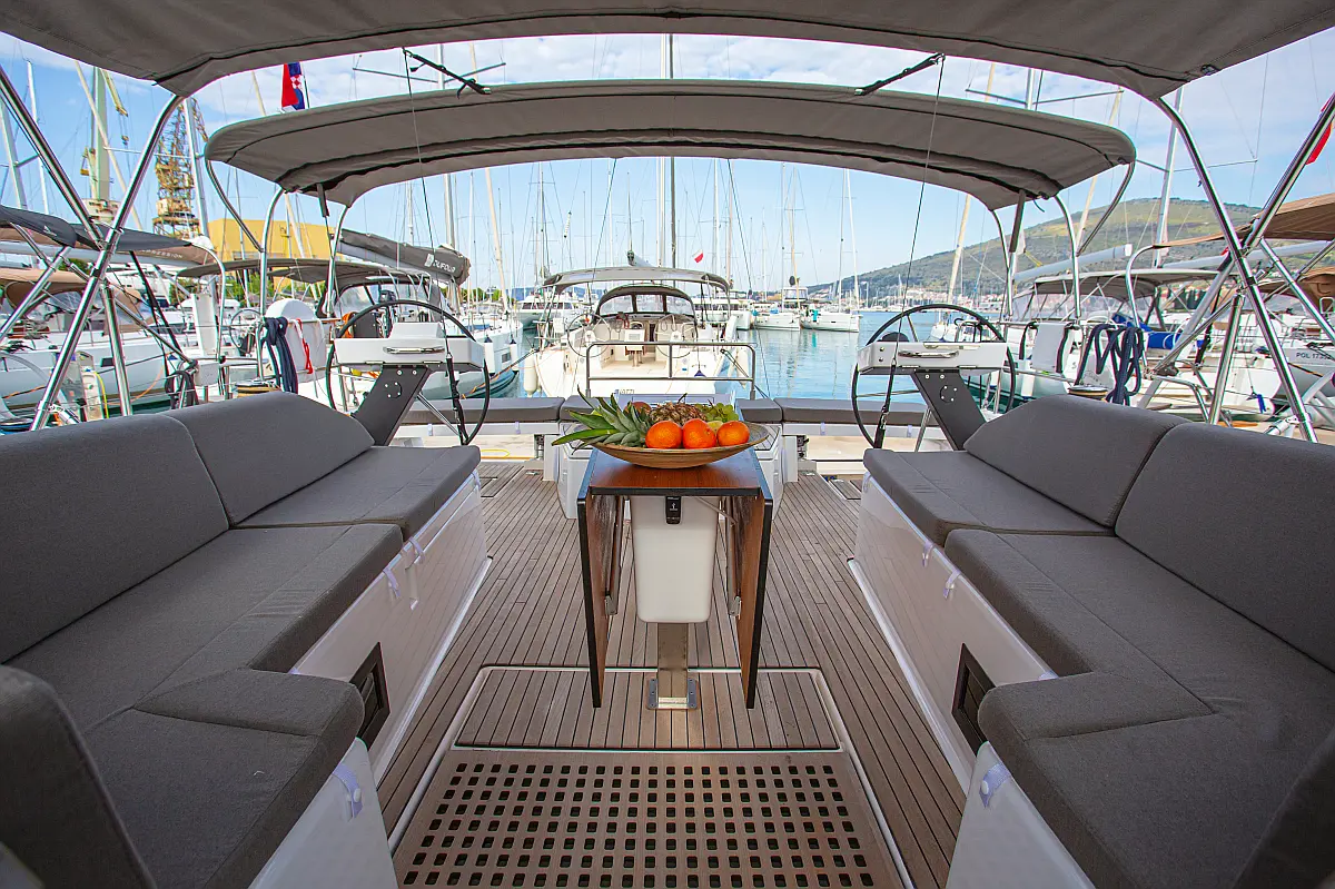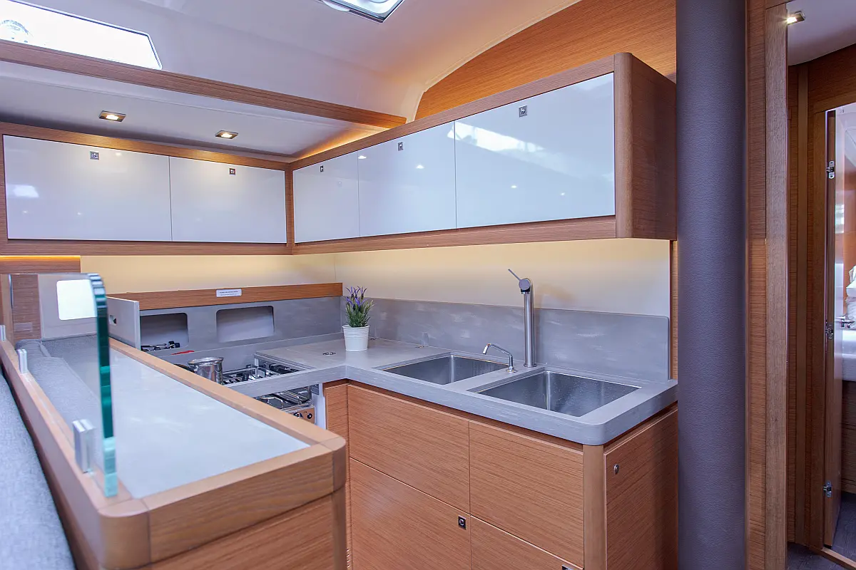 Klima, Blazine v kokpitu, Pomožni čoln, Električni wc, Generator, Gretje, Inverter, Hladilnik, Sprayhood, teak kokpit, Desalinator, Wi-Fi in internet