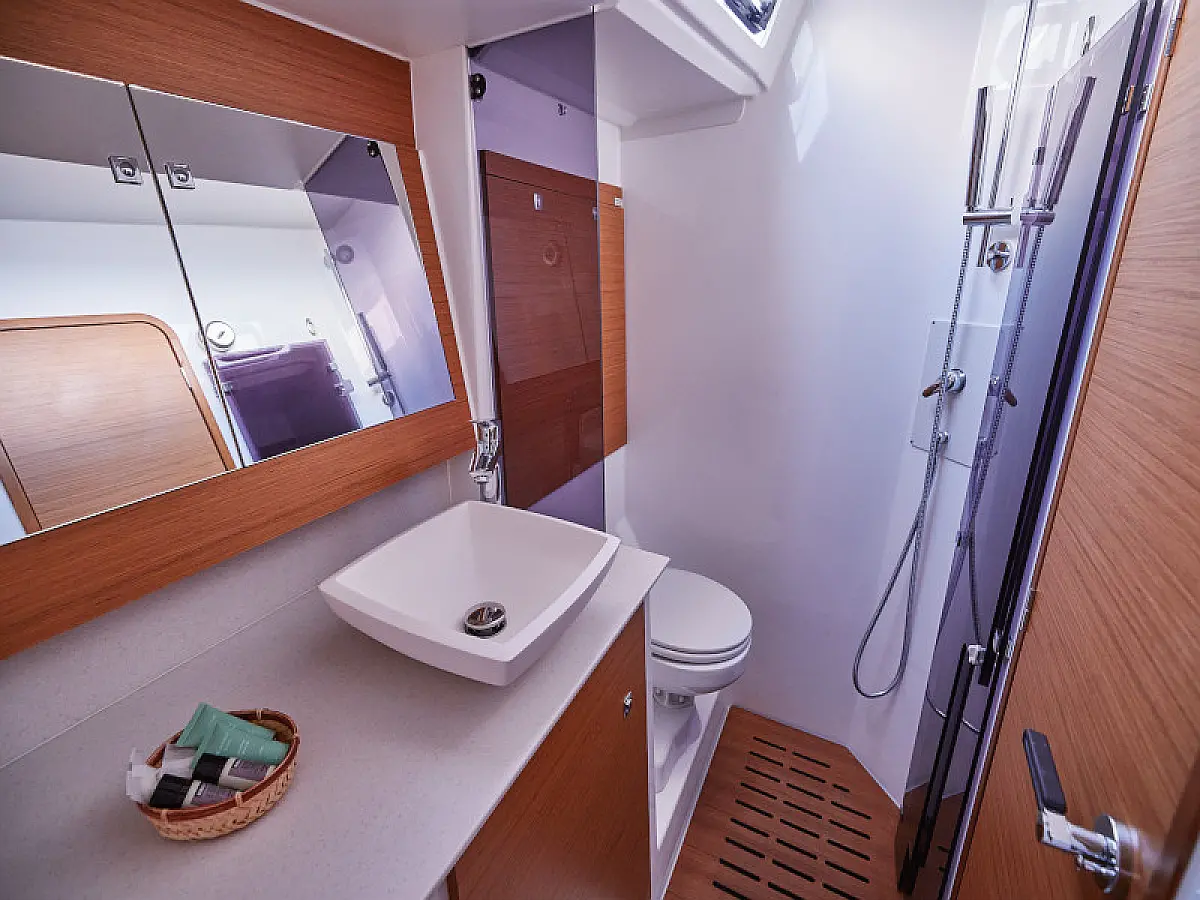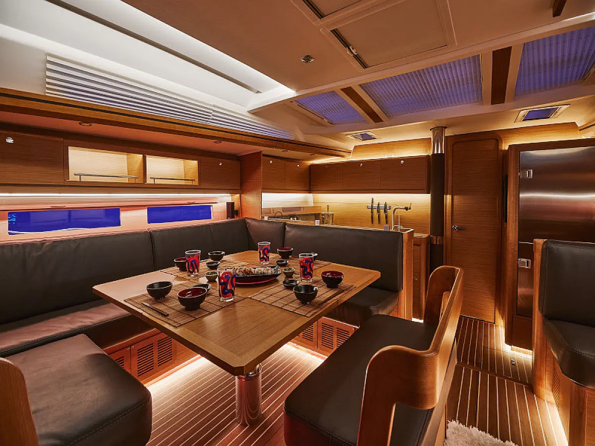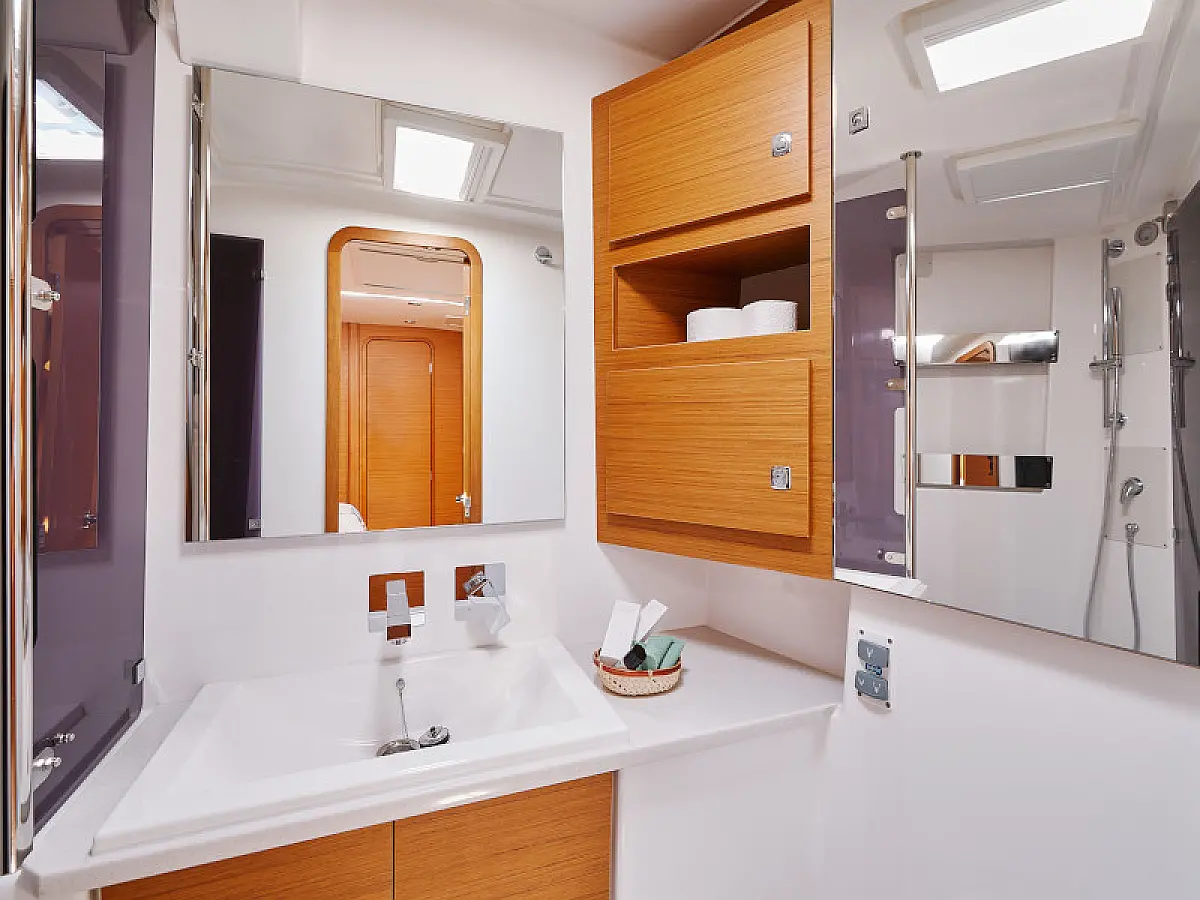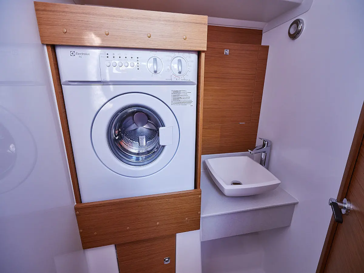 Hladilnik, Ledomat, Aparat za kavo, Wi-Fi in internet, Črni tank, Inverter, Klima, Gretje, Desalinator, Teak paluba, teak kokpit, Električni vitli, Zvočniki v kokpitu, Sprayhood, Bimini, Hidravlična pasarela, Generator, Električni wc