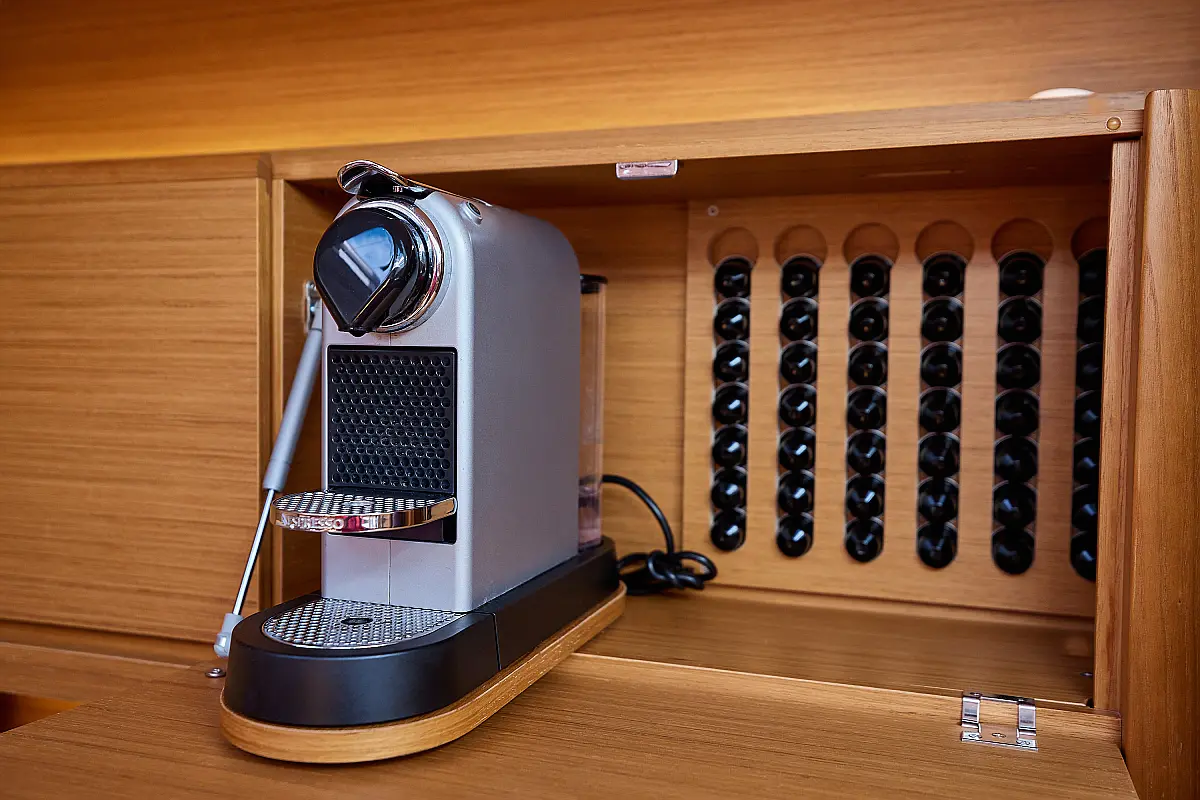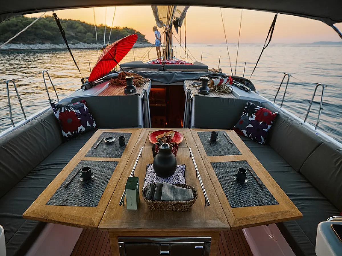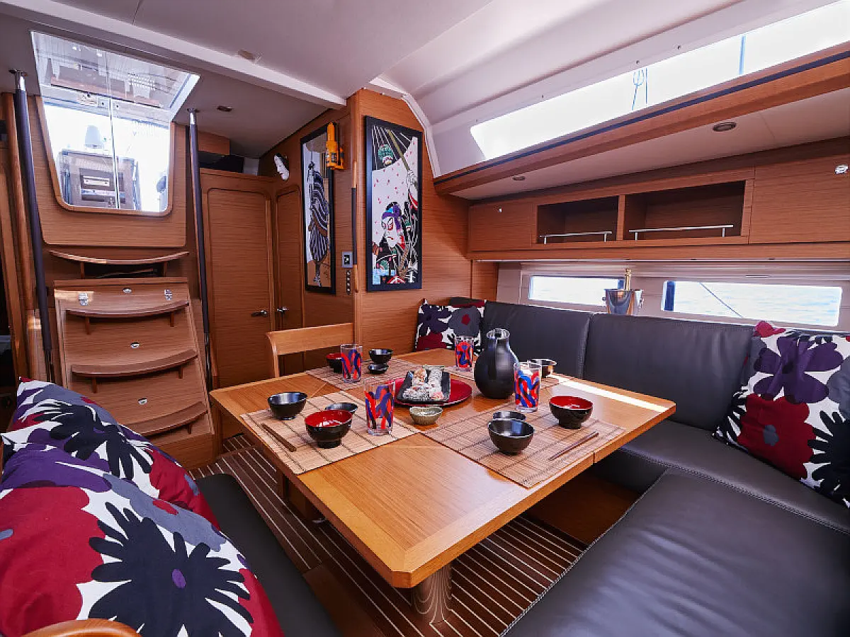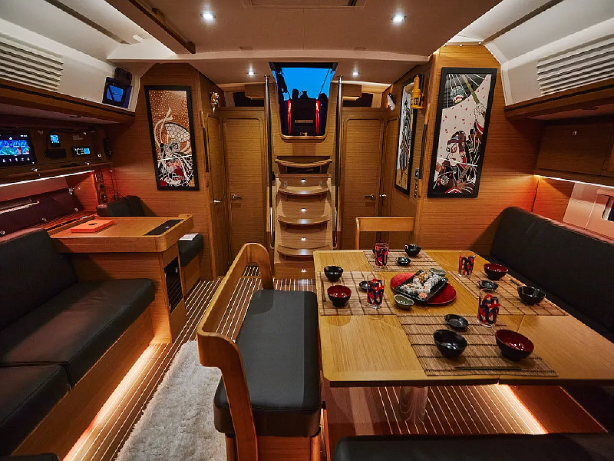 Hladilnik, Ledomat, Aparat za kavo, Wi-Fi in internet, Črni tank, Inverter, Klima, Gretje, Desalinator, Teak paluba, teak kokpit, Električni vitli, Zvočniki v kokpitu, Sprayhood, Bimini, Hidravlična pasarela, Generator, Električni wc