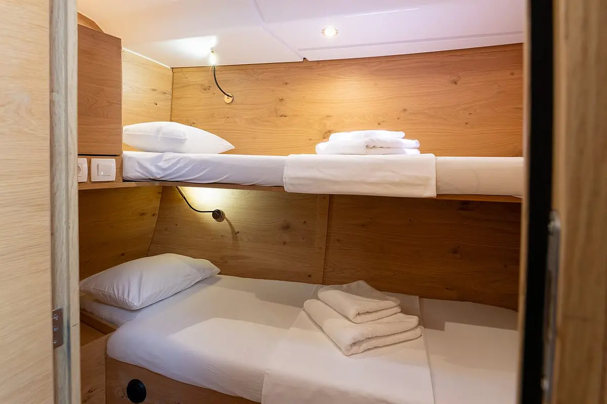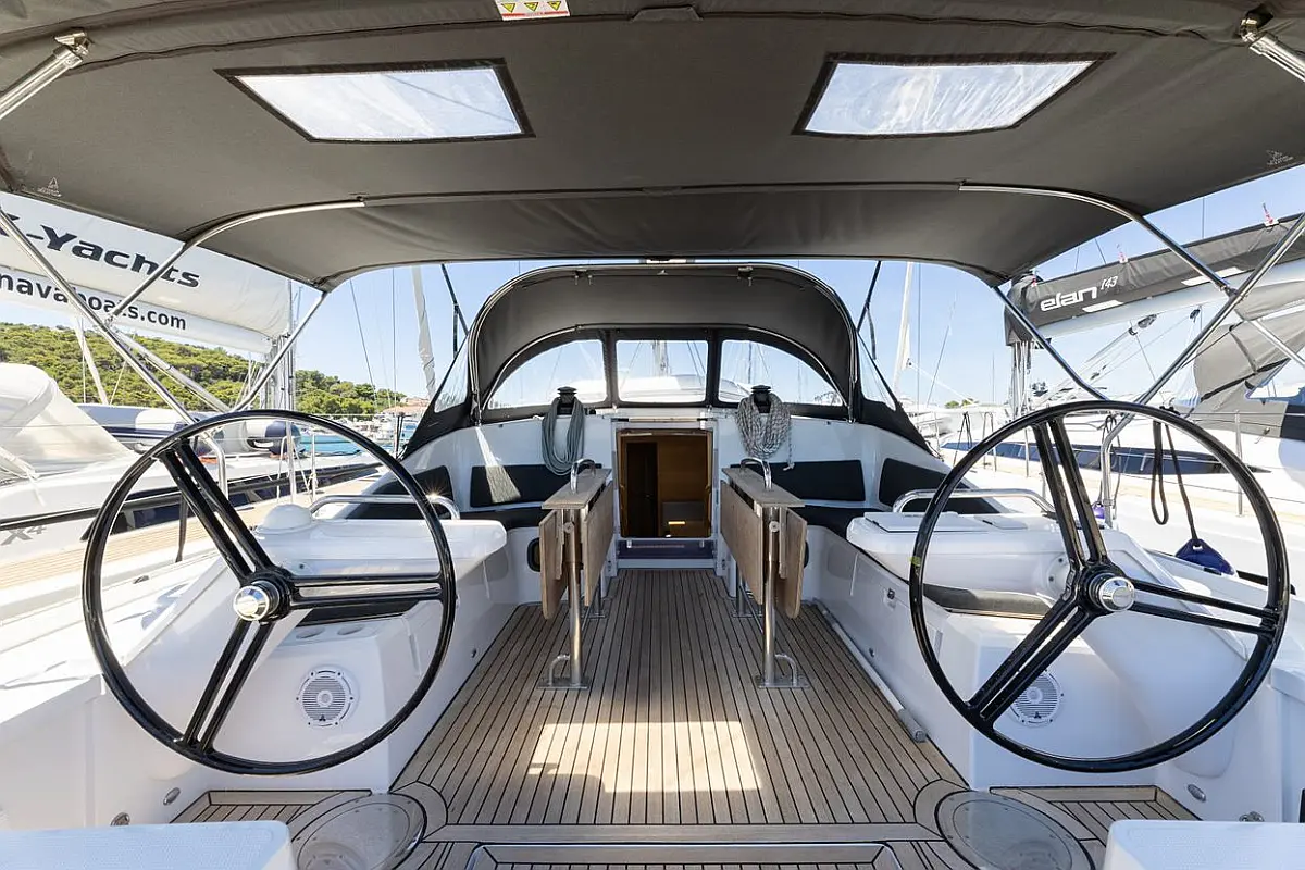 Bimini, Wi-Fi in internet, Klima, Hladilnik, Blazine v kokpitu, Kopalna ploščad, teak kokpit, Sprayhood, Pomožni čoln