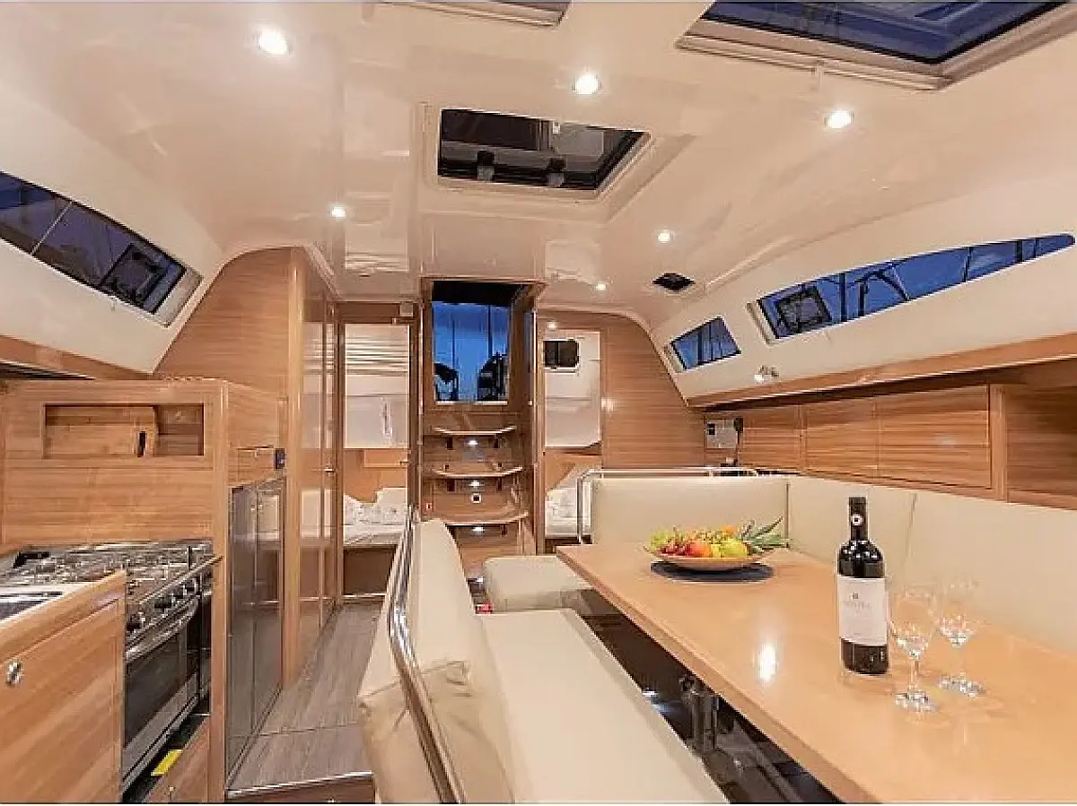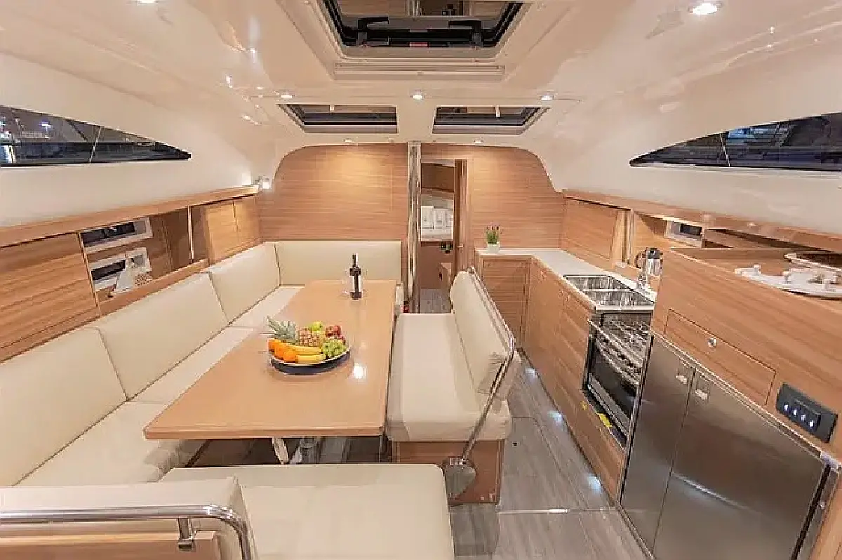 Kopalna ploščad, Bimini, Blazine v kokpitu, Zvočniki v kokpitu, Hladilnik, Gretje, Črni tank, Sprayhood, teak kokpit, Wi-Fi in internet