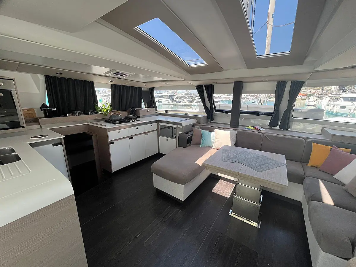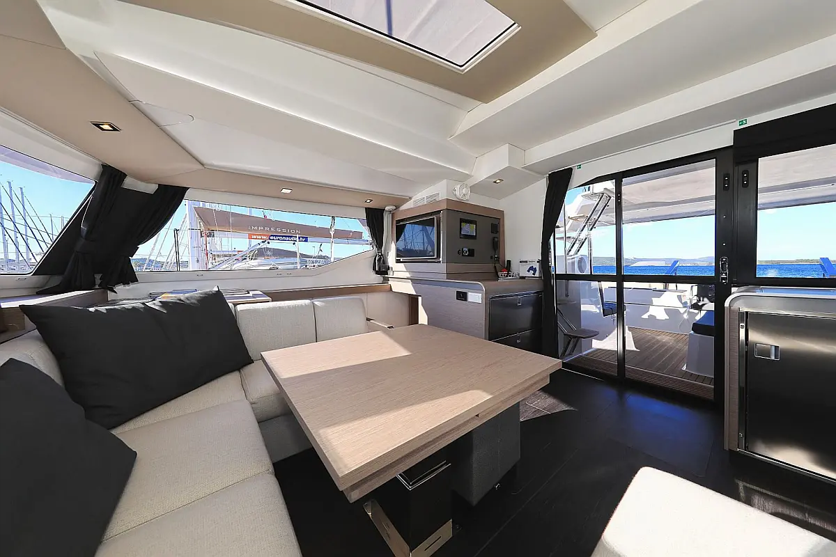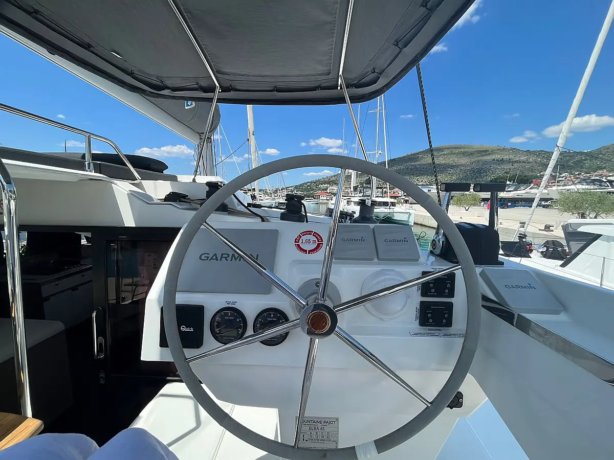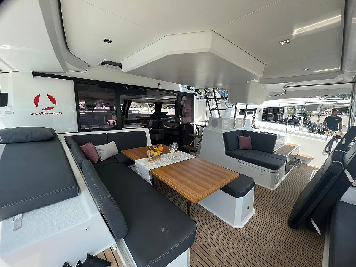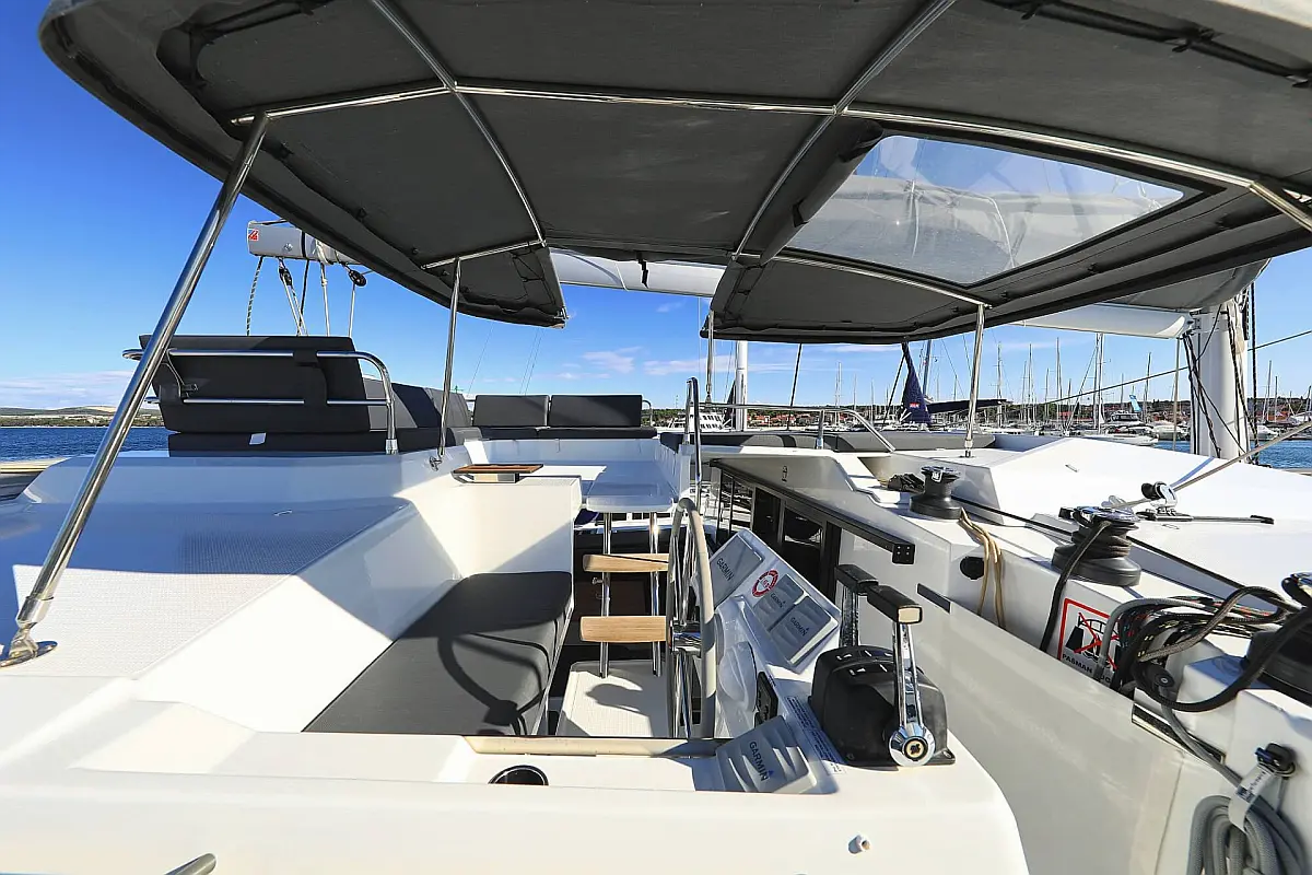 Blazine v kokpitu, Generator, Pralni stroj/sušilnik, Pomožni čoln, Električni vitli, Inverter, Bimini, Zvočniki v kokpitu, teak kokpit, Žar v kokpitu