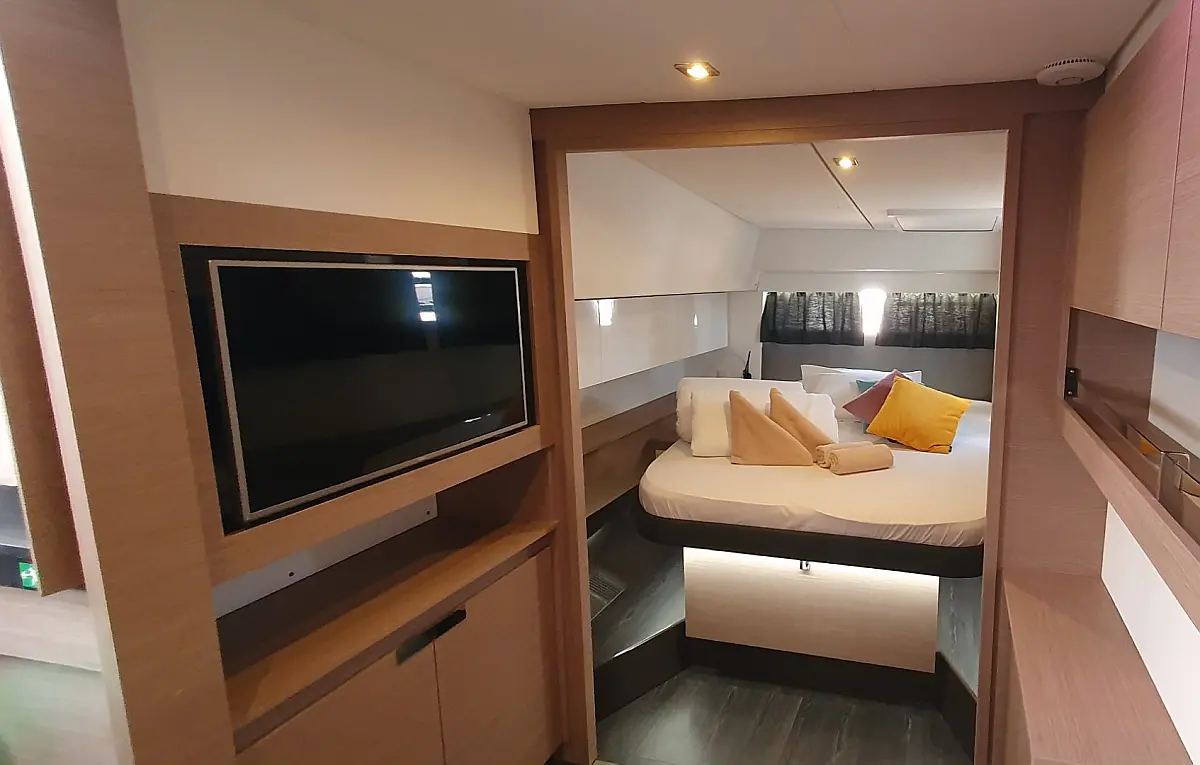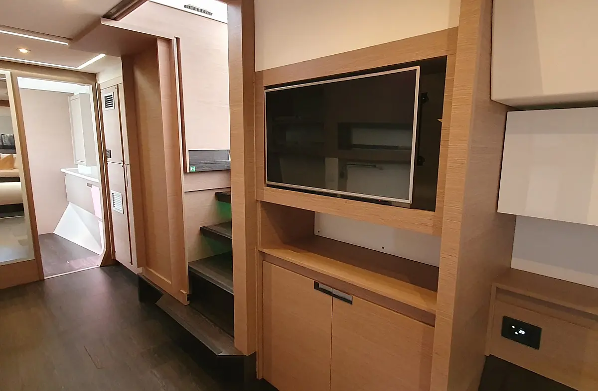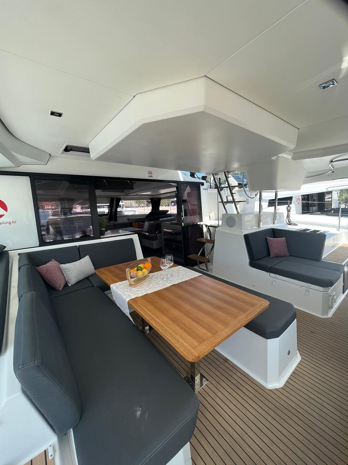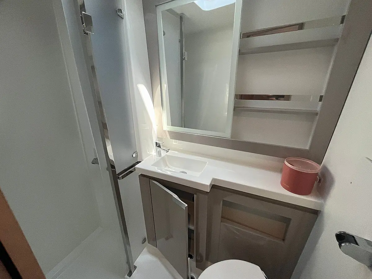 Blazine v kokpitu, Generator, Pralni stroj/sušilnik, Pomožni čoln, Električni vitli, Inverter, Bimini, Zvočniki v kokpitu, teak kokpit, Žar v kokpitu