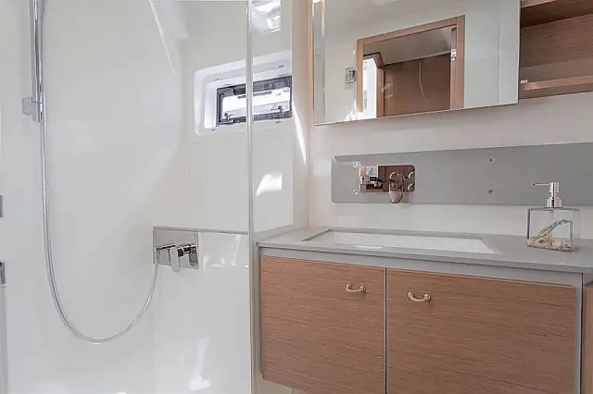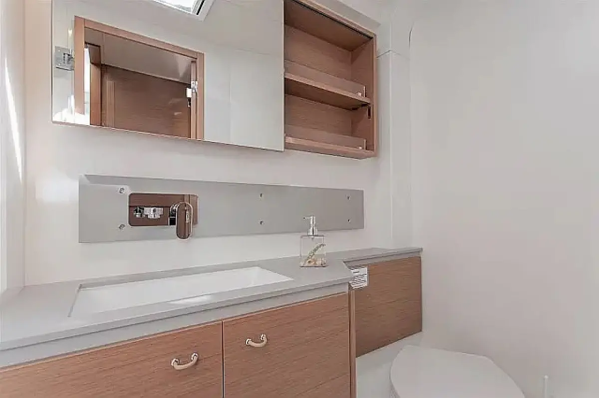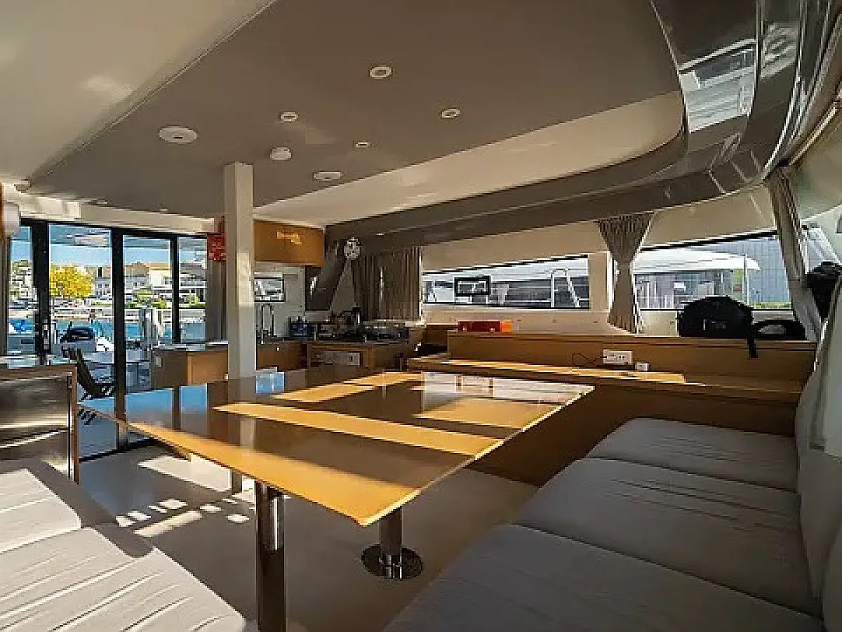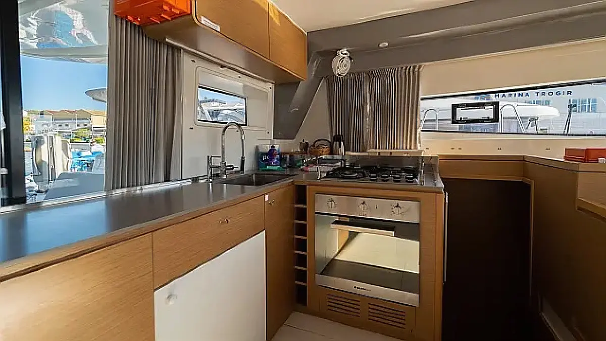 Klima, Blazine v kokpitu, Zvočniki v kokpitu, Pomožni čoln, Aparat za kavo, Hladilnik, Električni wc, Generator, Gretje, Črni tank, Inverter, Izvenkrmni motor, Desalinator, Wi-Fi in internet