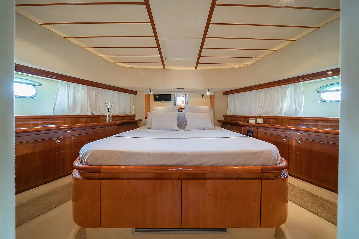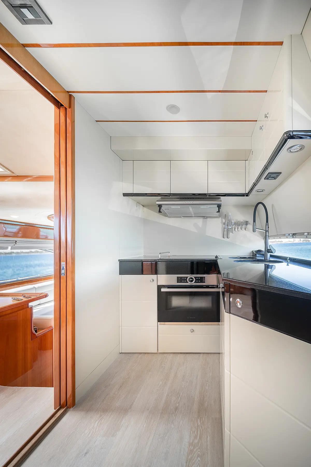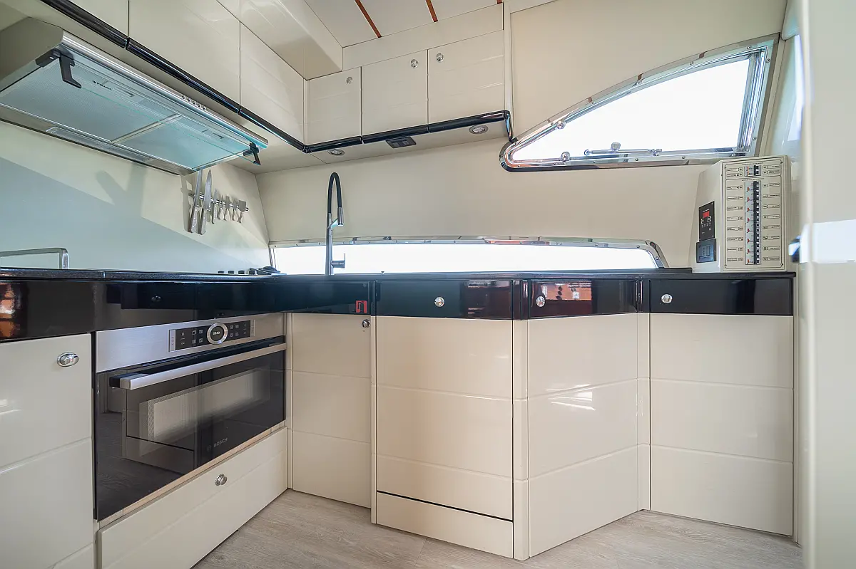 Ledomat, Desalinator, Klima, Gretje, sončni kolektorji, Teak paluba, Električni vitli, Inverter, Bimini, Generator, Hladilnik, Aparat za kavo